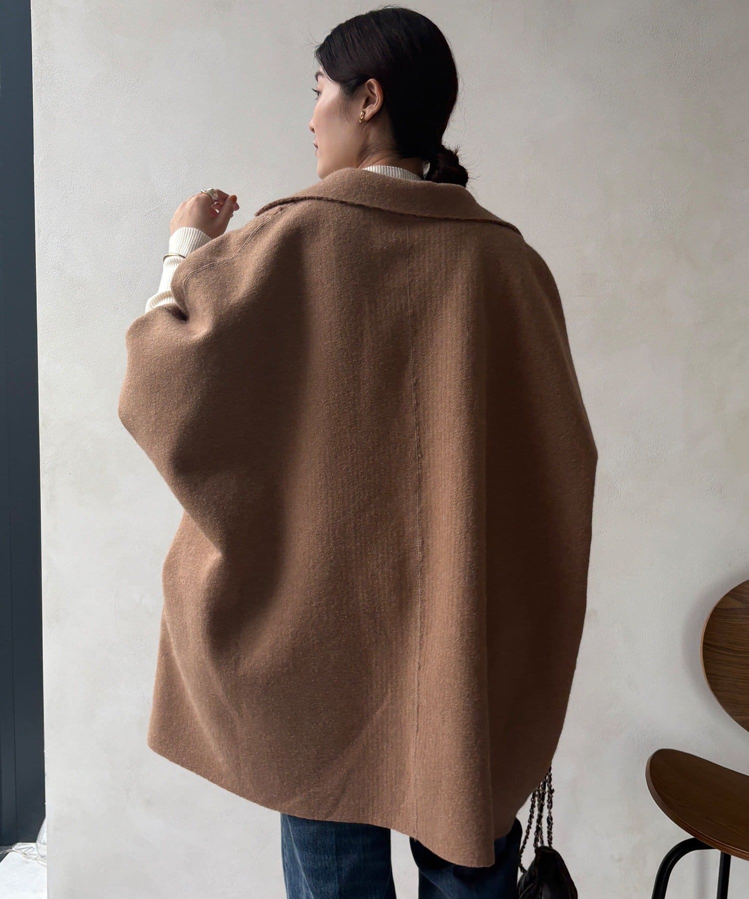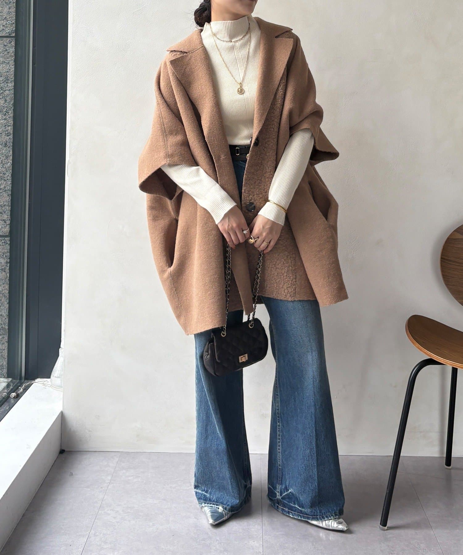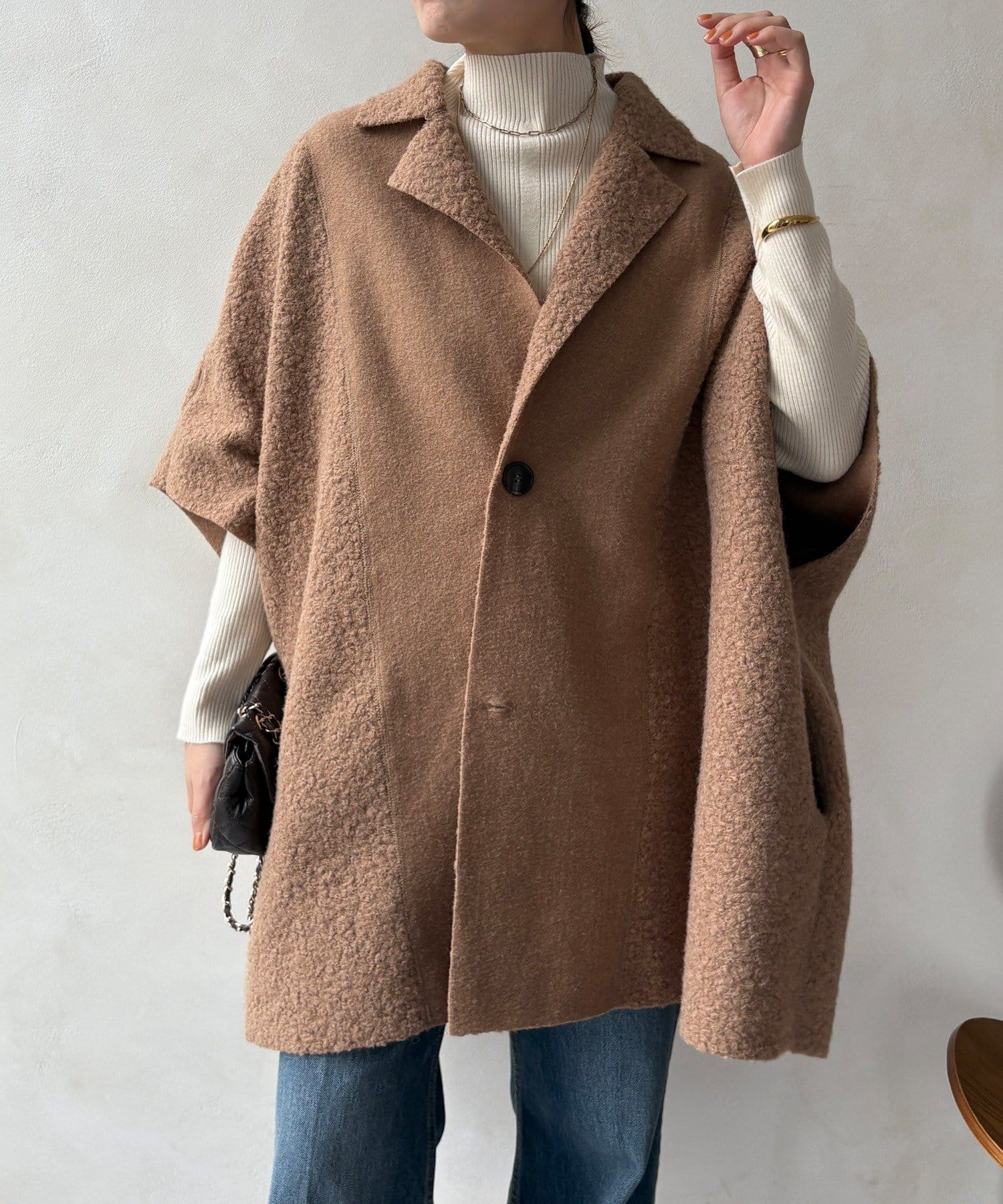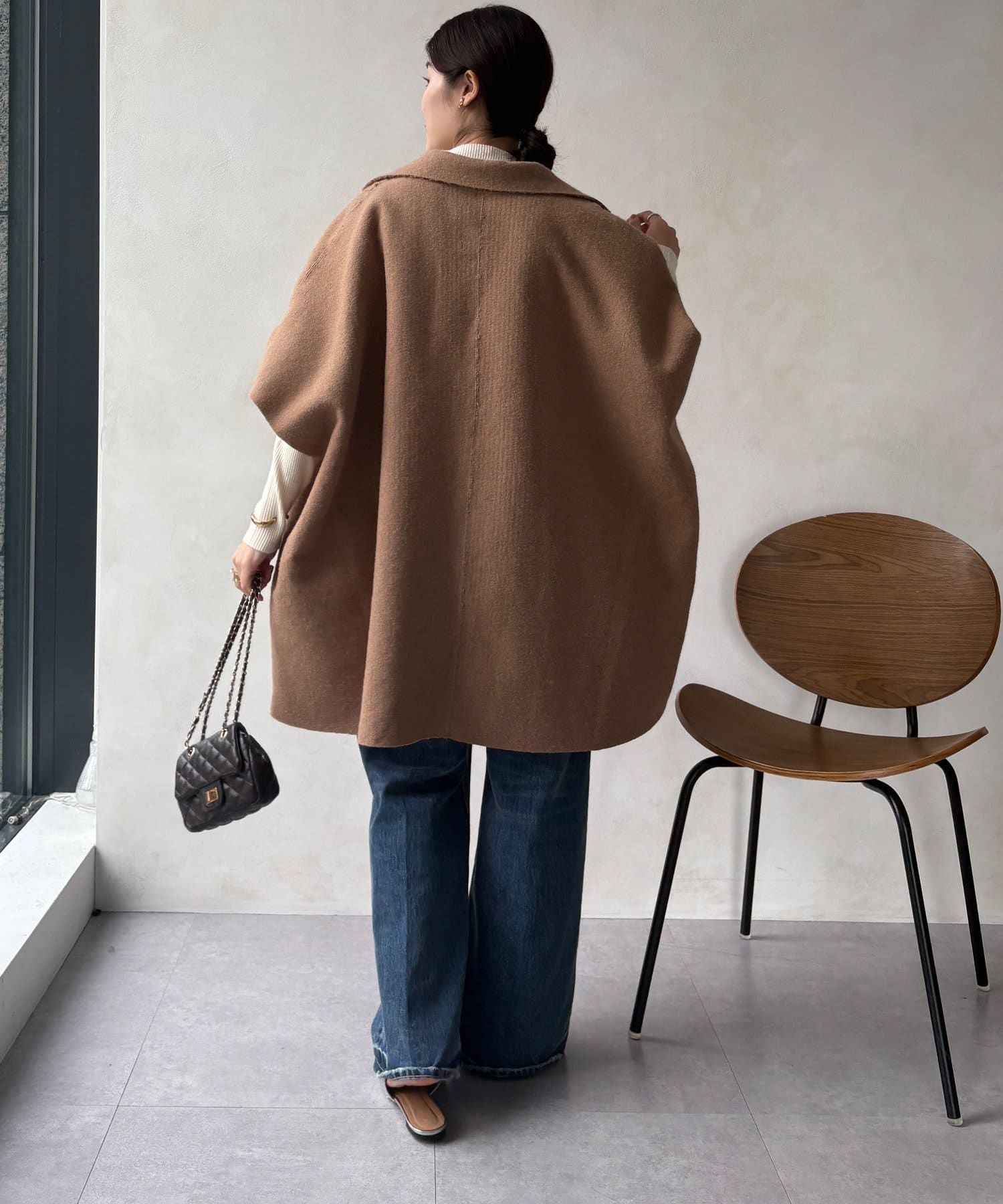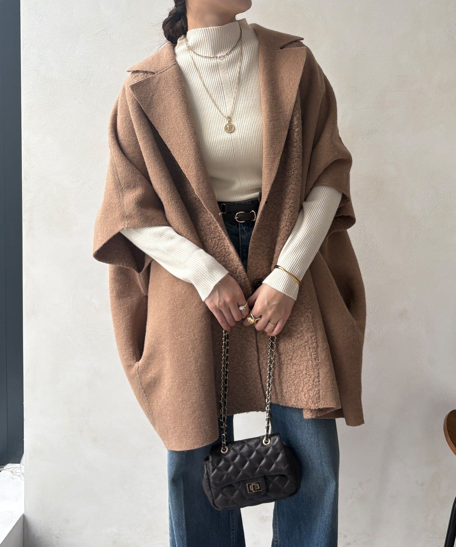 ゆったりとしたポンチョシルエットが体型を選ばず、スタイリングの主役になる一着です。