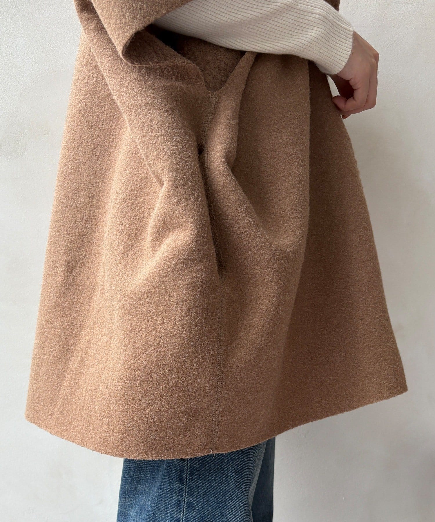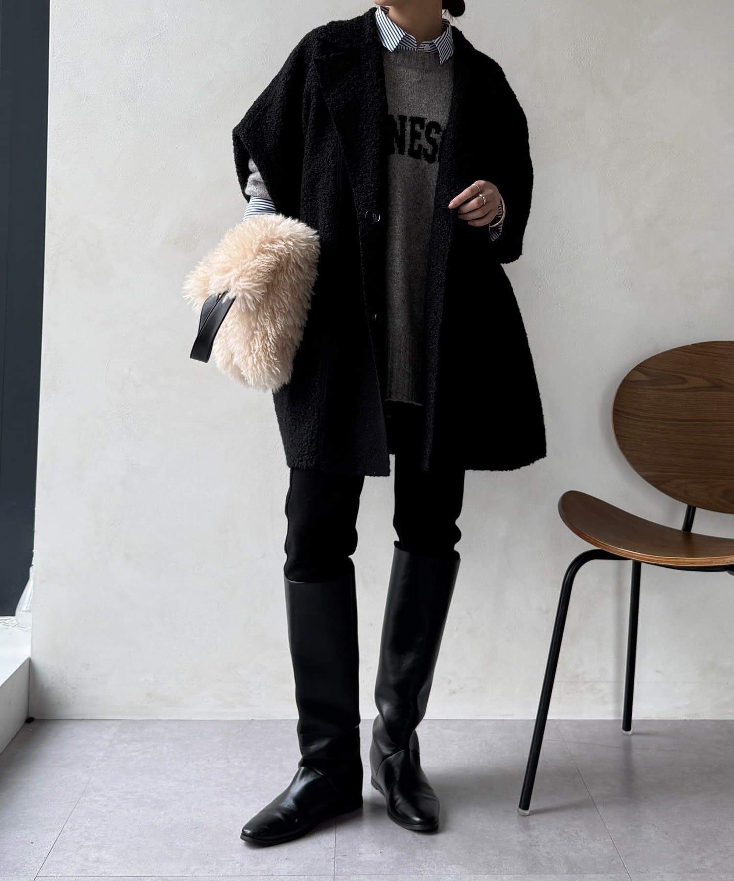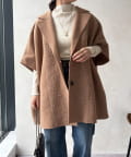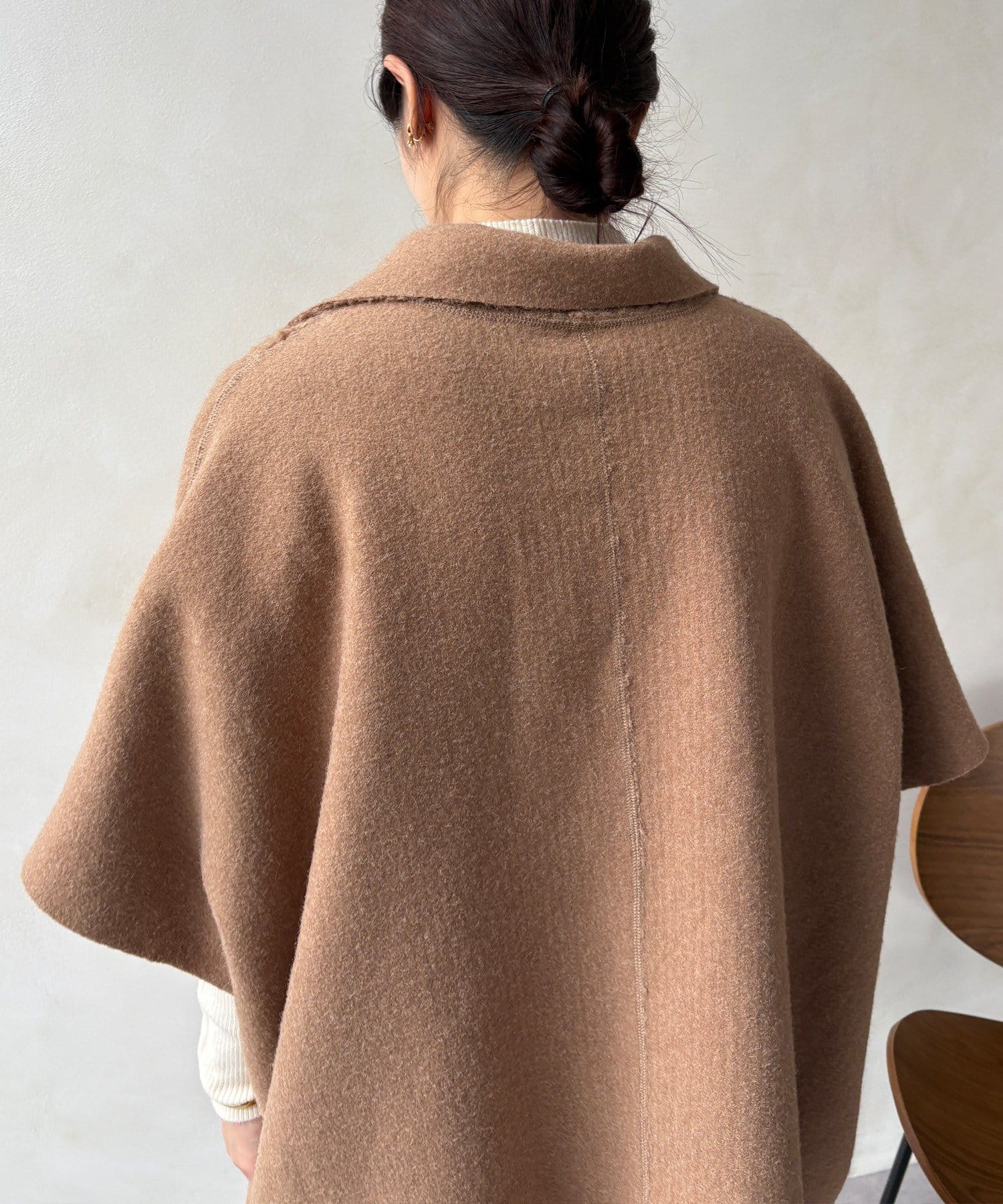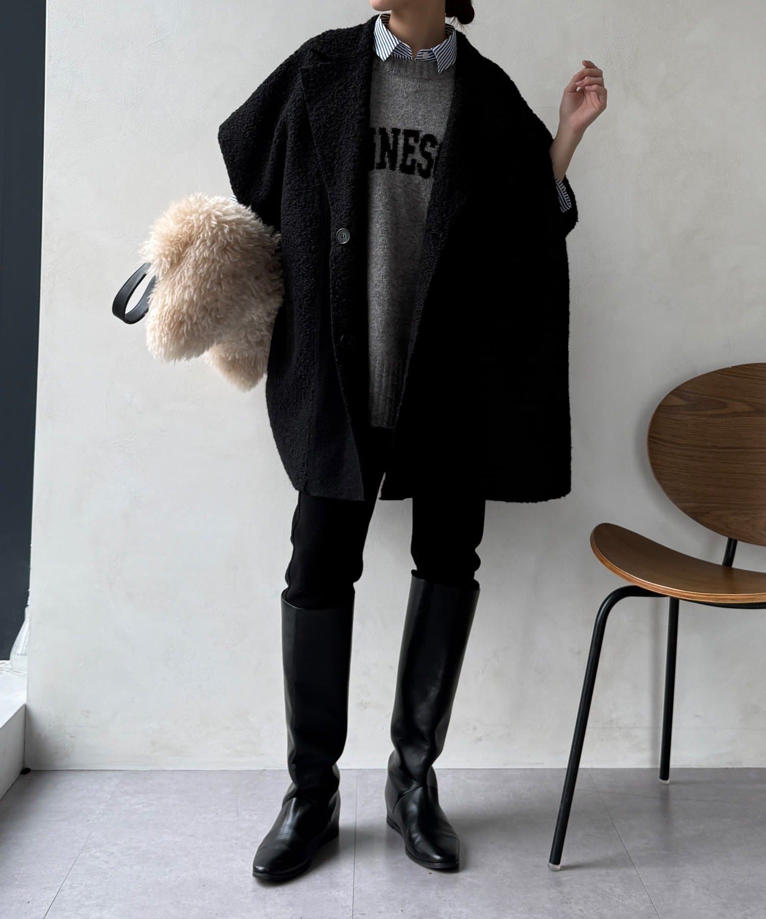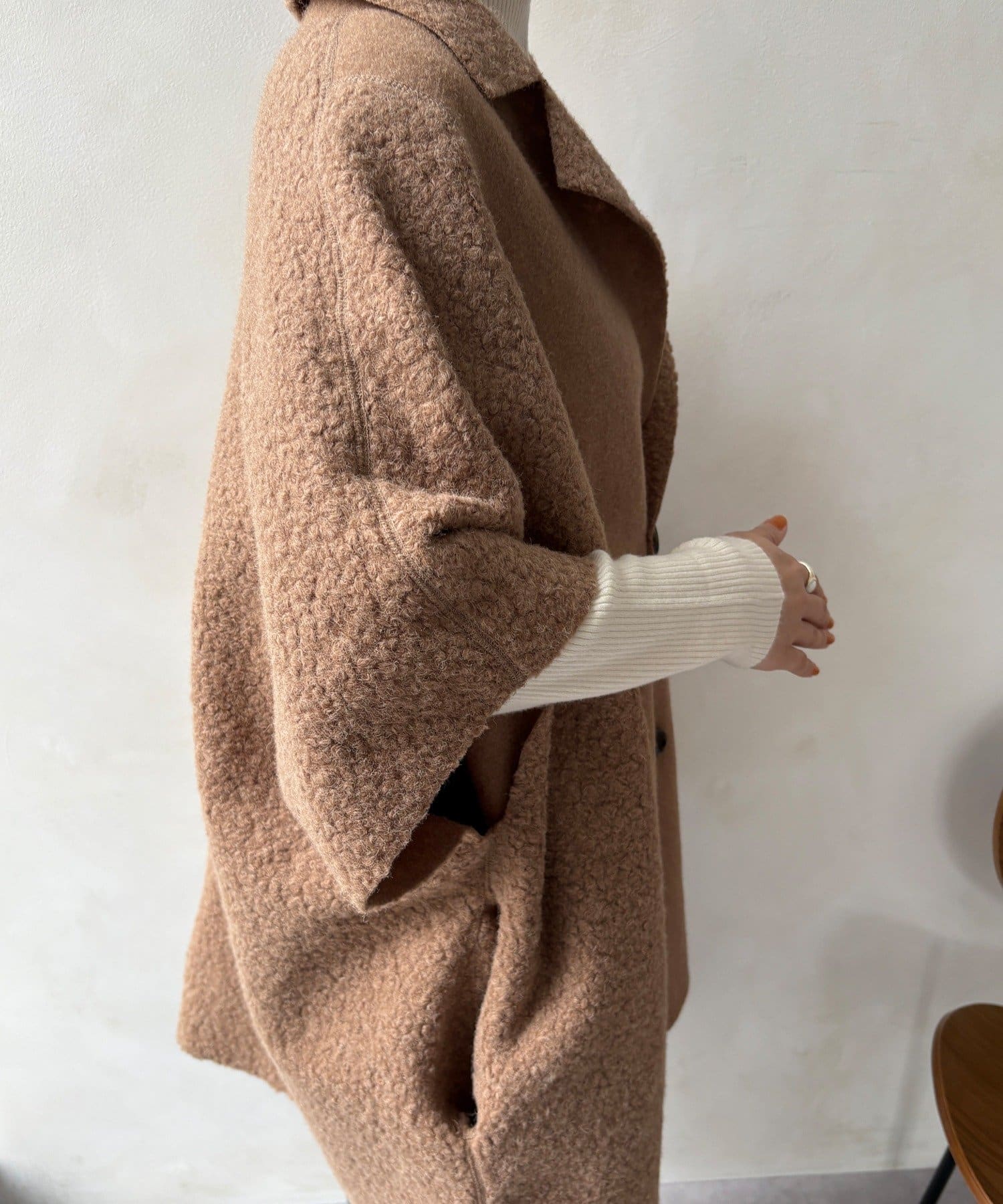 ゆったりとしたポンチョシルエットが体型を選ばず、スタイリングの主役になる一着です。