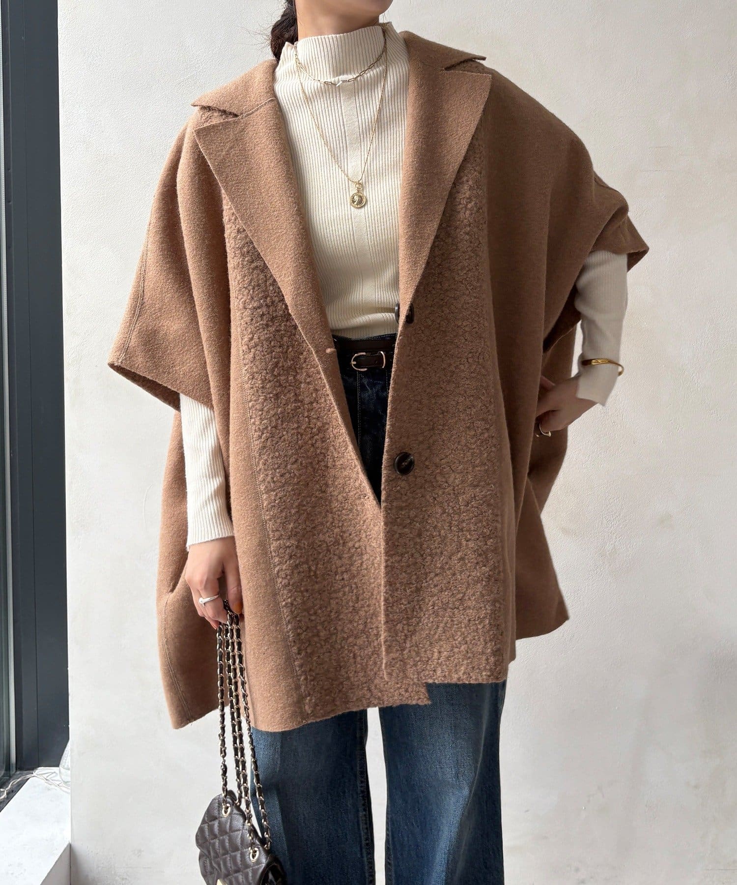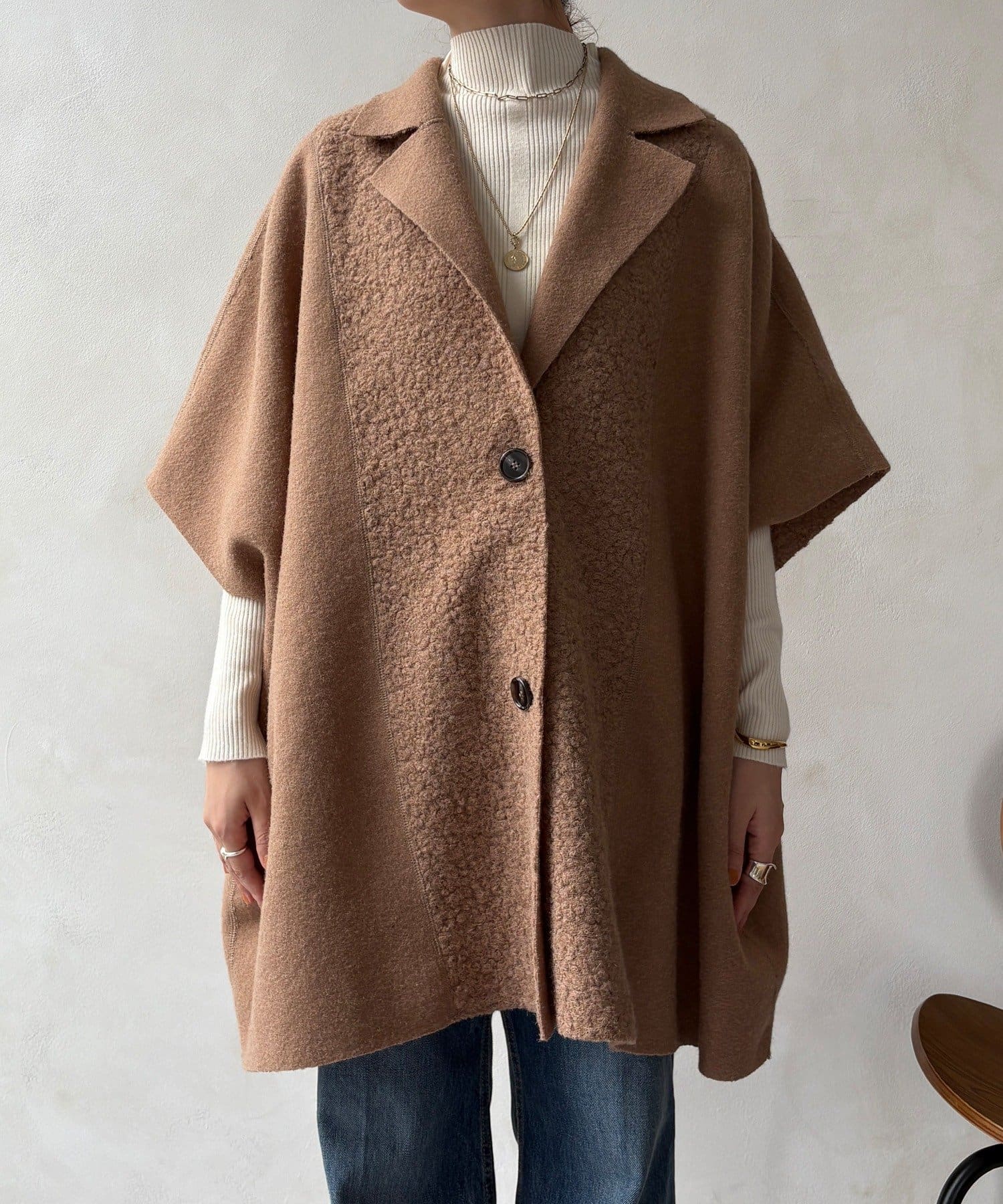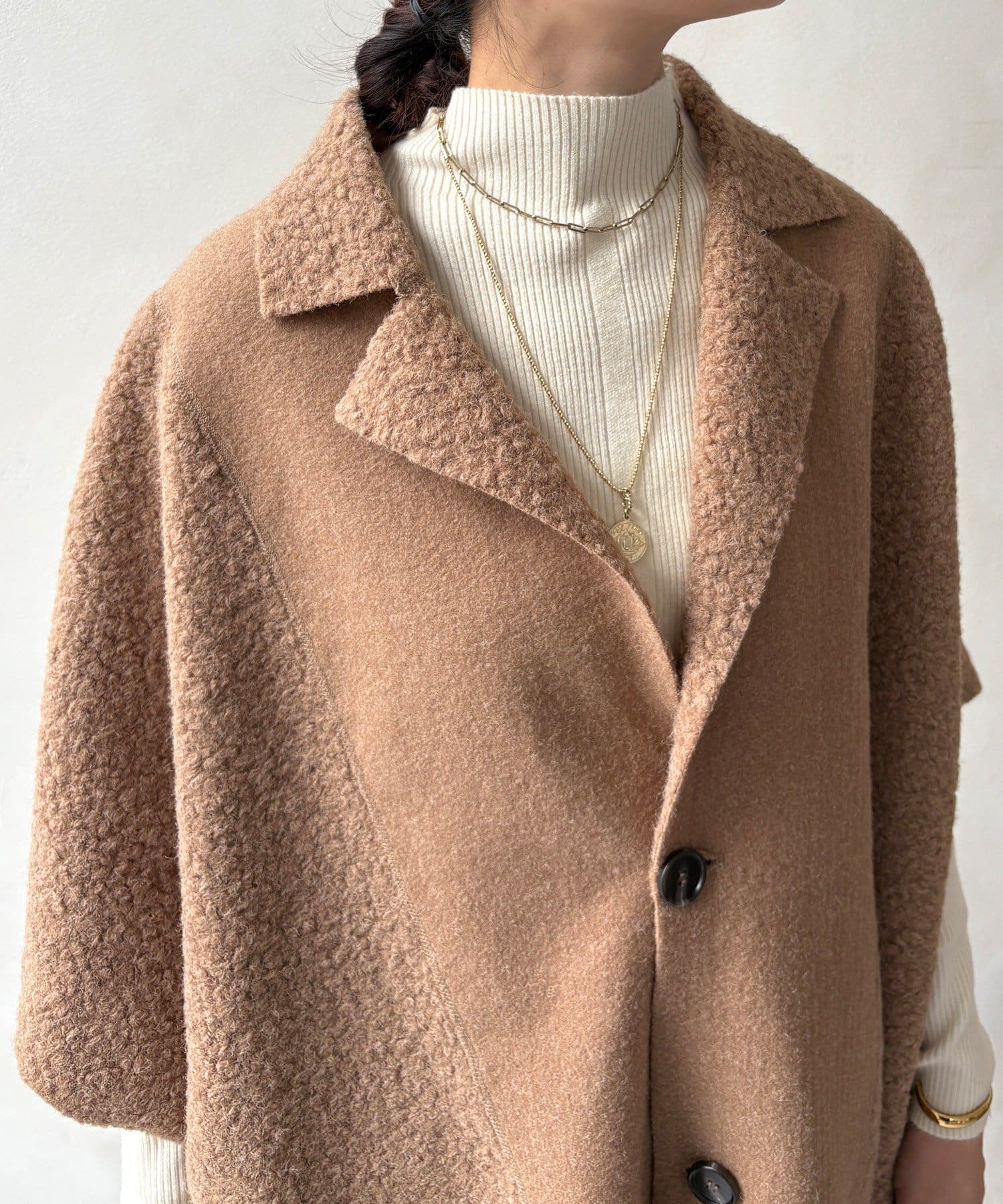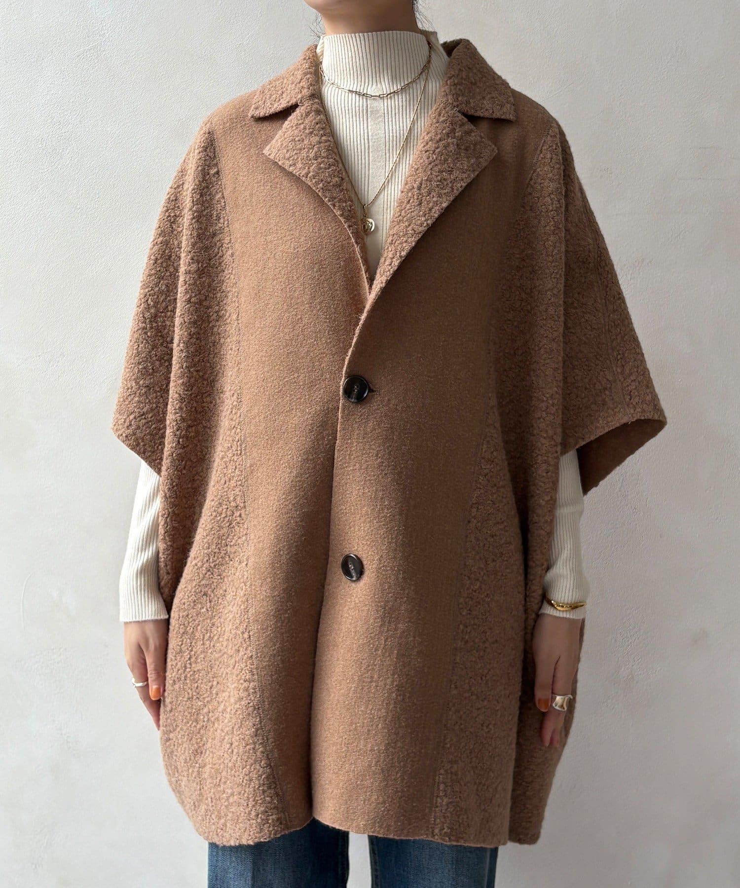 上質なスライバー素材とボアを組み合わせた、リバーシブル仕様のポンチョコートが登場。