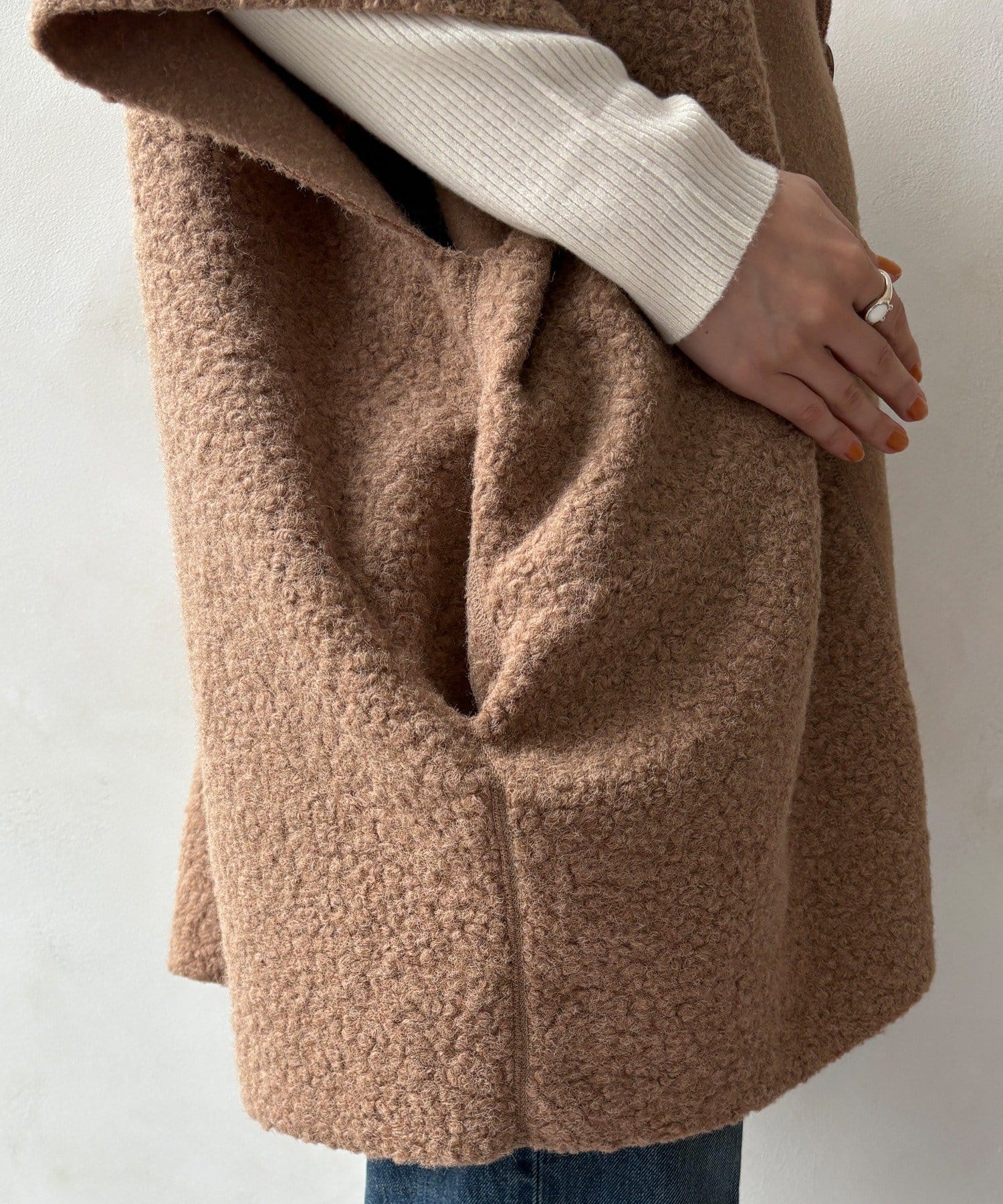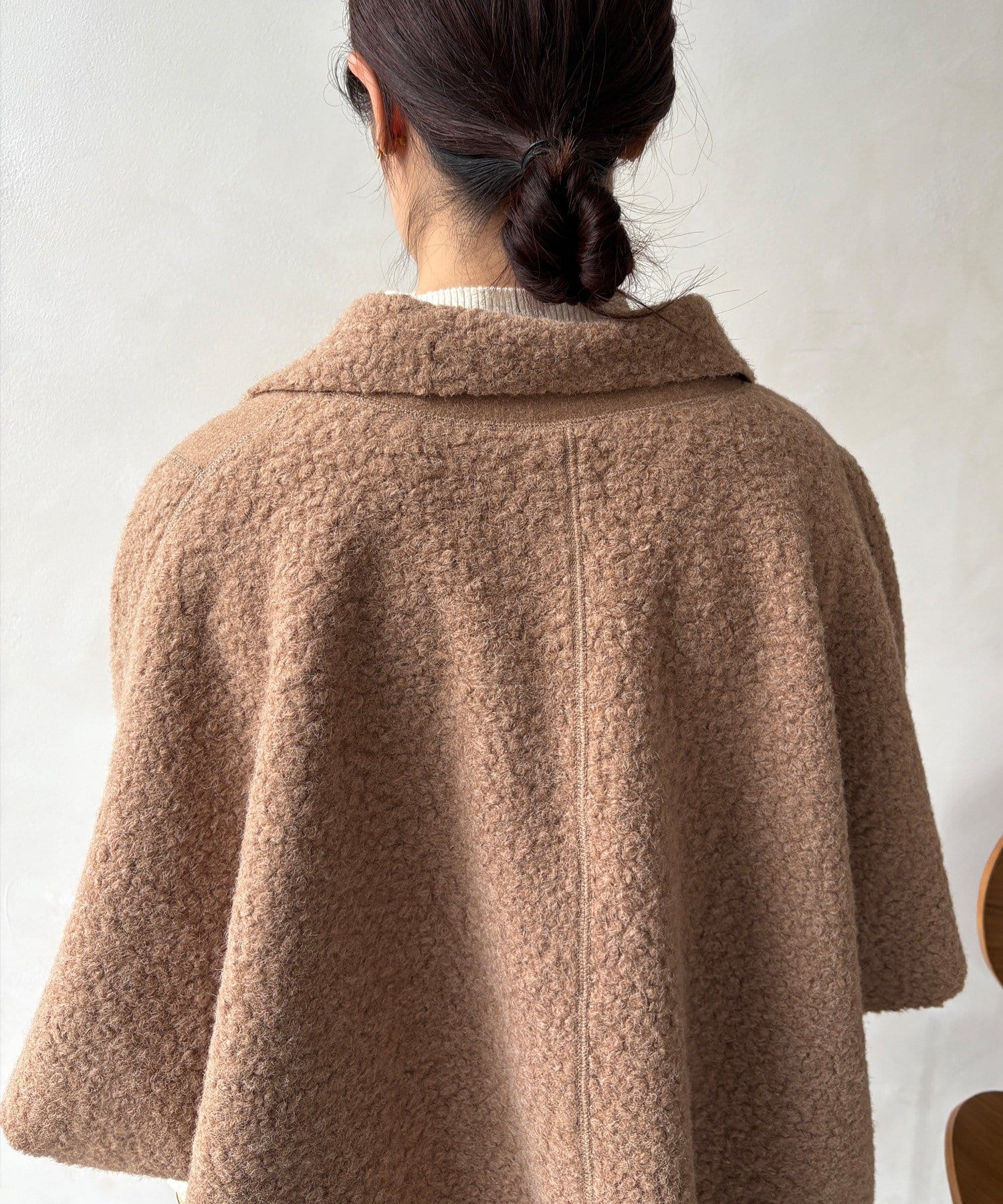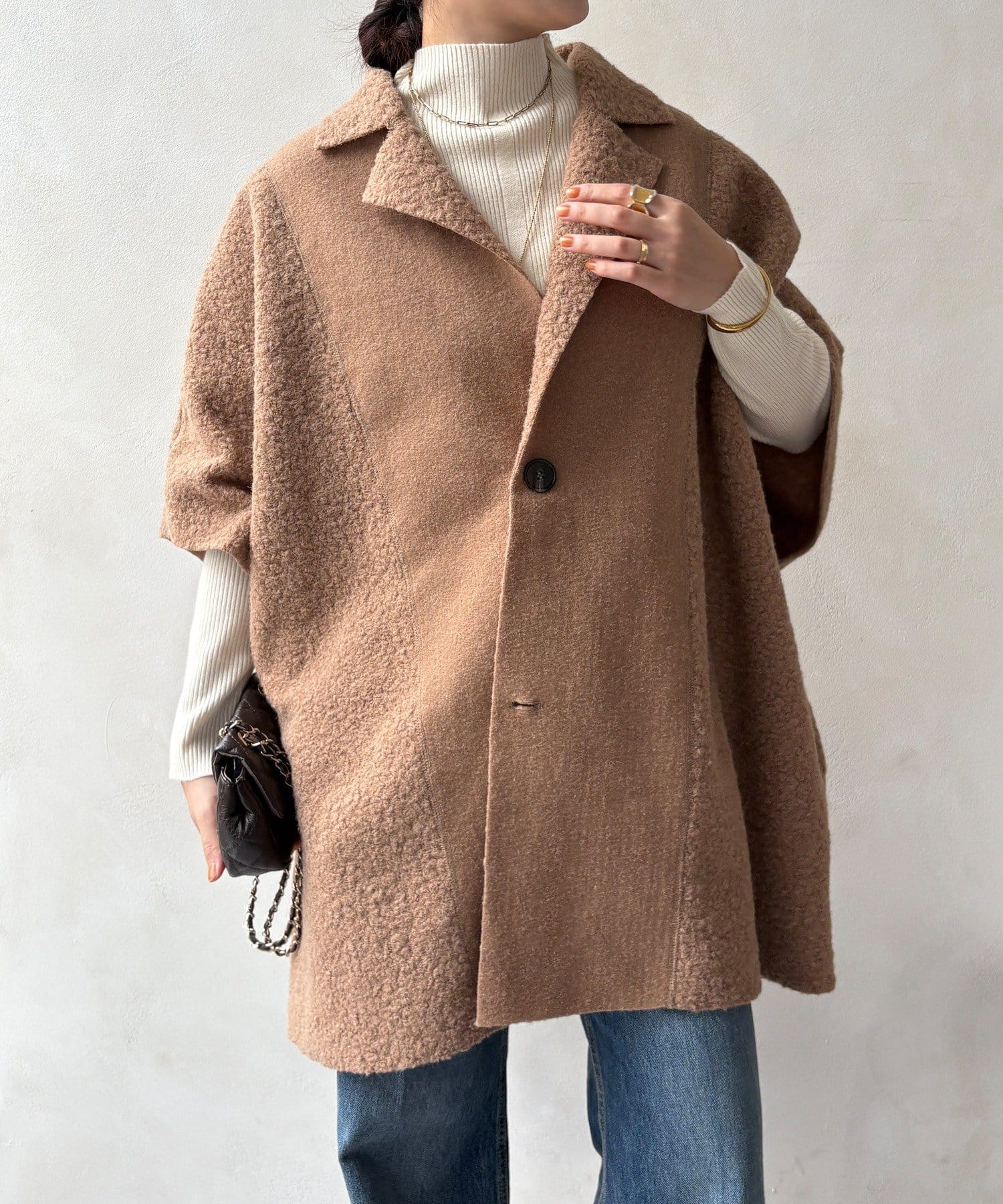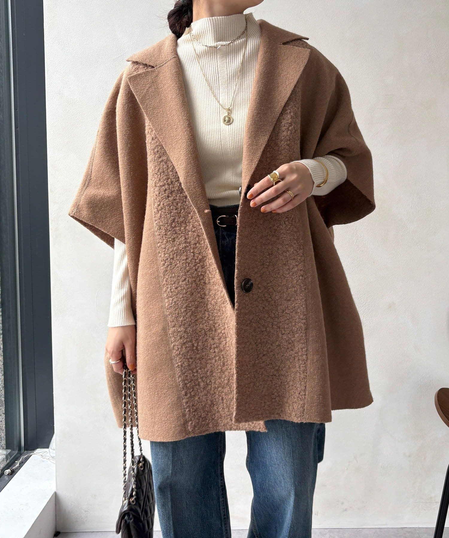 上質なスライバー素材とボアを組み合わせた、リバーシブル仕様のポンチョコートが登場。