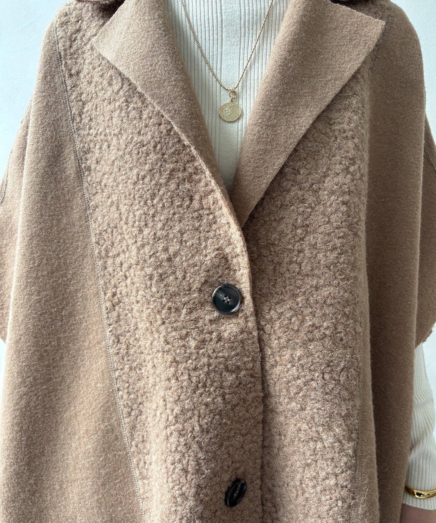 ふんわり暖か、リバーシブルボアスライバーポンチョコート