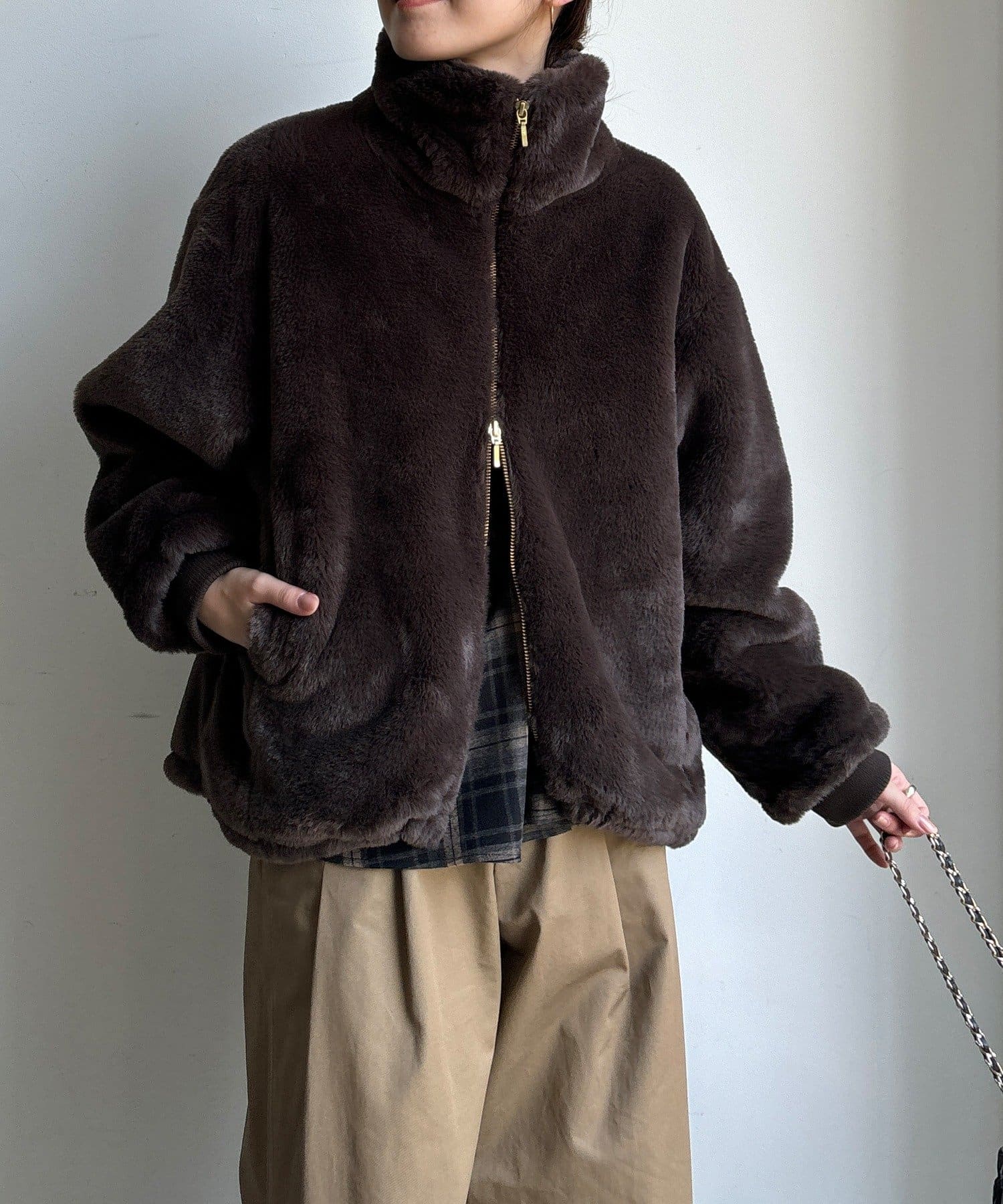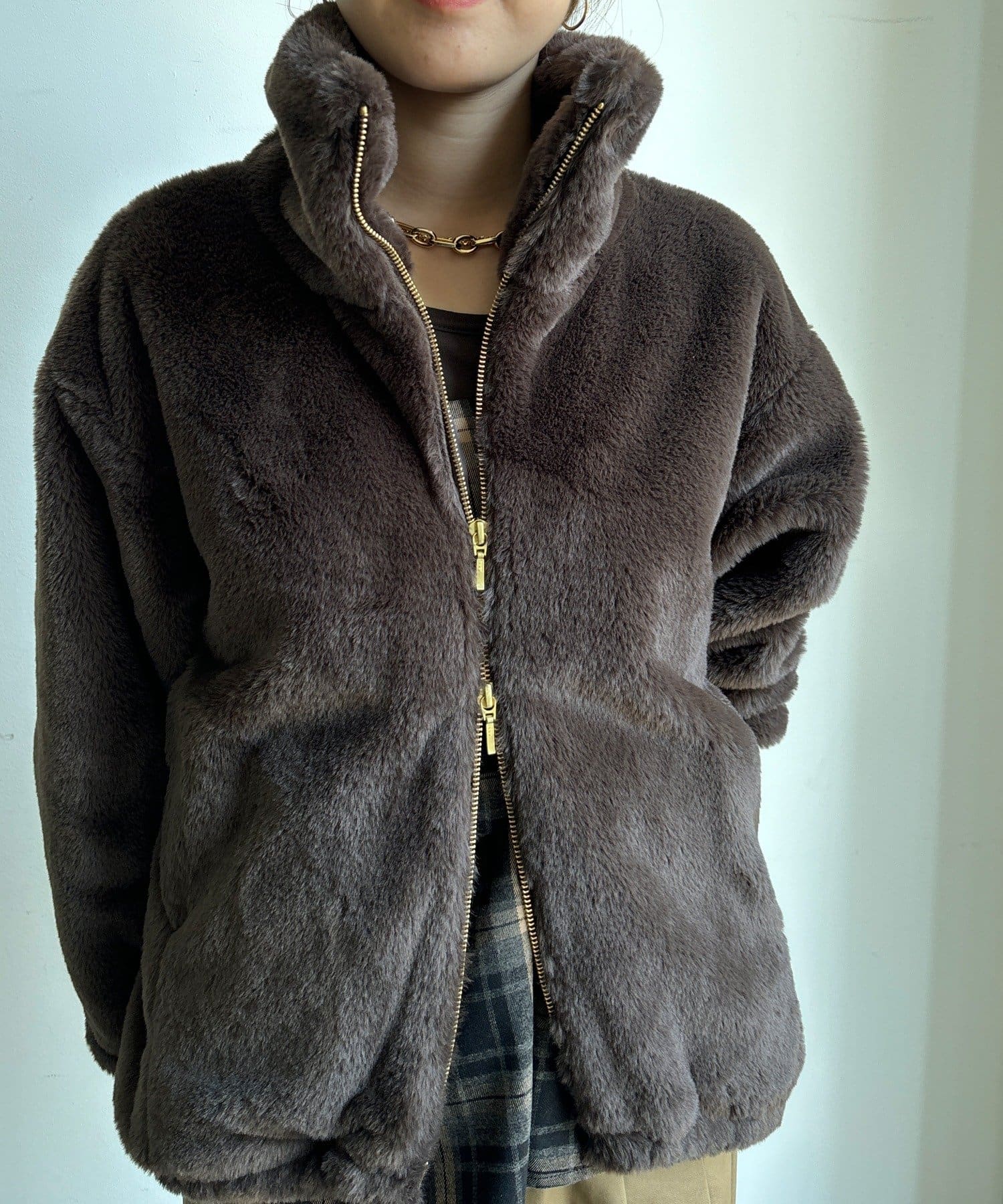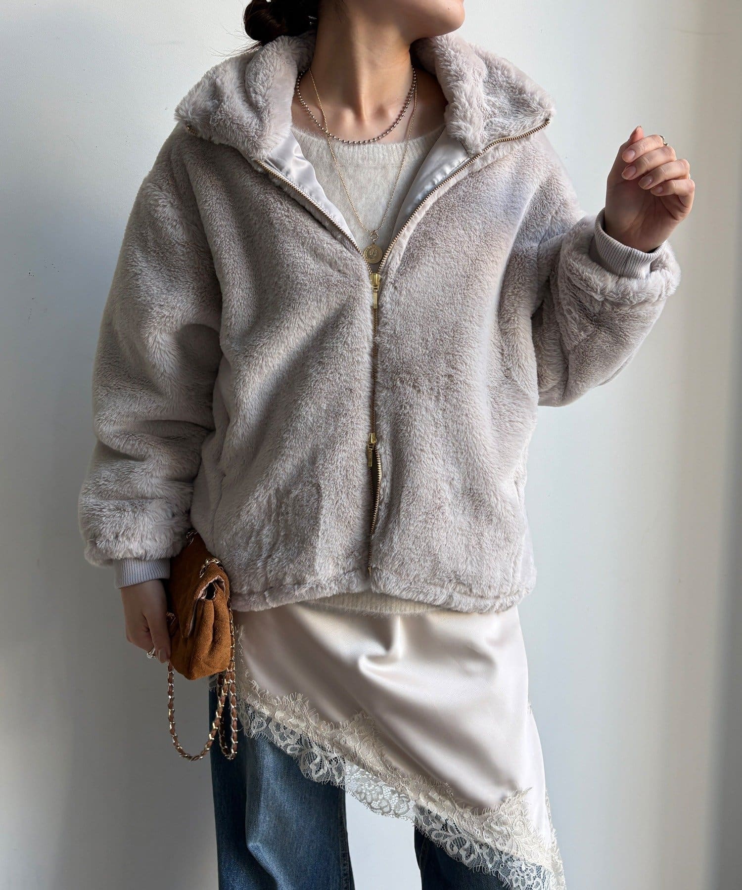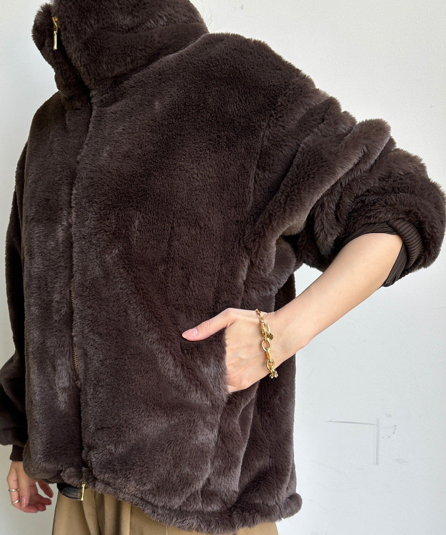 思わず触れたくなるような、ふわふわのフェイクミンク素材が魅力のスタンドファーブルゾンが登場!