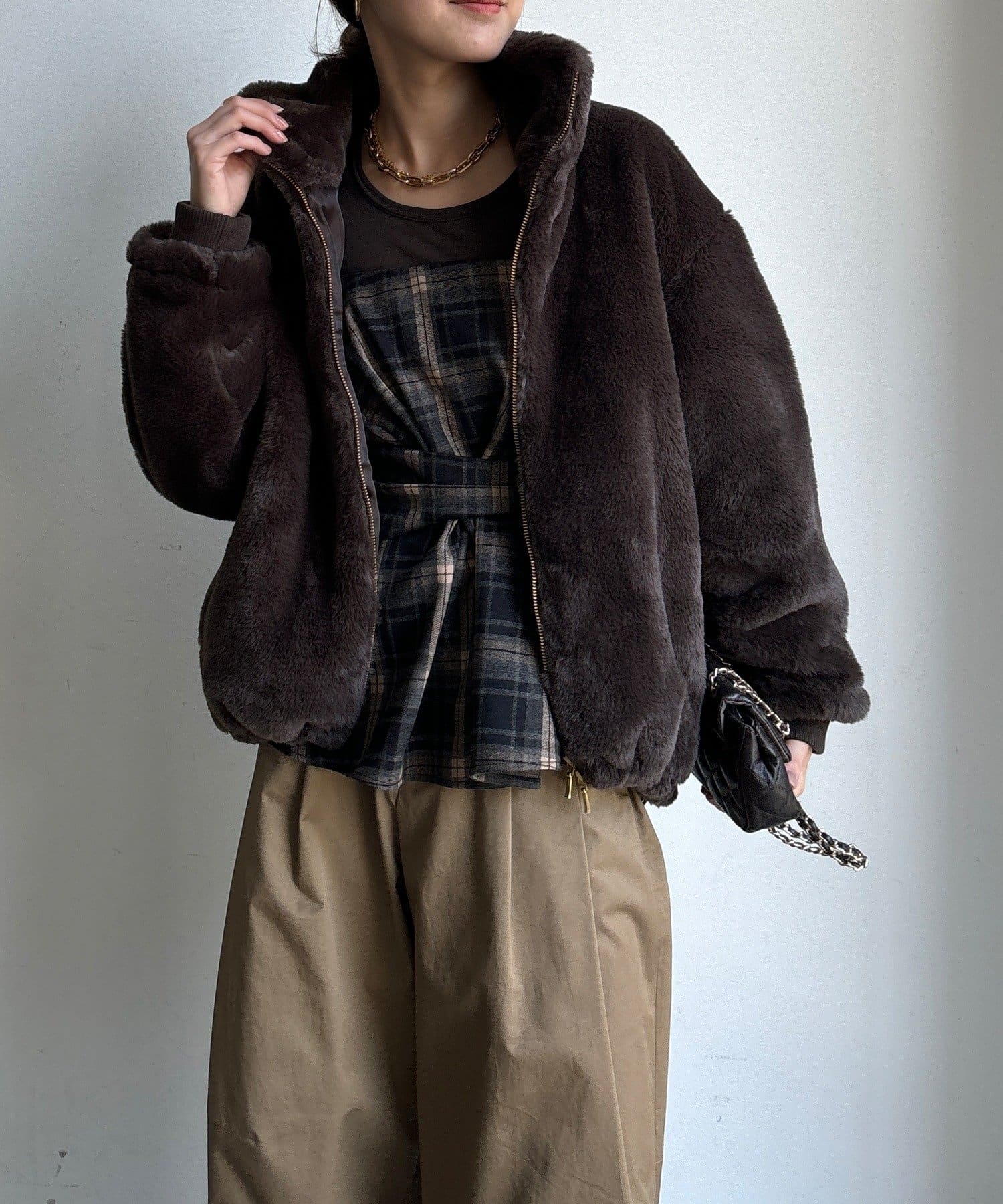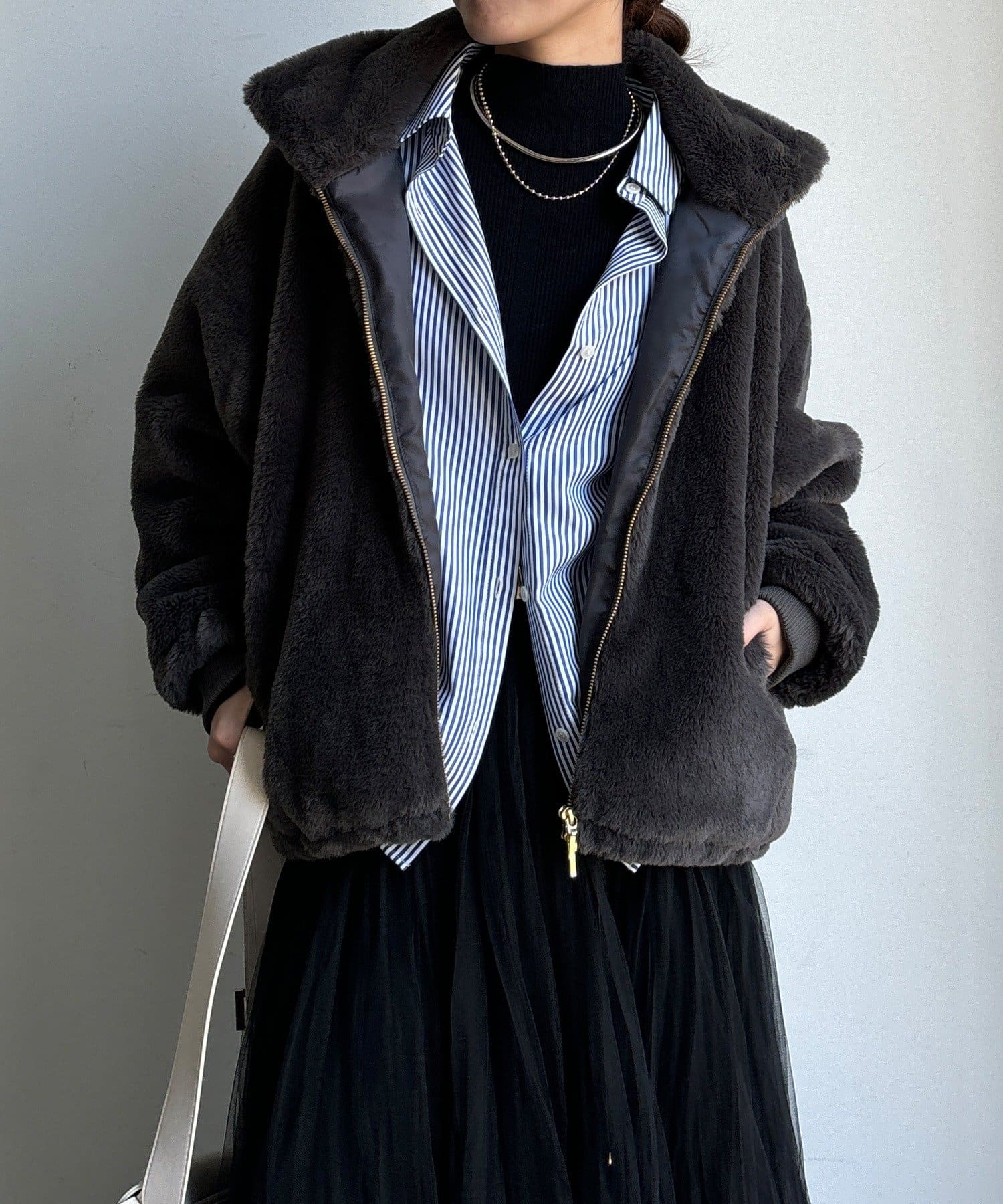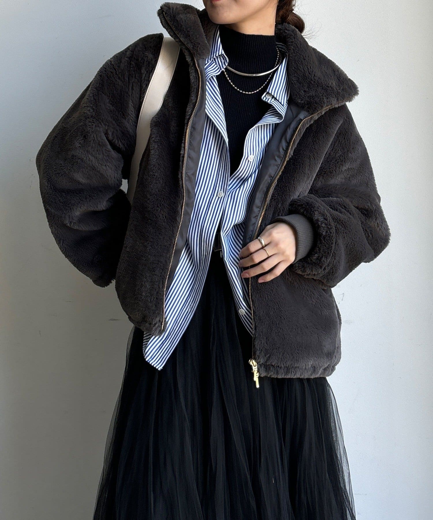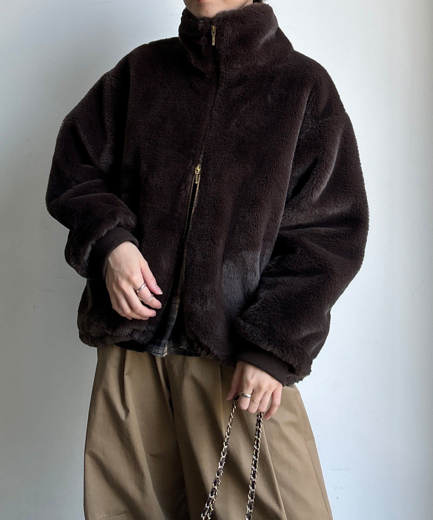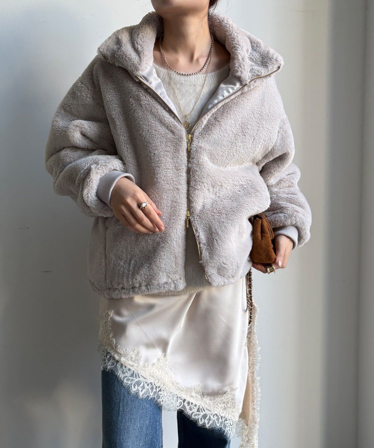 思わず触れたくなるような、ふわふわのフェイクミンク素材が魅力のスタンドファーブルゾンが登場!