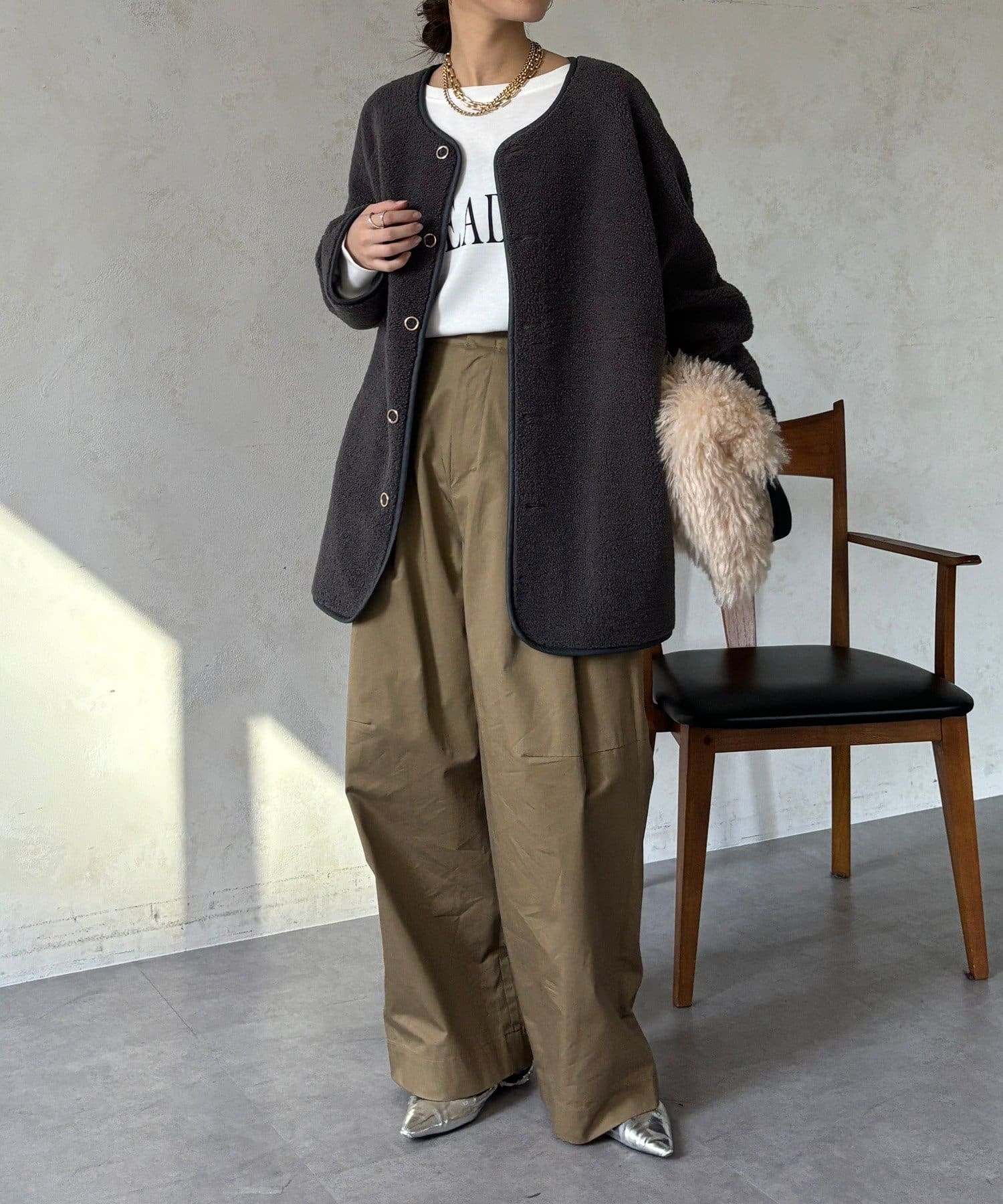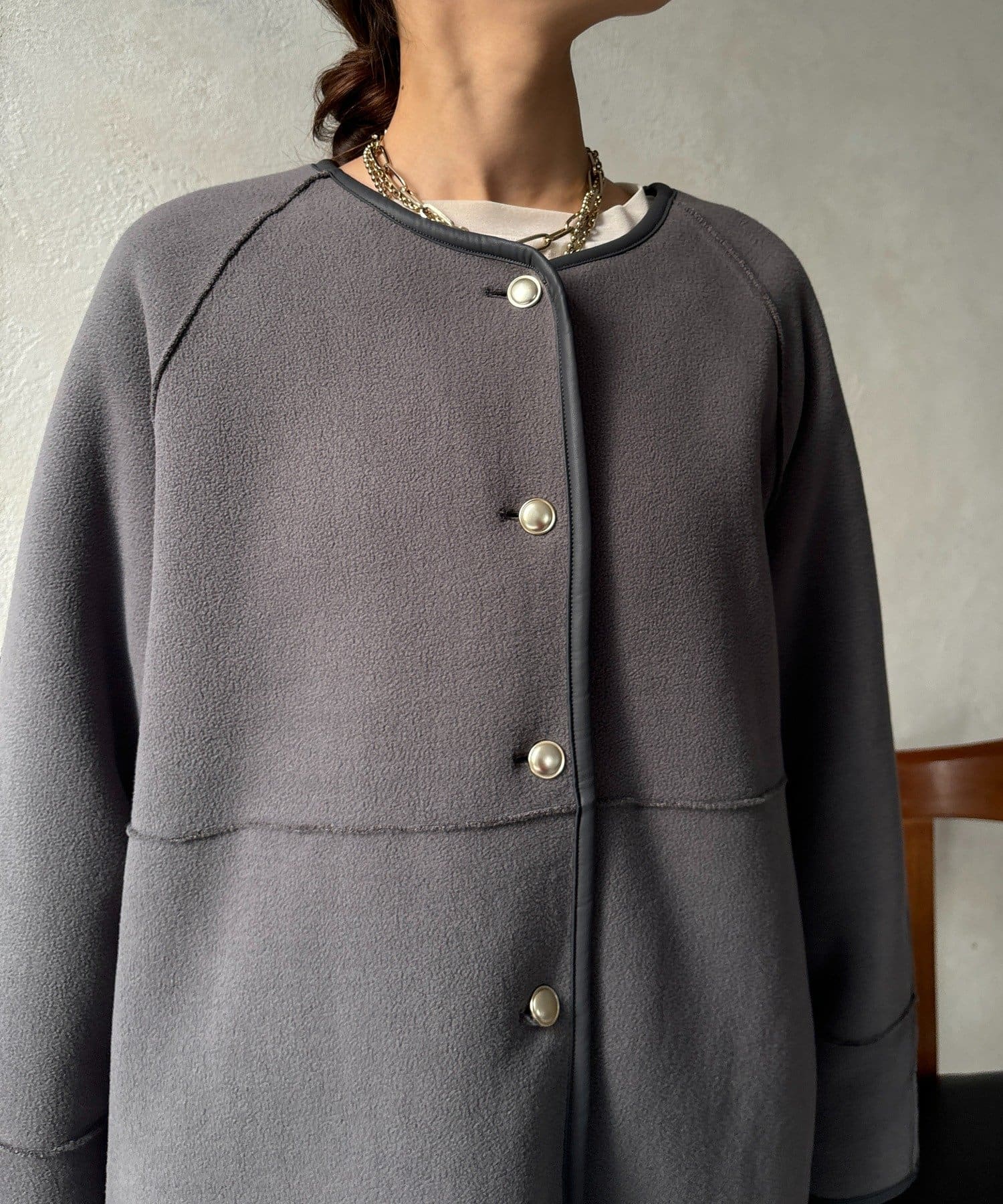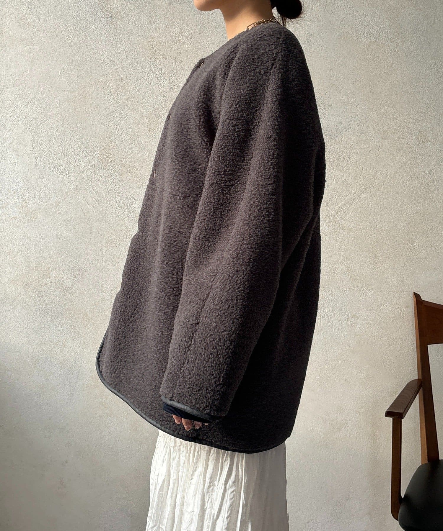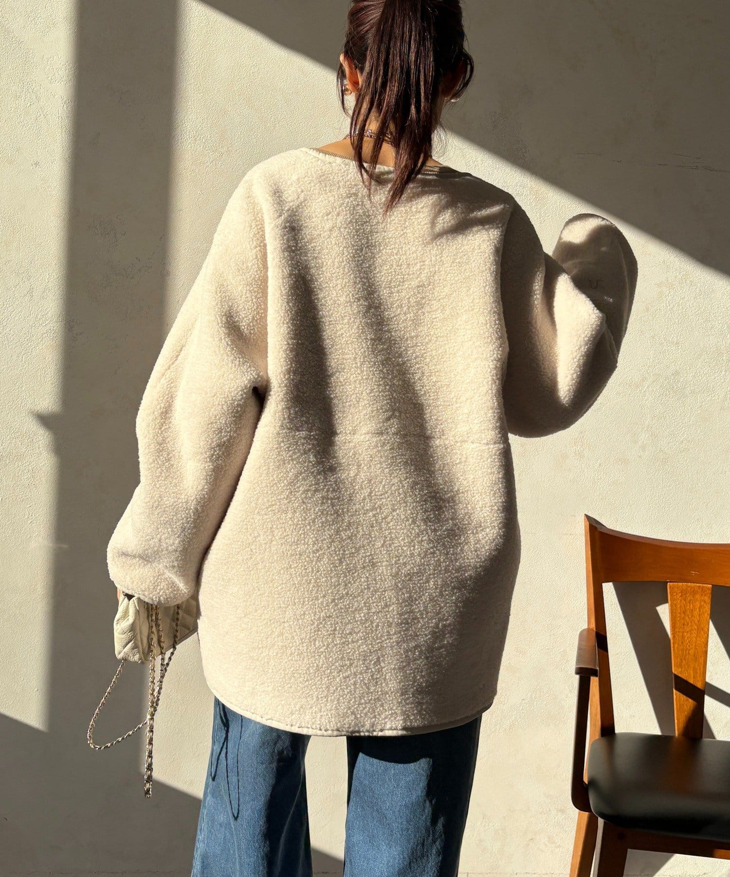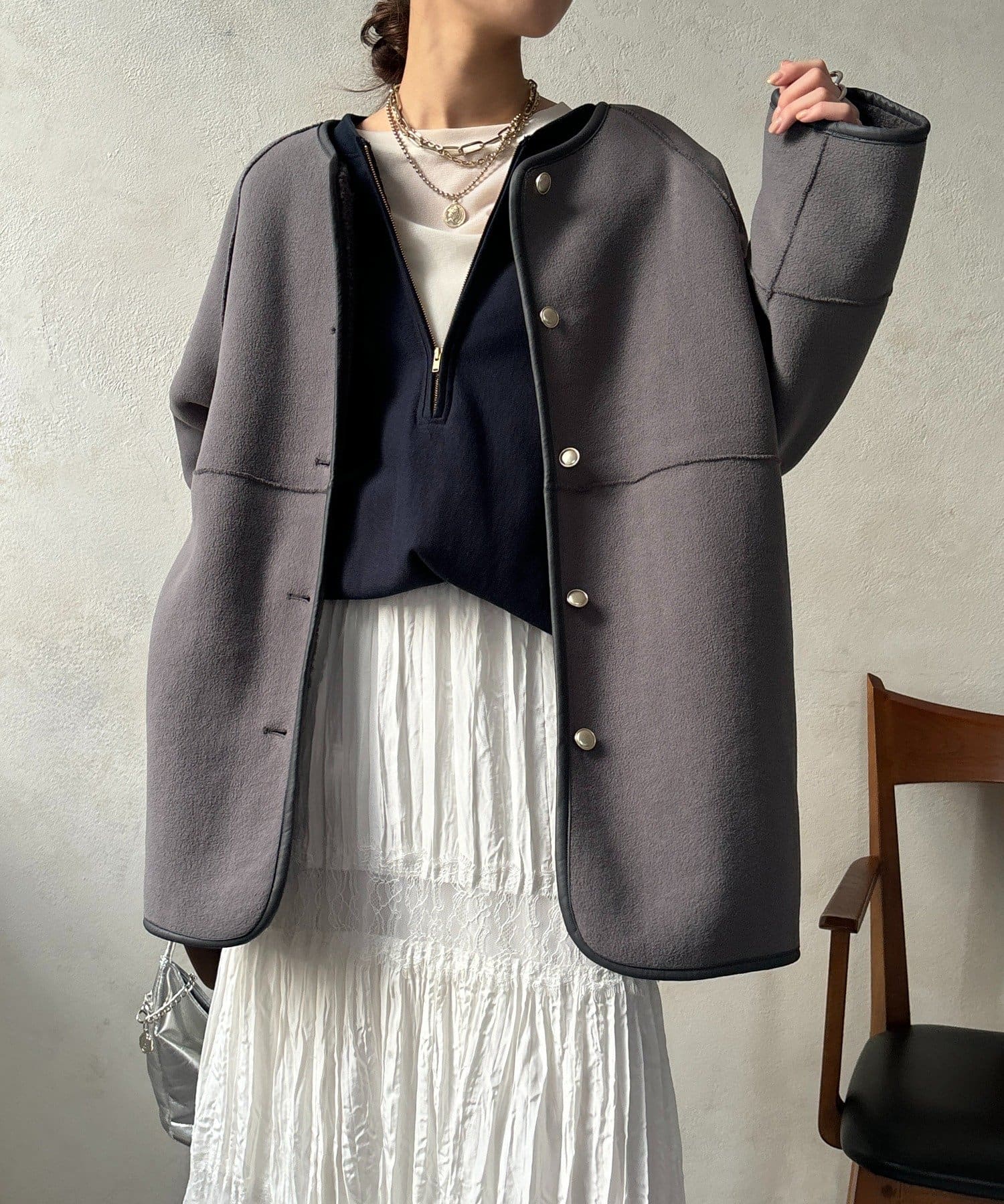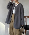 ノーカラーのすっきりとしたデザインのため、気軽に羽織っていただけます。