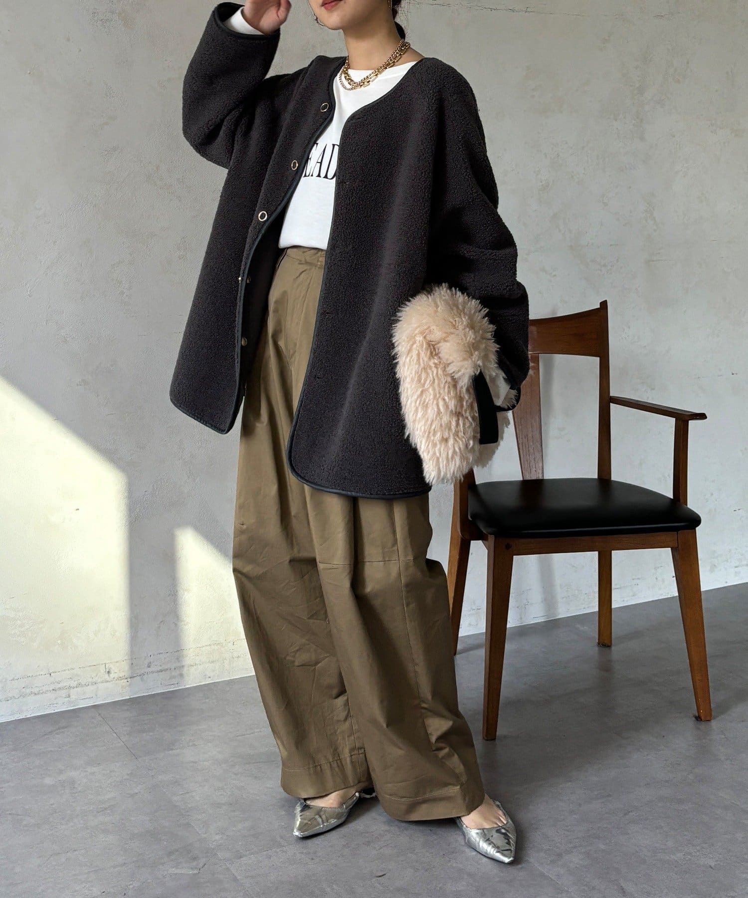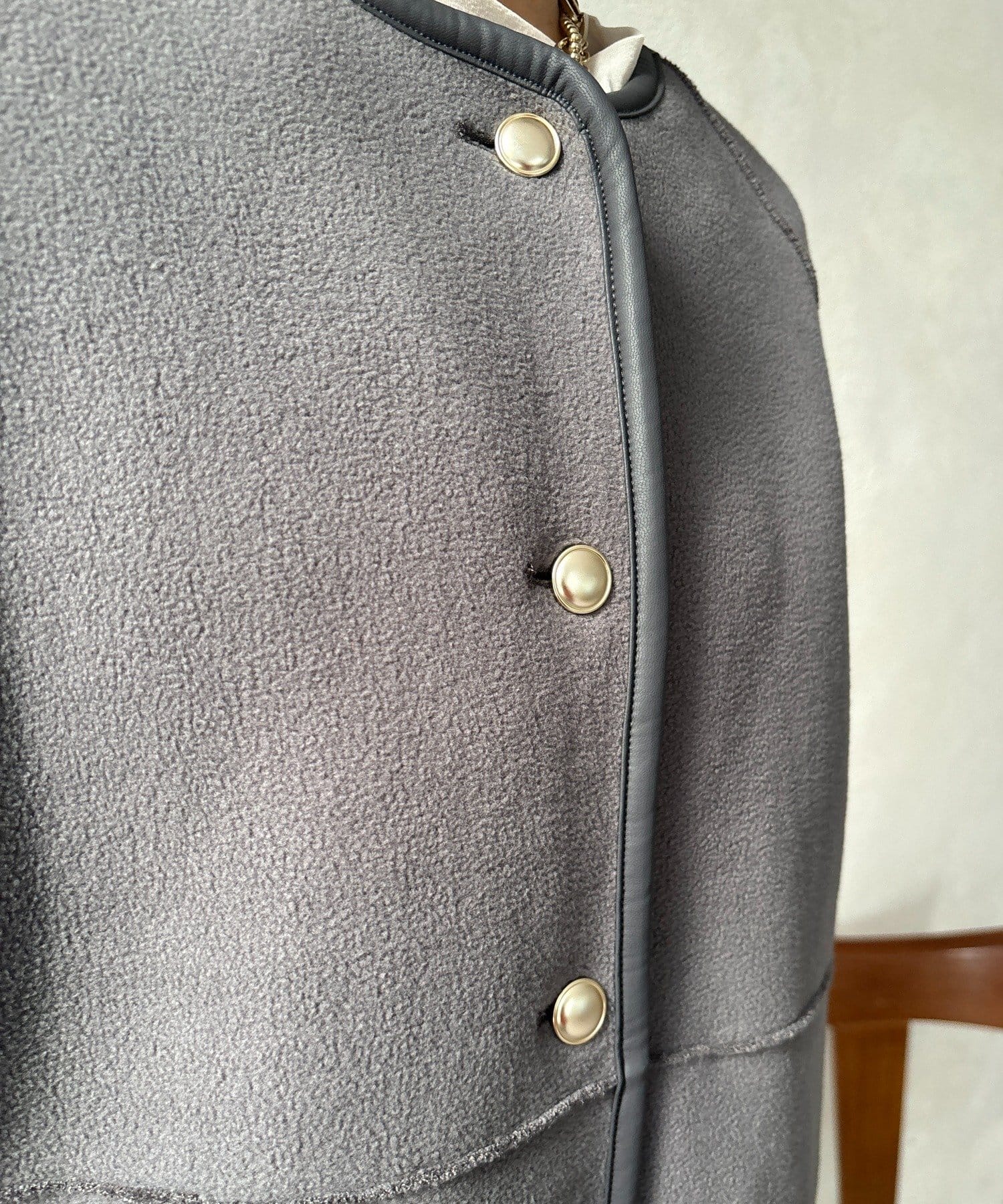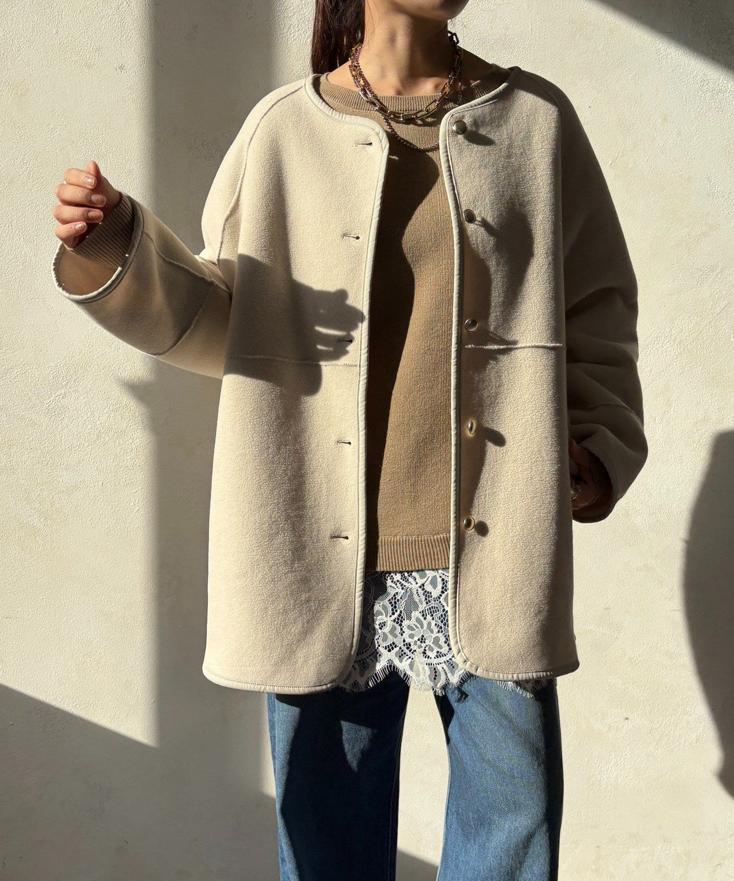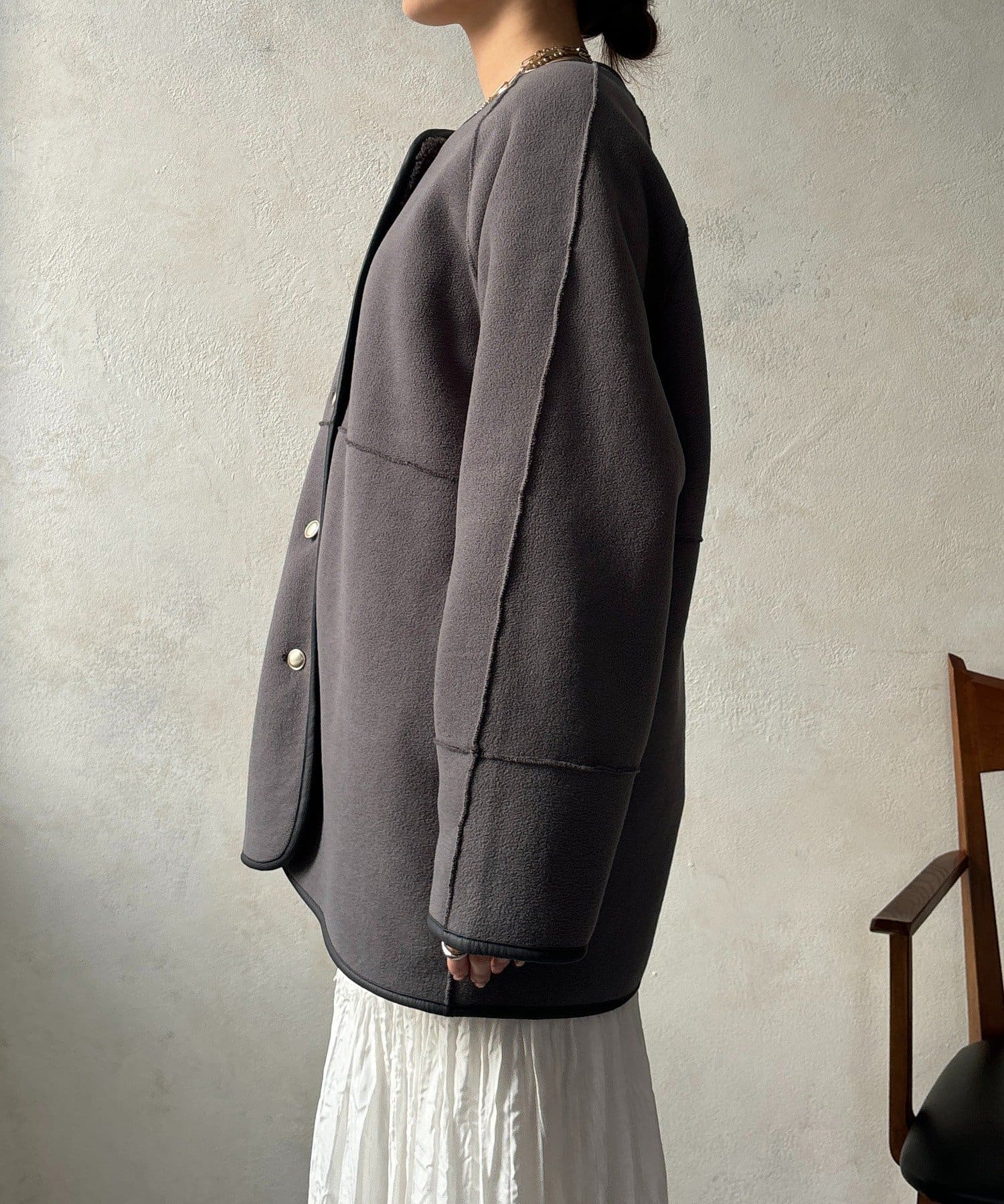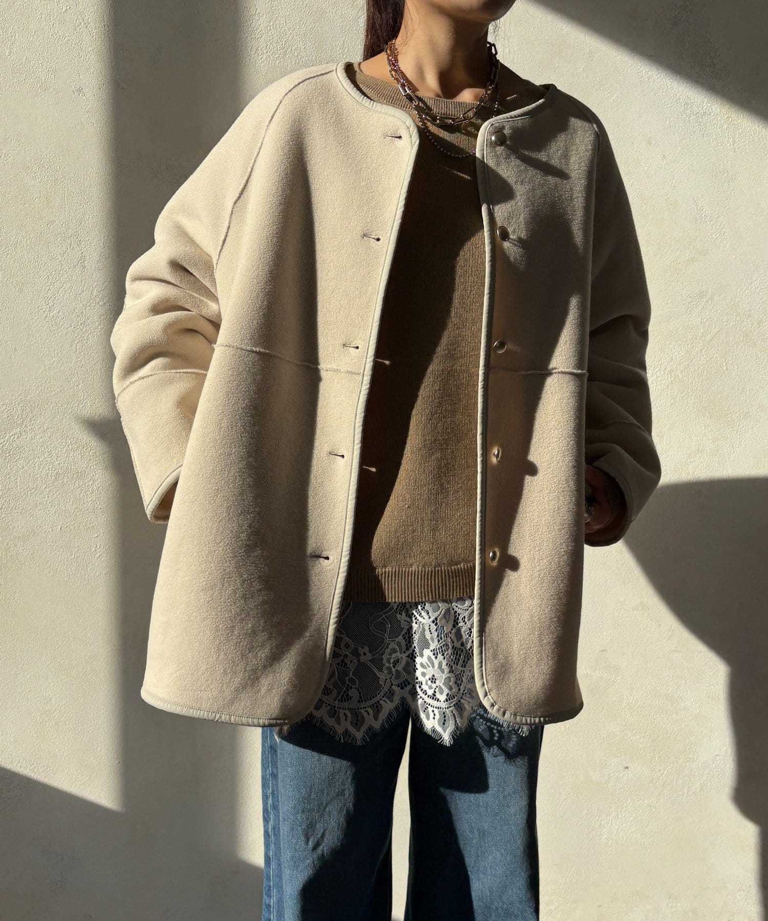 ノーカラーのすっきりとしたデザインのため、気軽に羽織っていただけます。