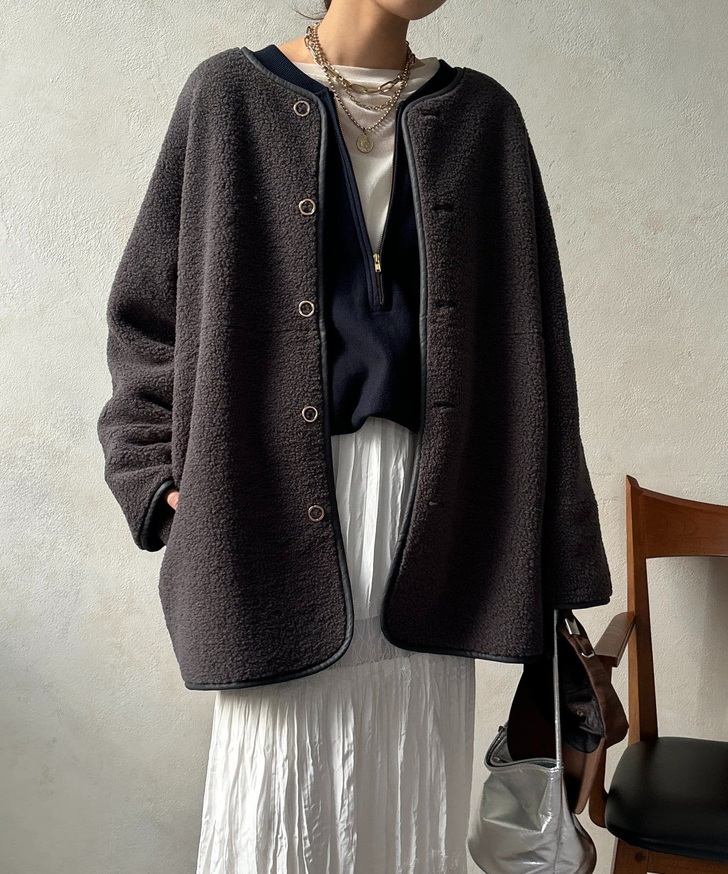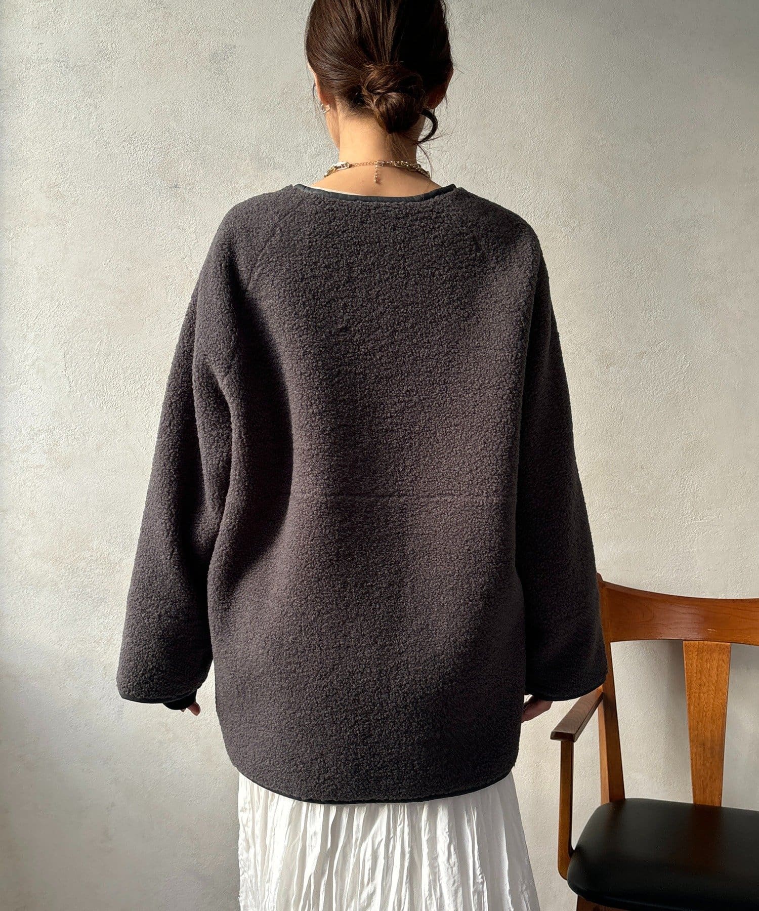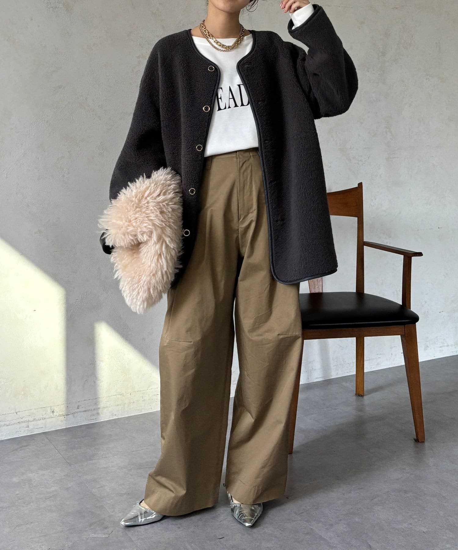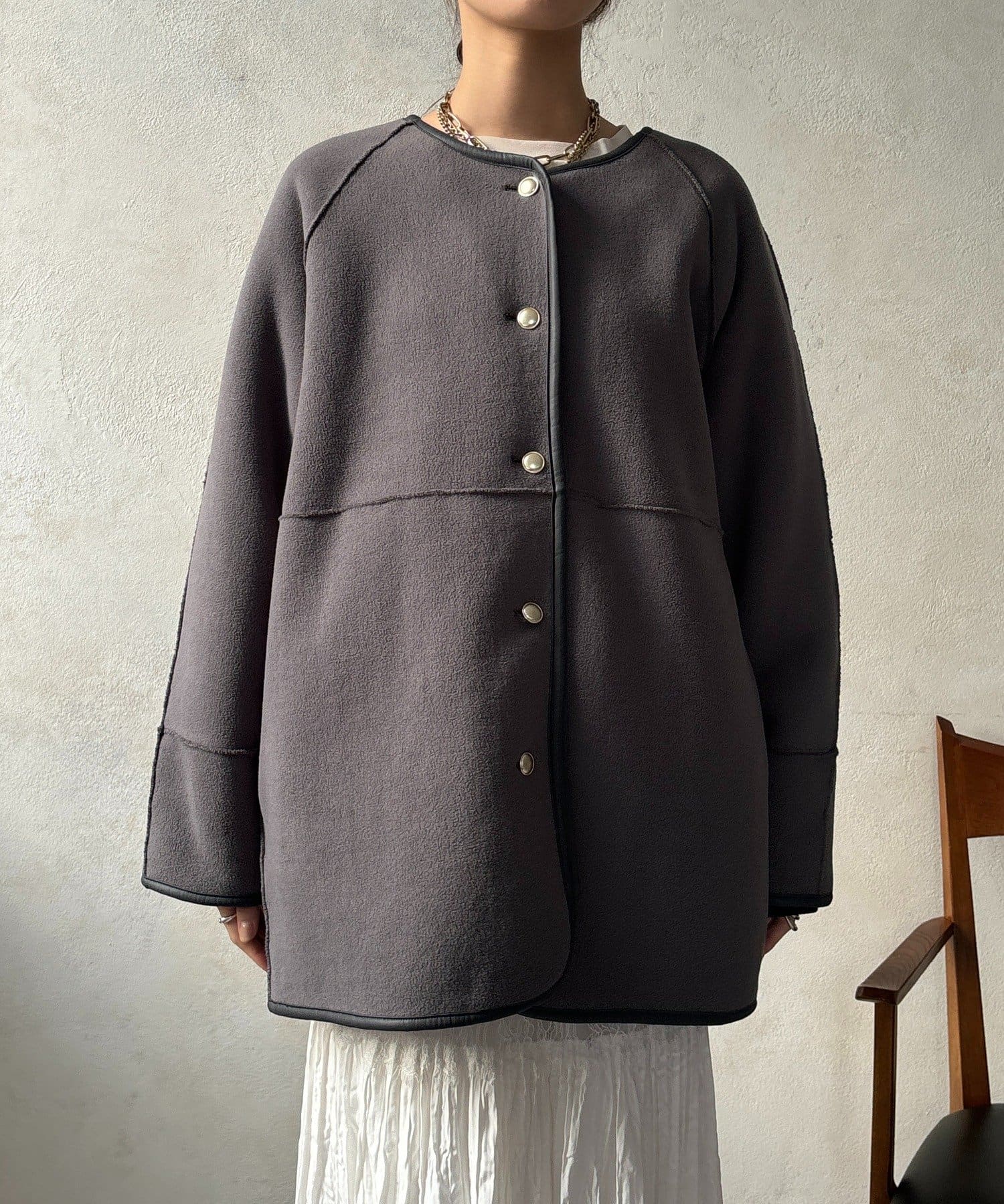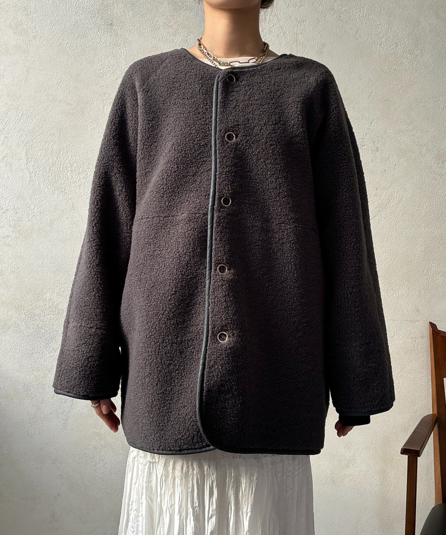 ノーカラーのすっきりとしたデザインのため、気軽に羽織っていただけます。