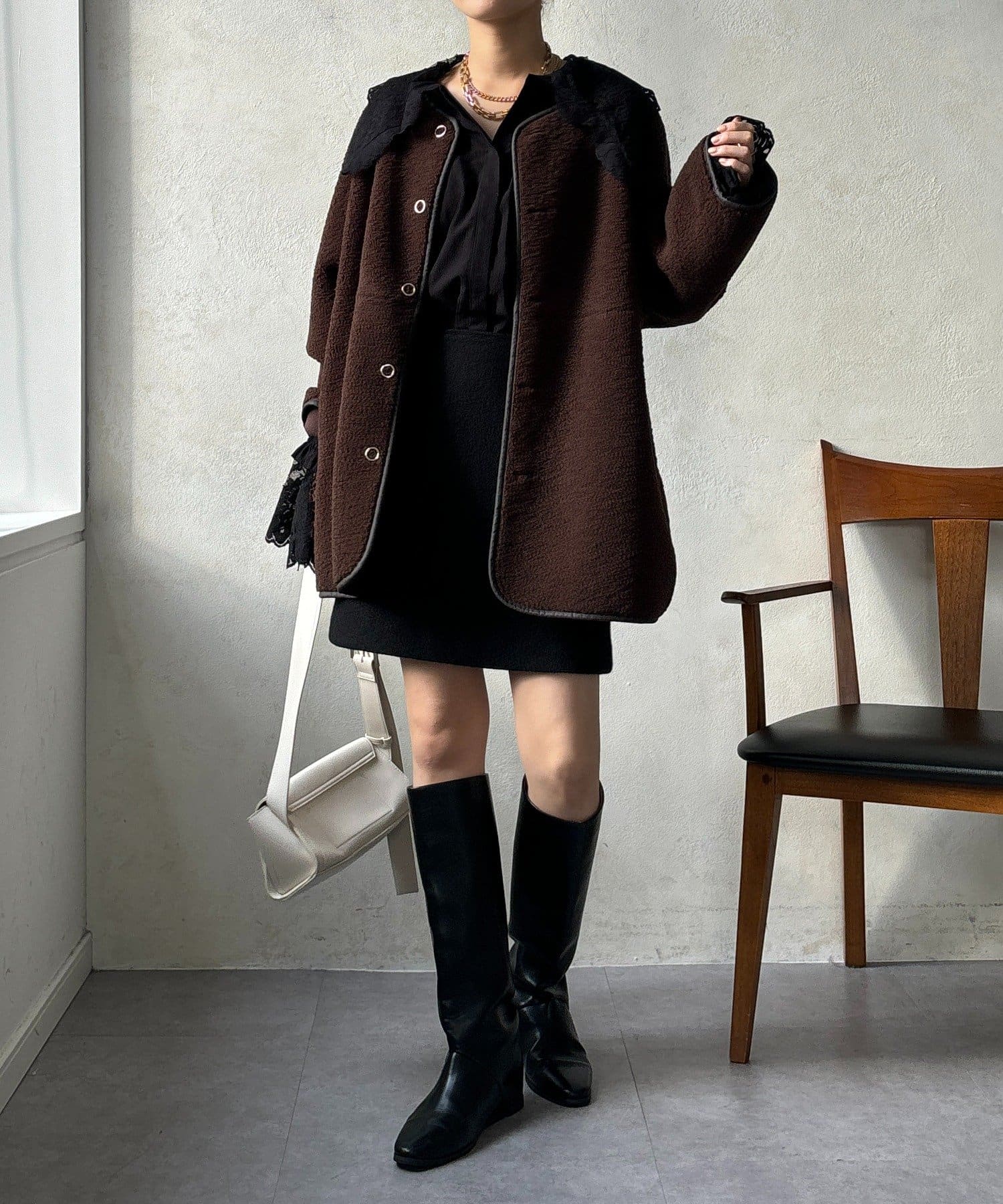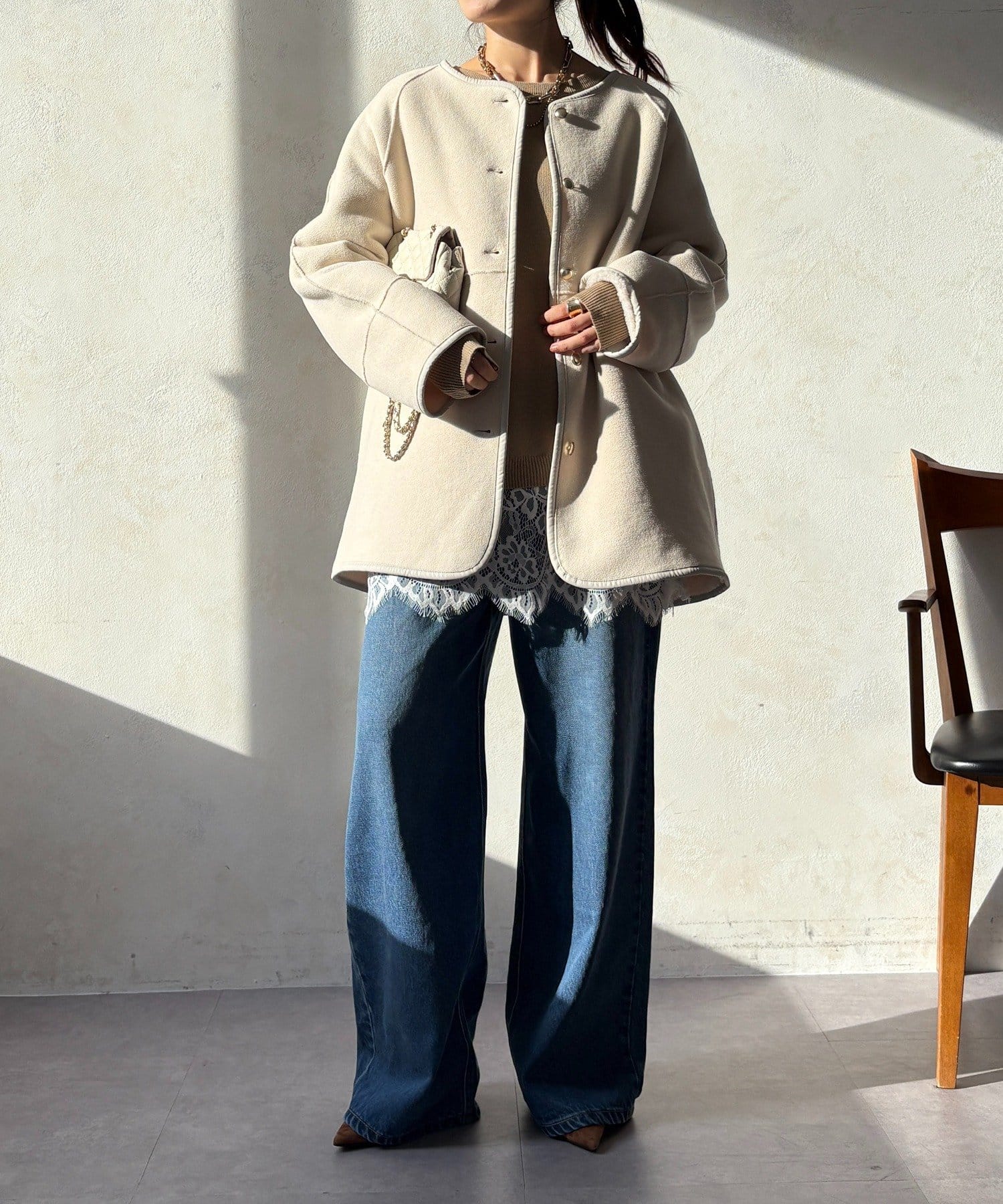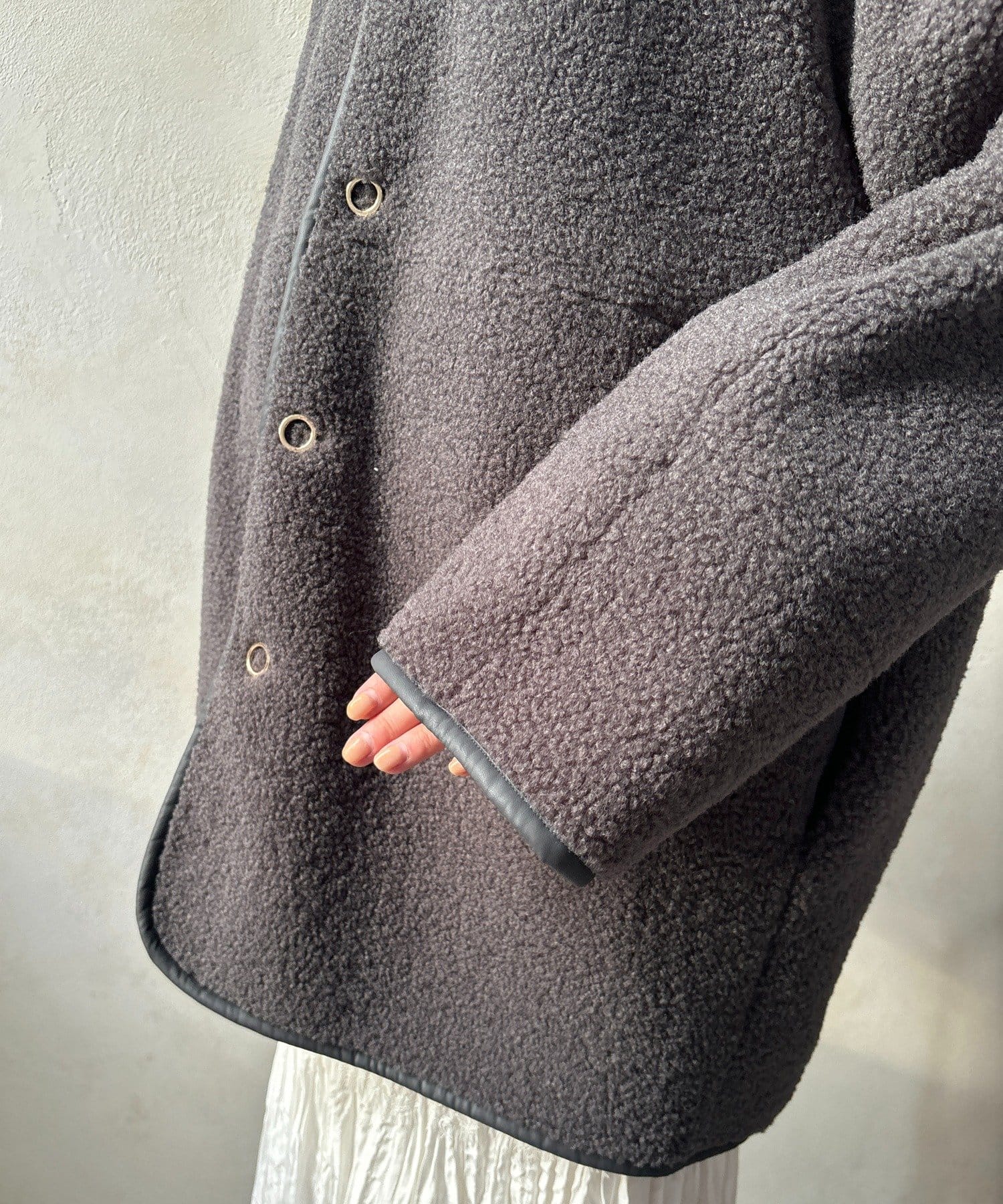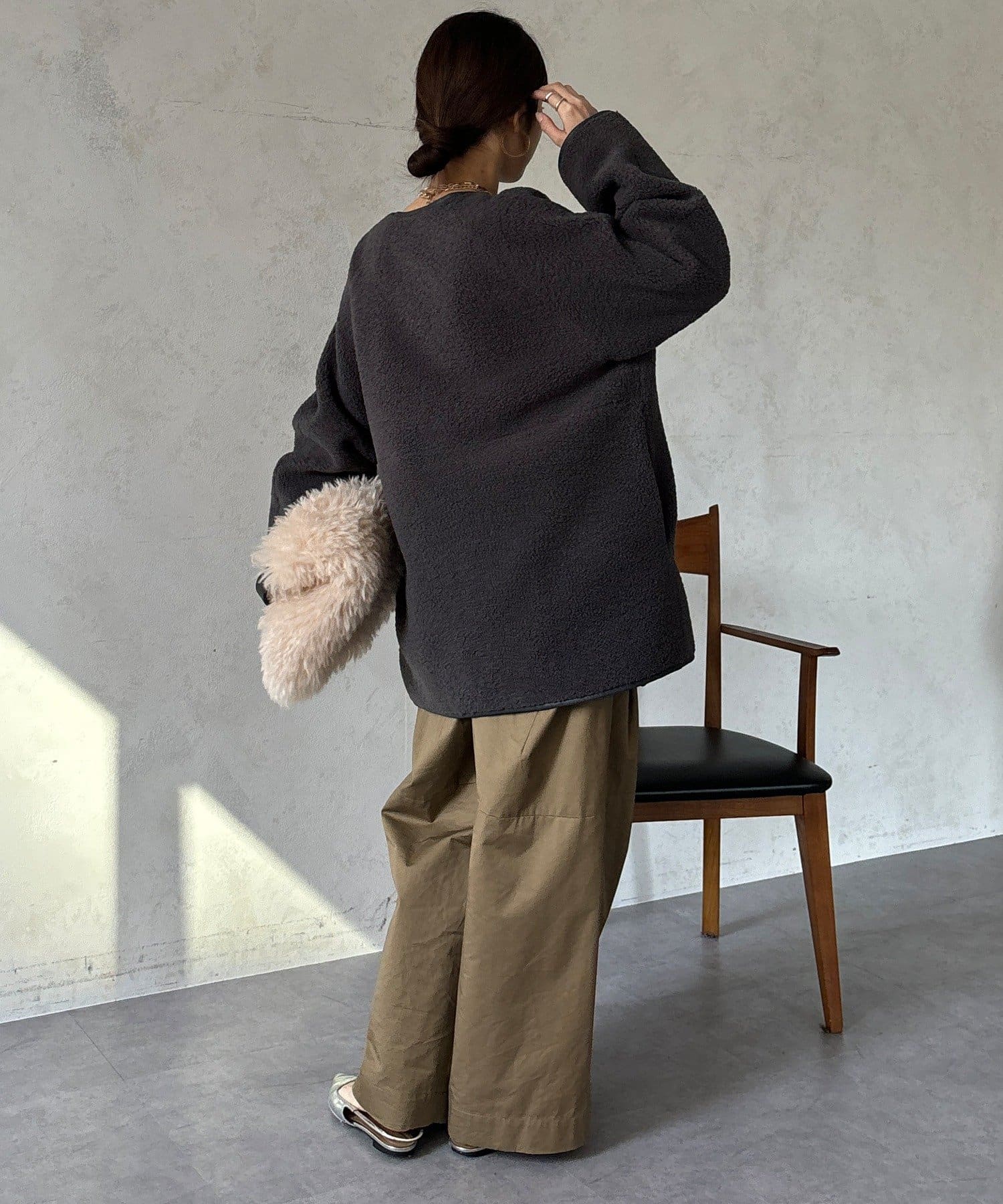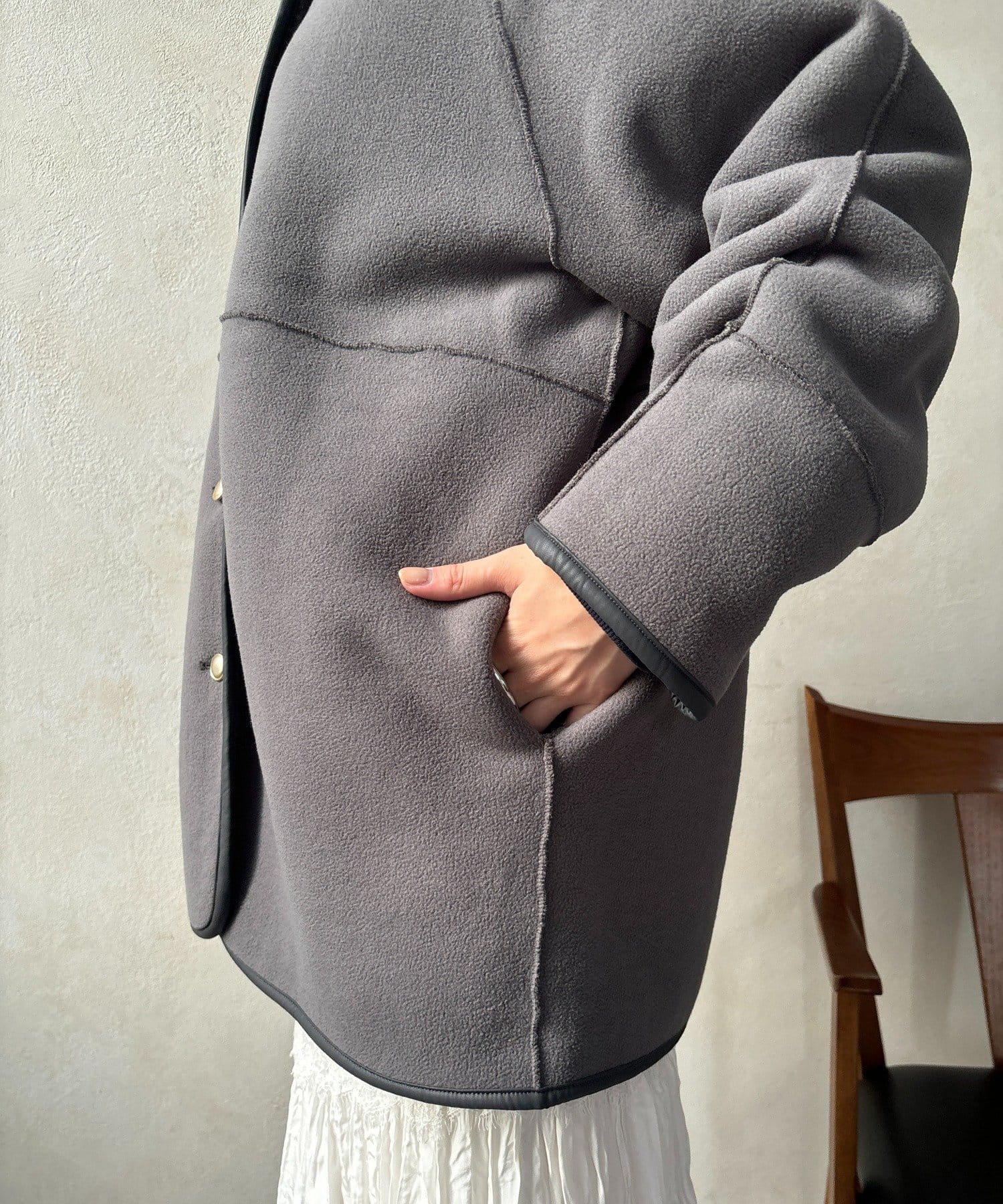 ノーカラーのすっきりとしたデザインのため、気軽に羽織っていただけます。