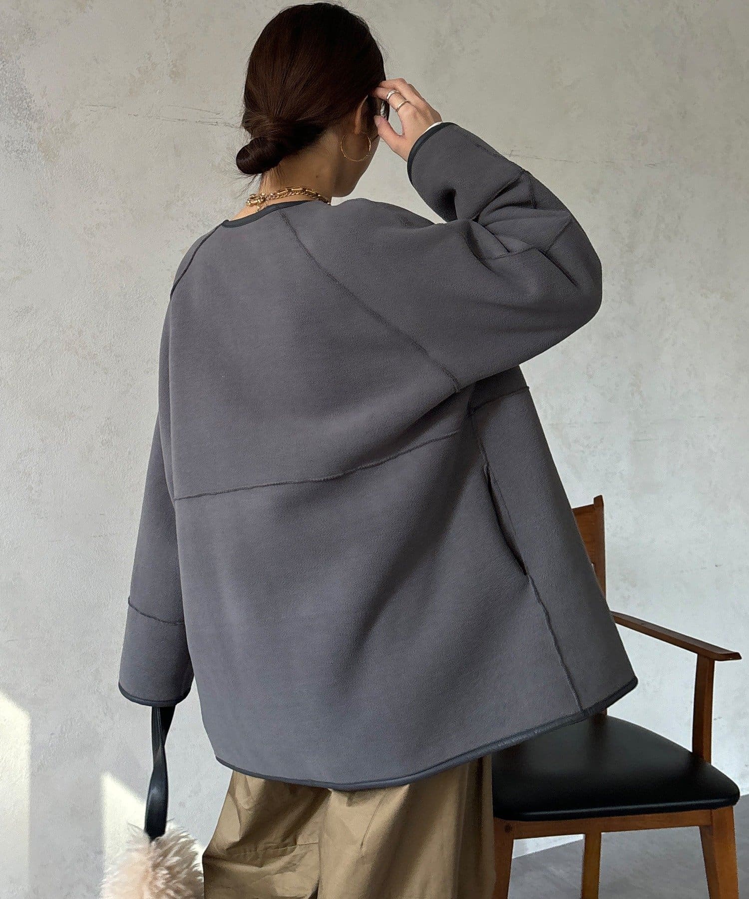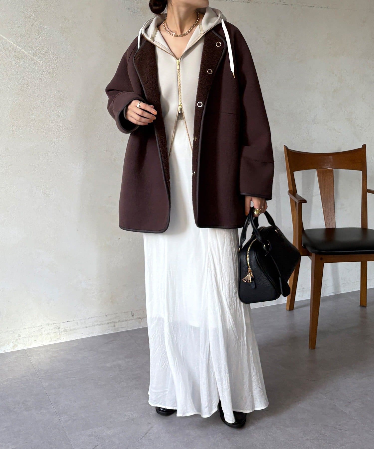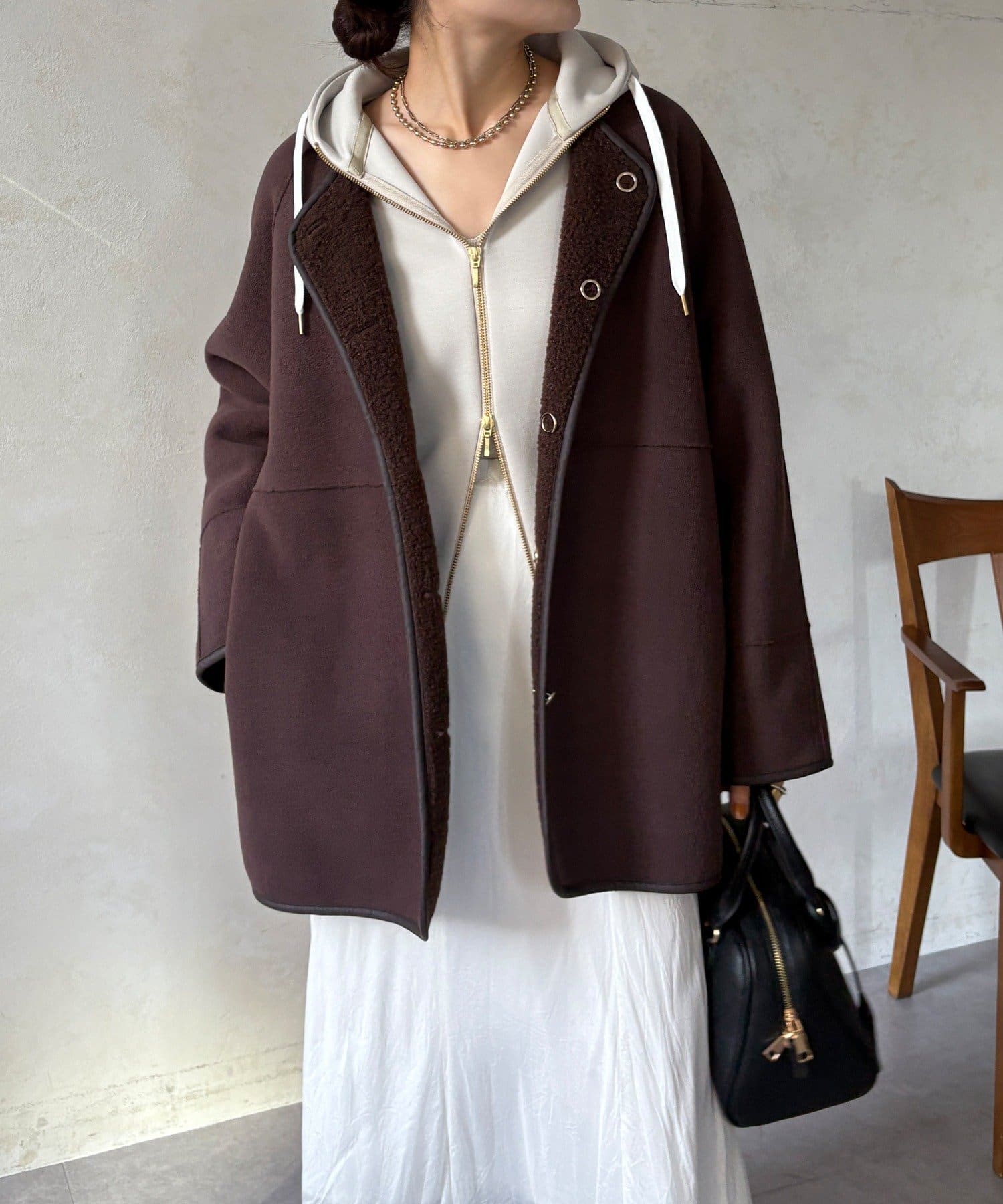 表裏どちらでも着られるリバーシブルのデザインで着回しを楽しめる1着。