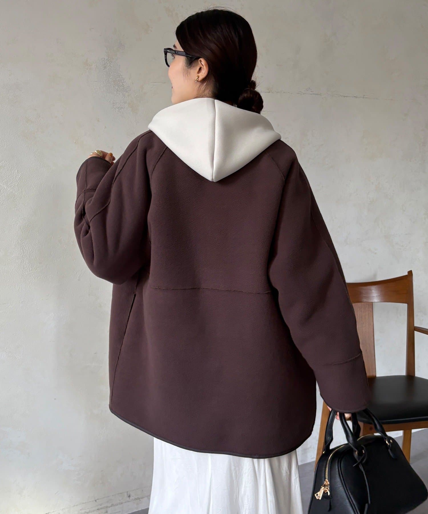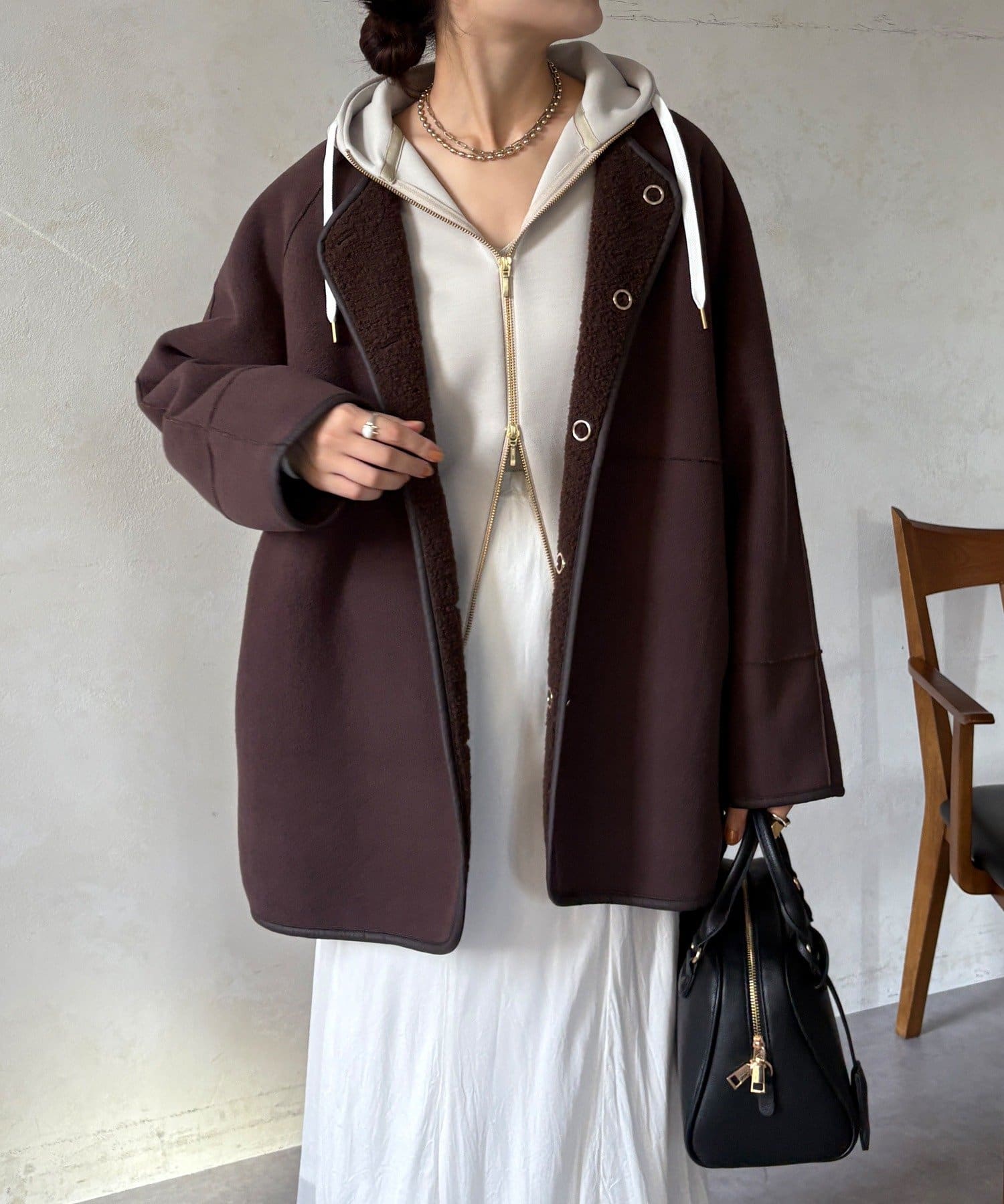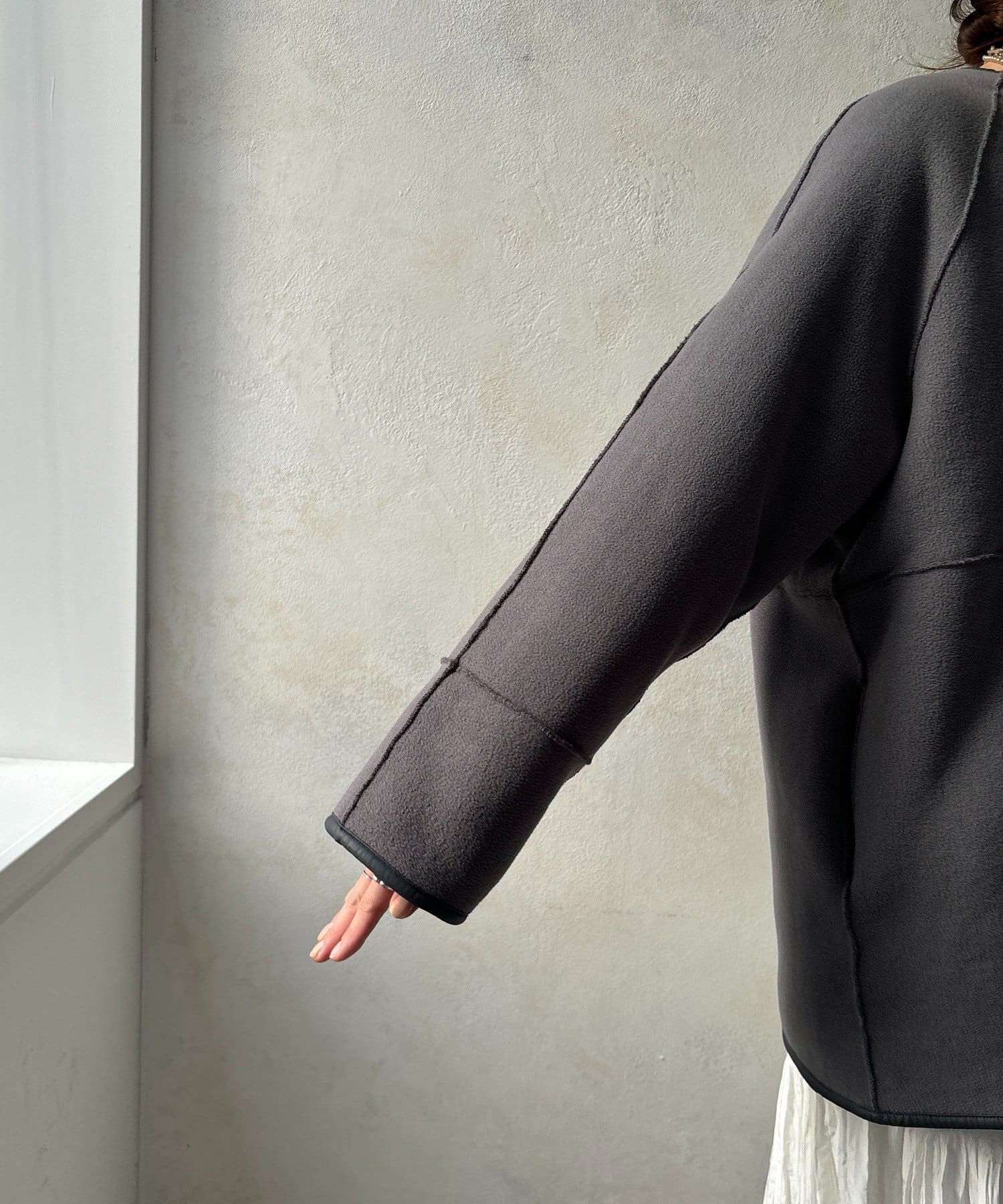 表裏どちらでも着られるリバーシブルのデザインで着回しを楽しめる1着。
