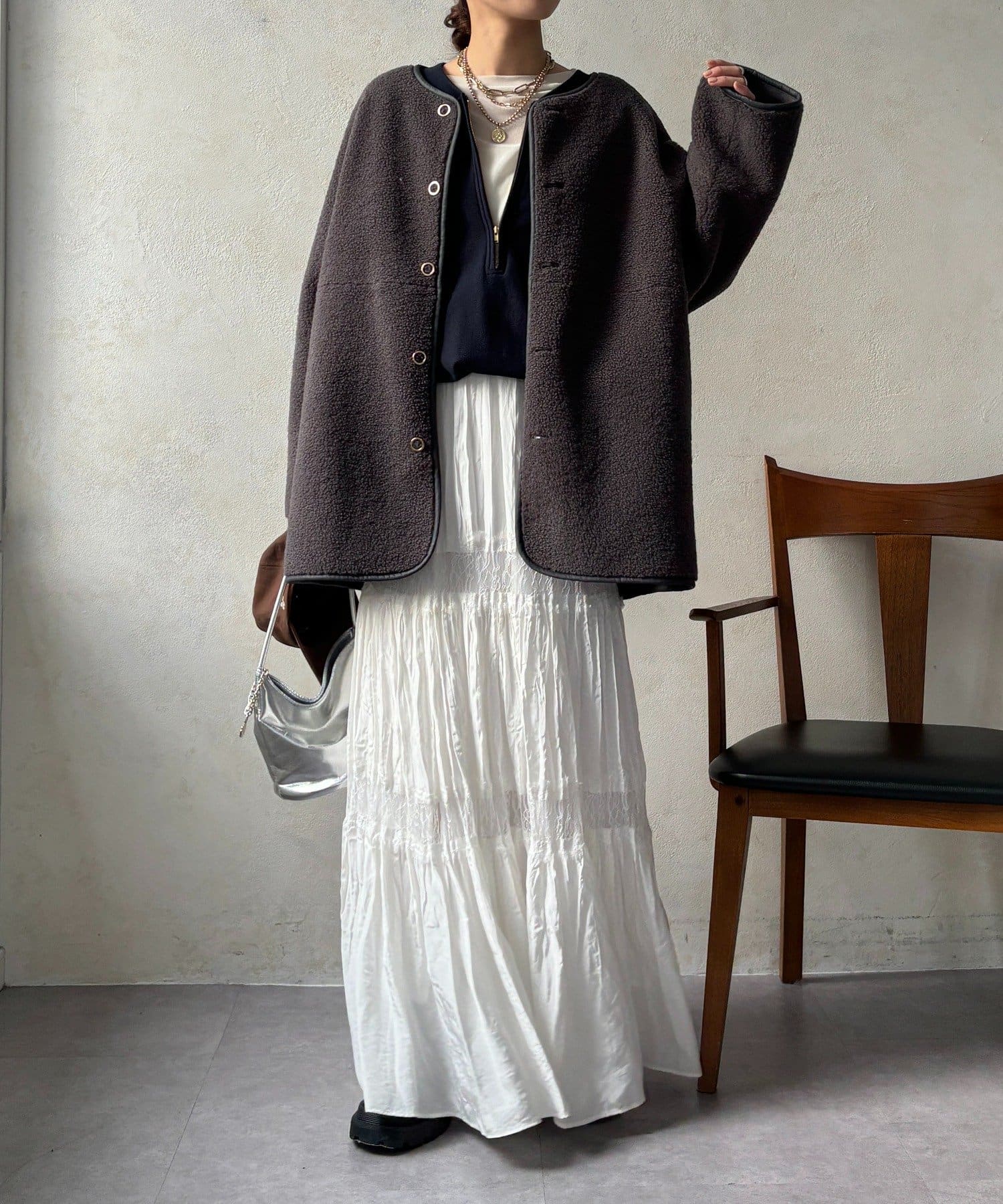 気になるヒップ周りもふんわりと覆ってくれるシルエットで、体型カバーにも期待大。