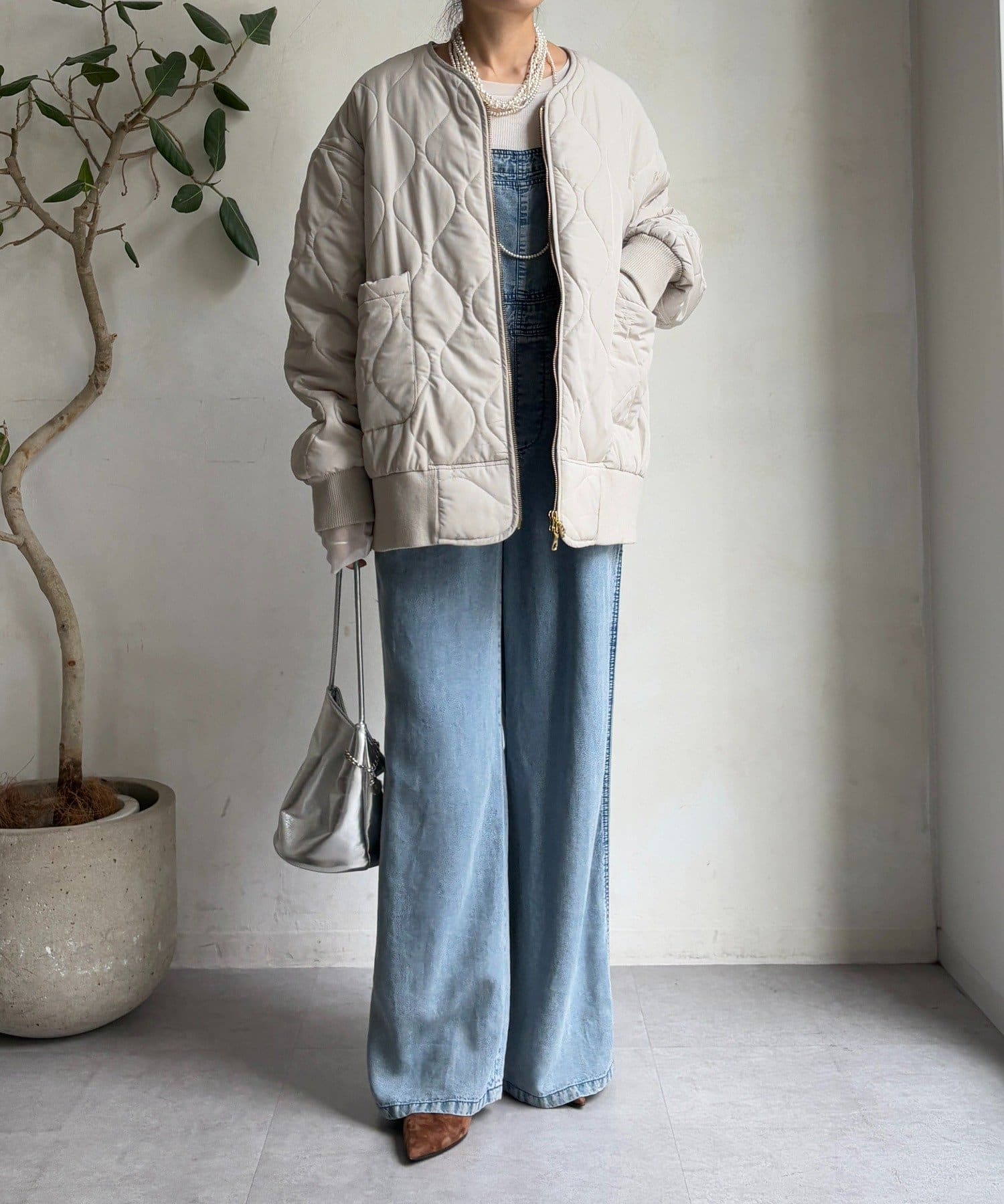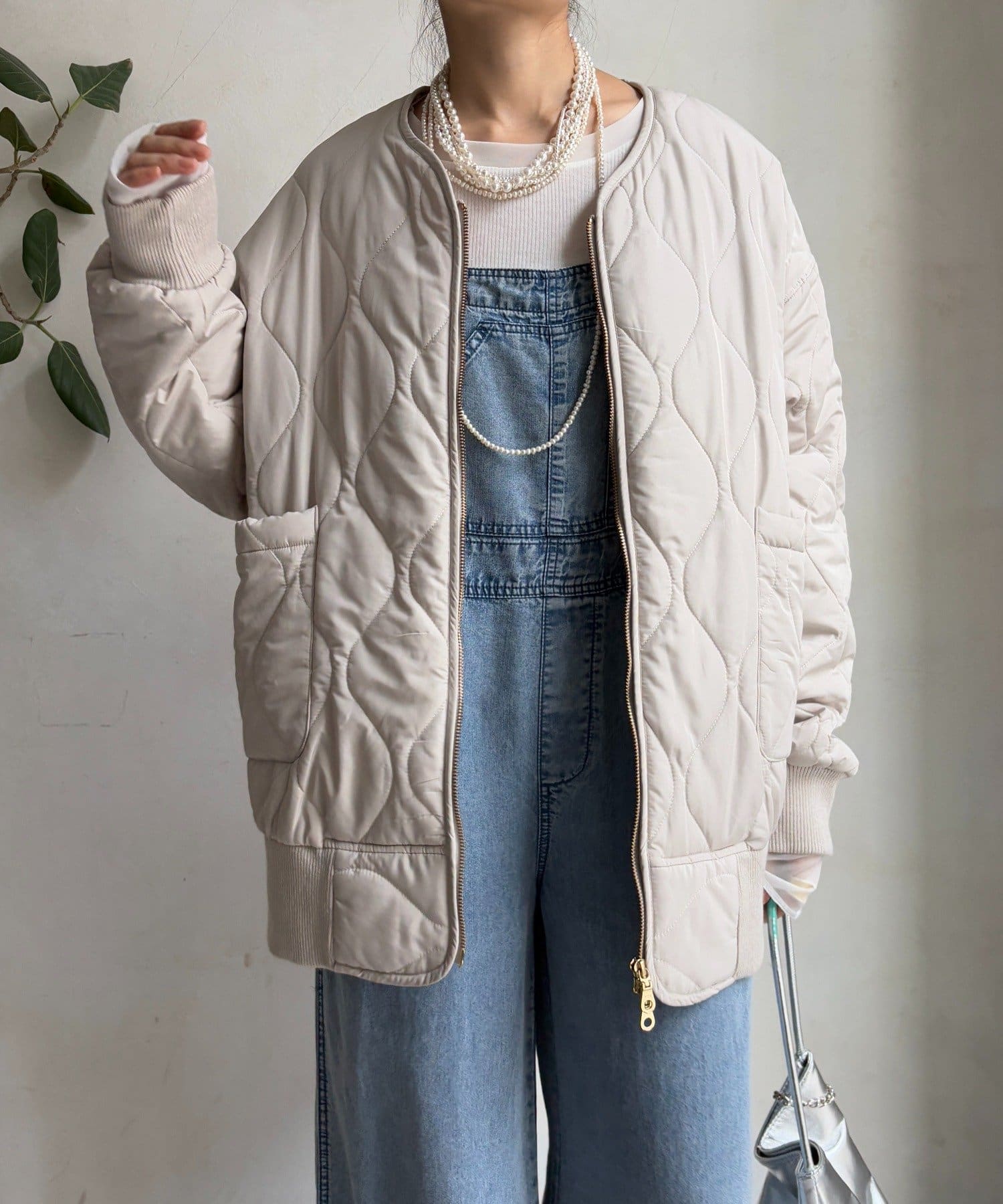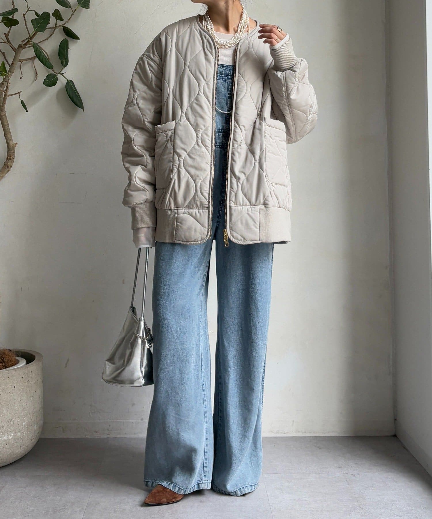 きれいめカジュアルなスタイリングが叶うキルティングアウター。