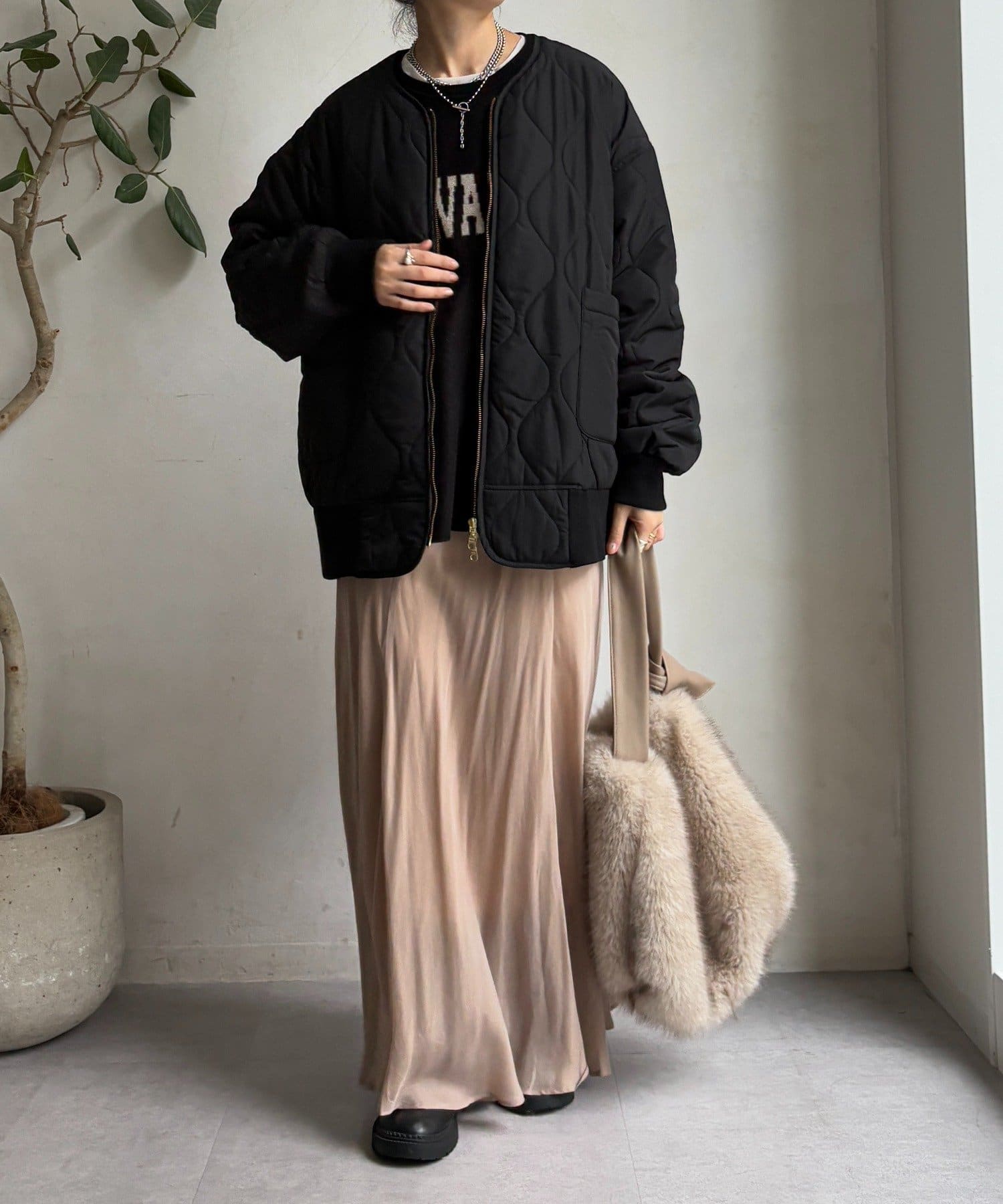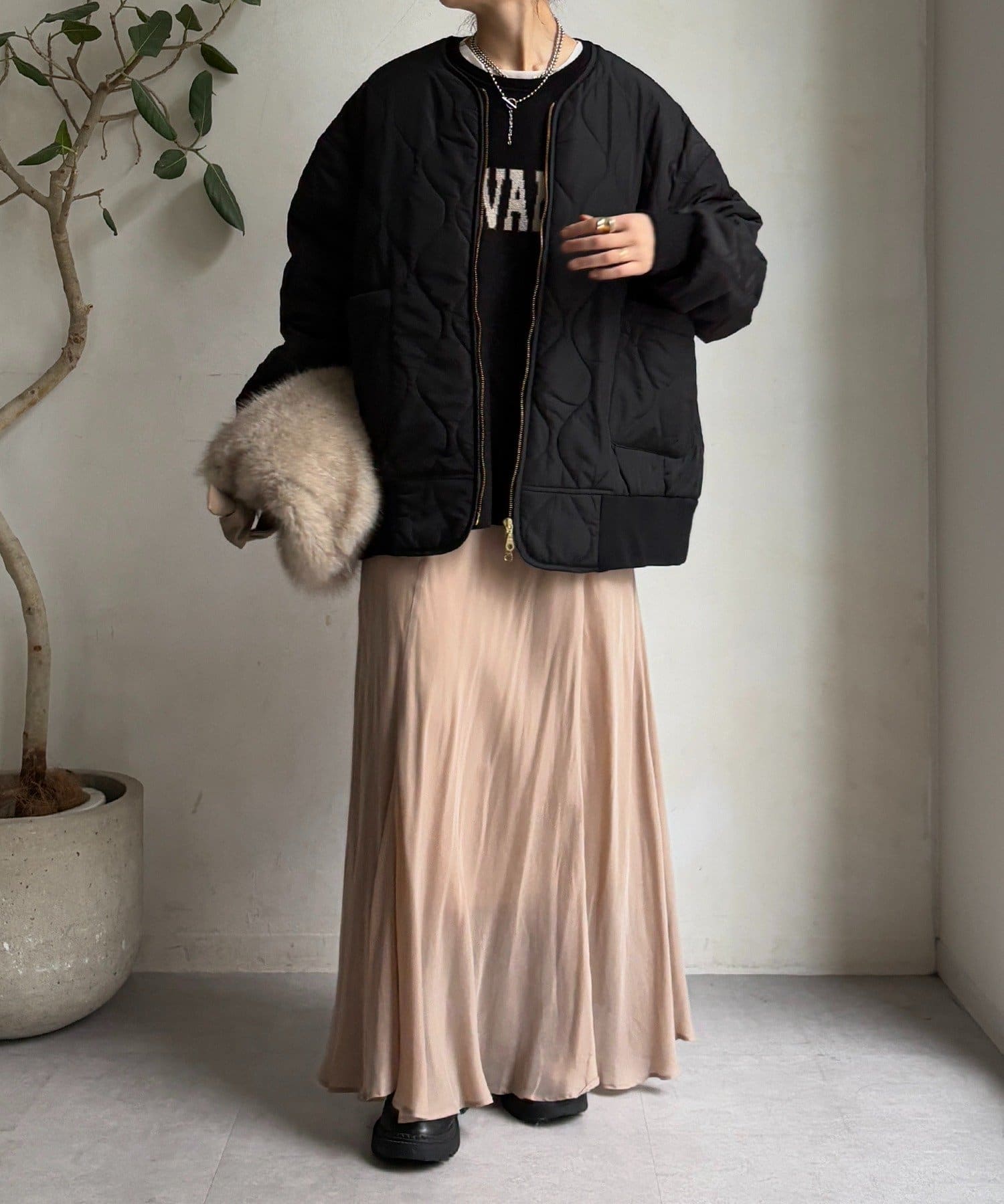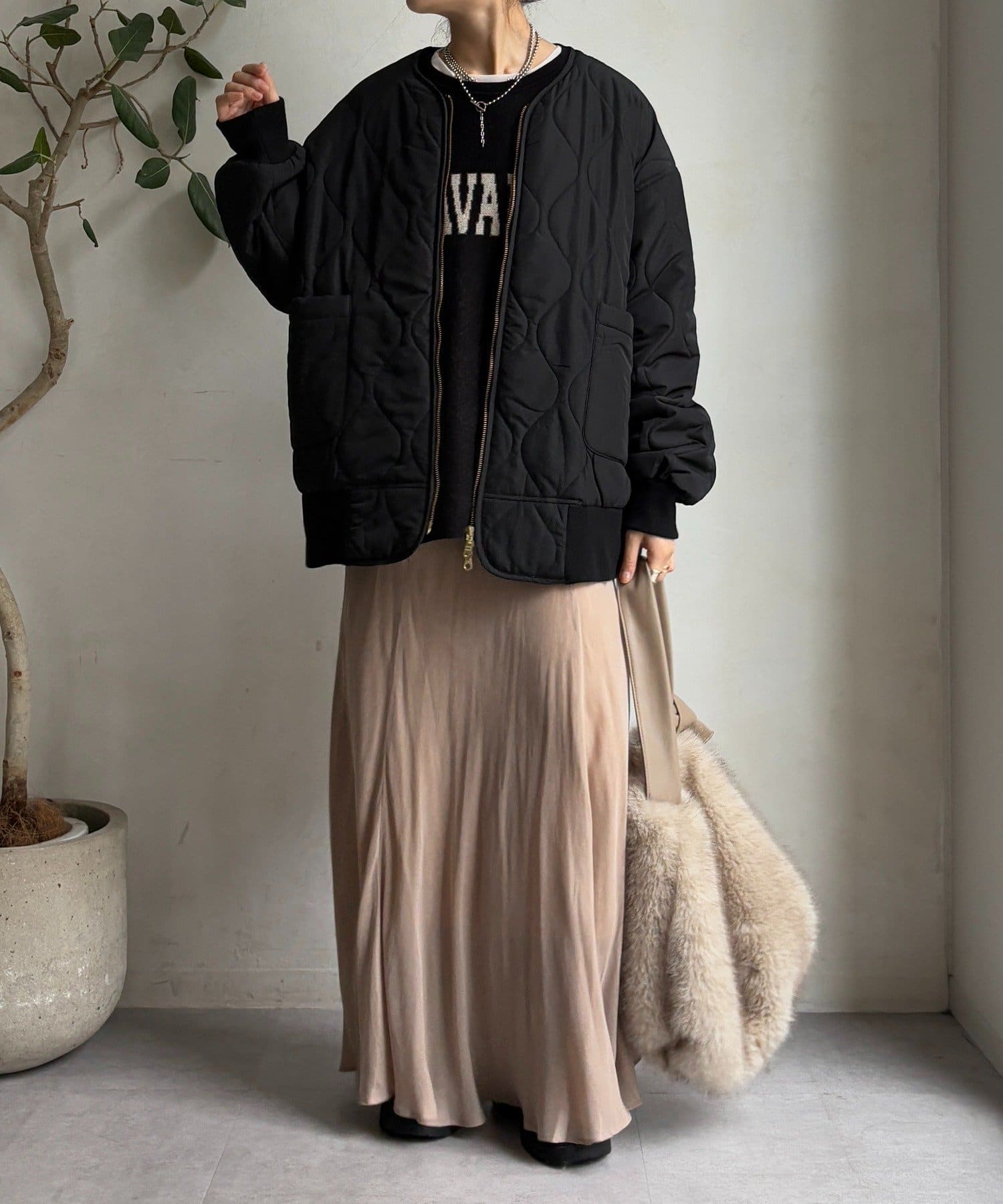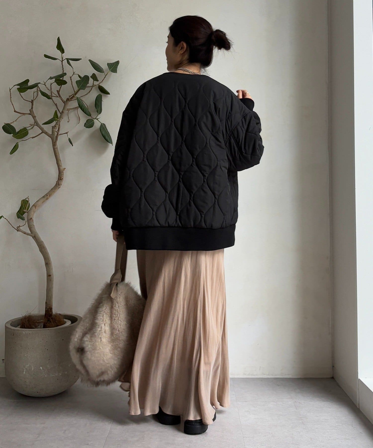 きれいめカジュアルなスタイリングが叶うキルティングアウター。