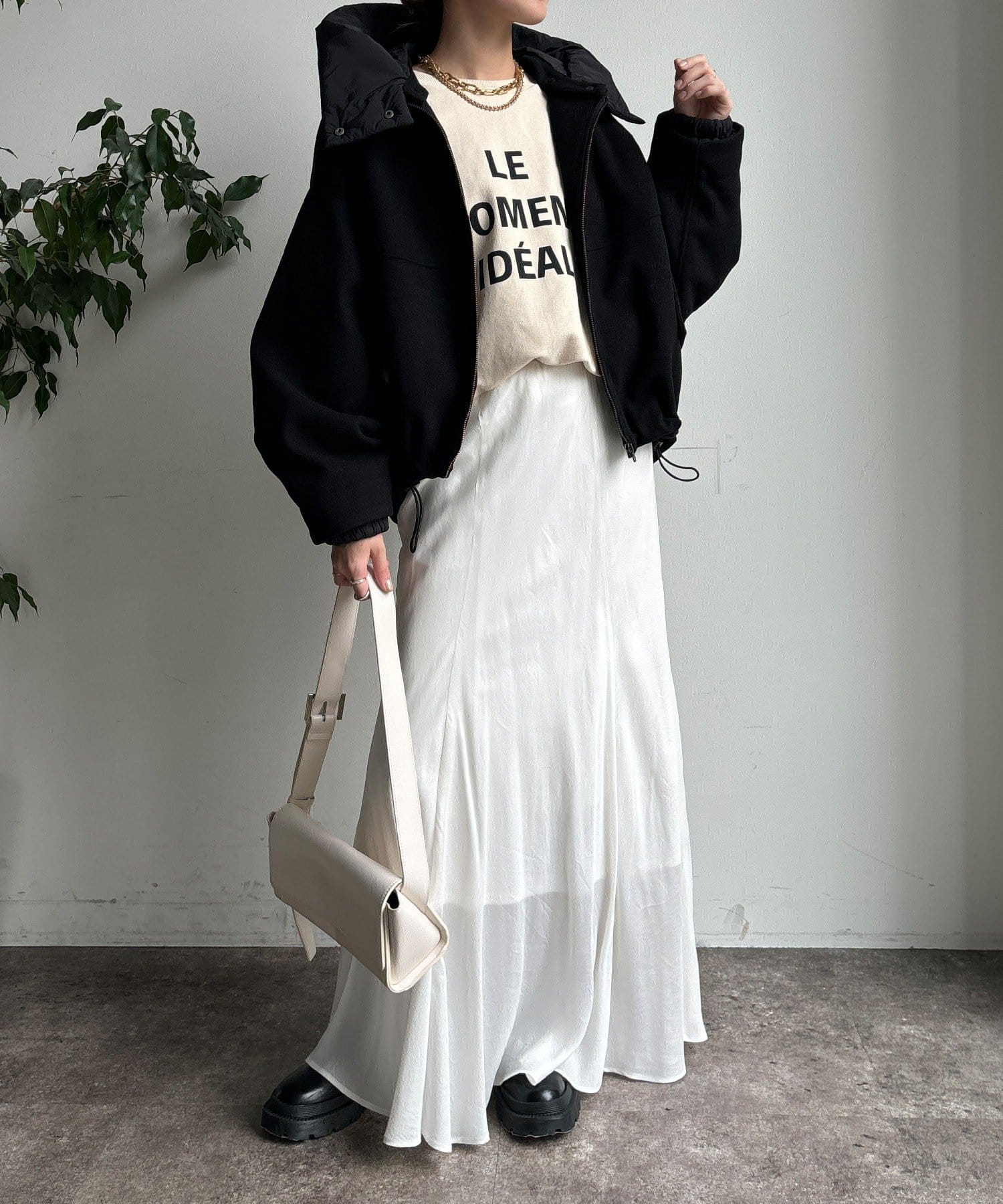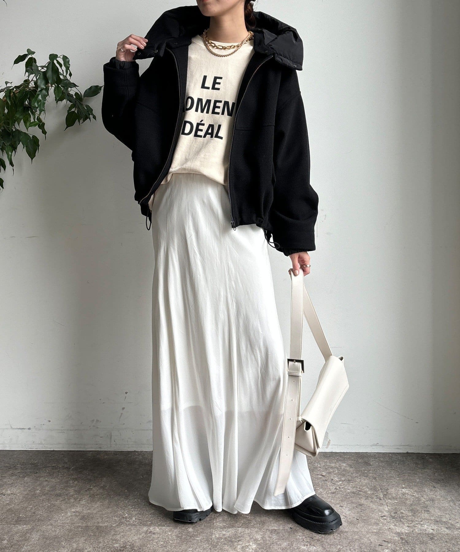 裾にはドローストリングが付いており、シルエットを調整できます。