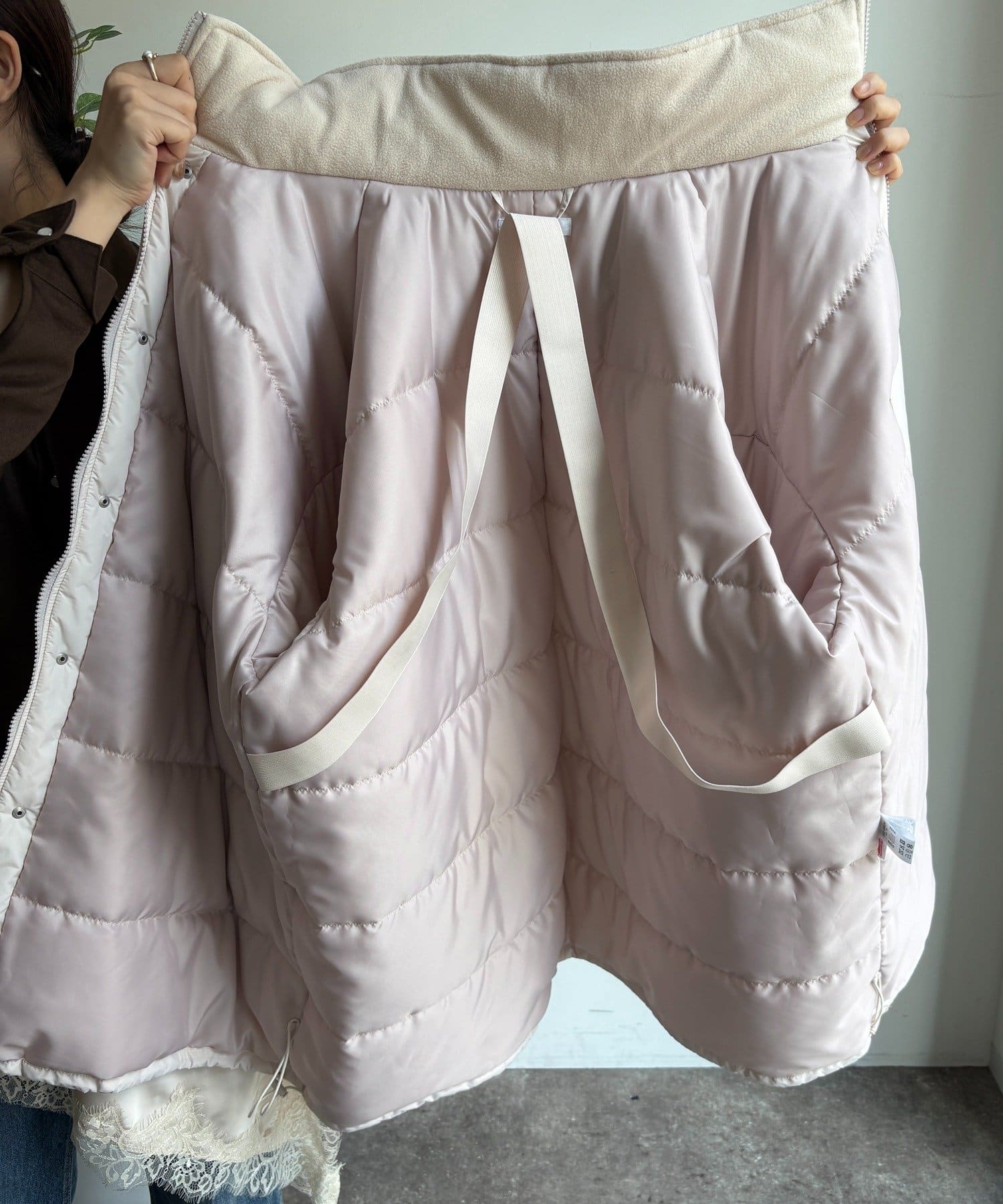 フロントのジッパーとスナップボタン、大きめのポケットなど機能性もデザイン性も両立!