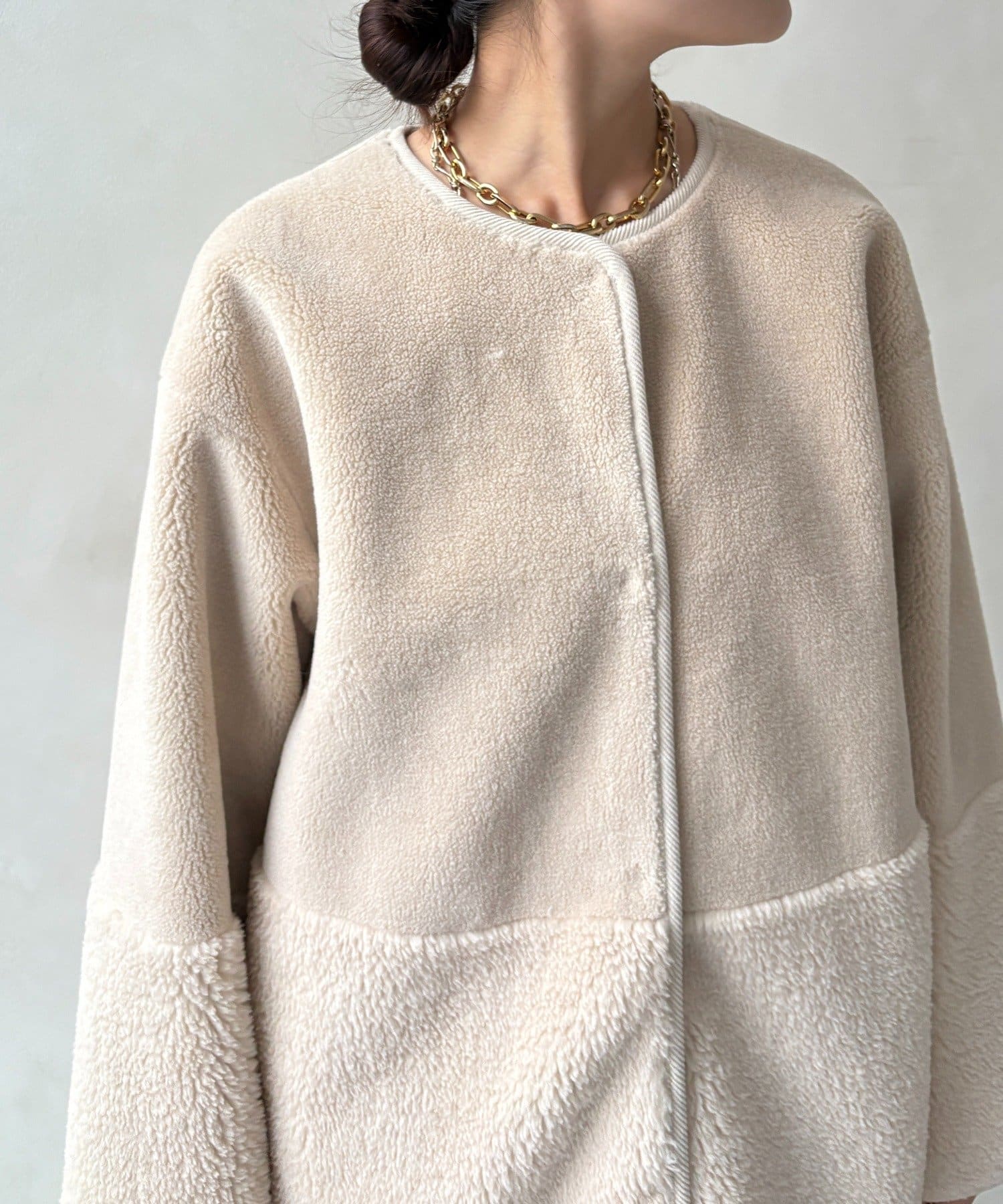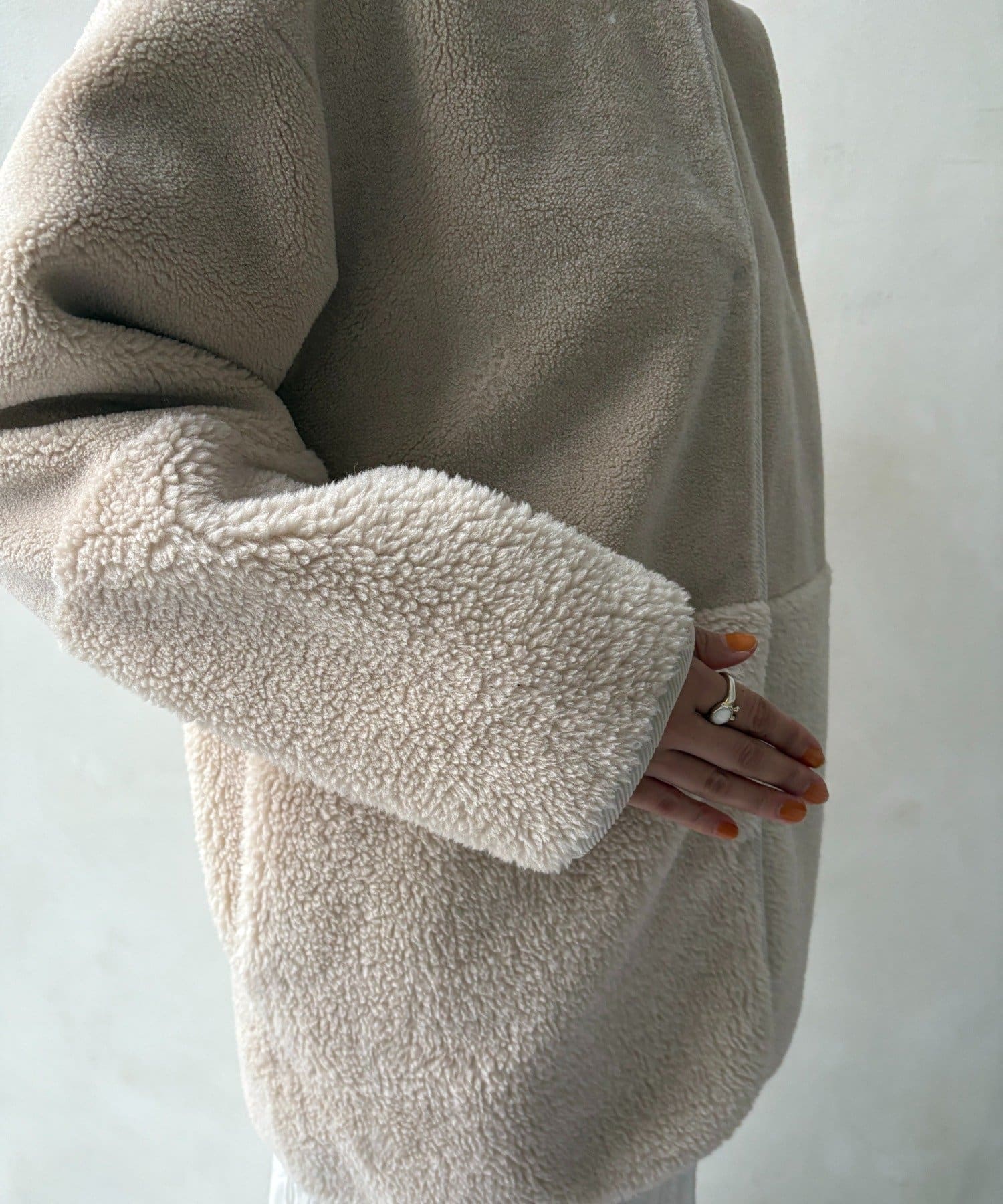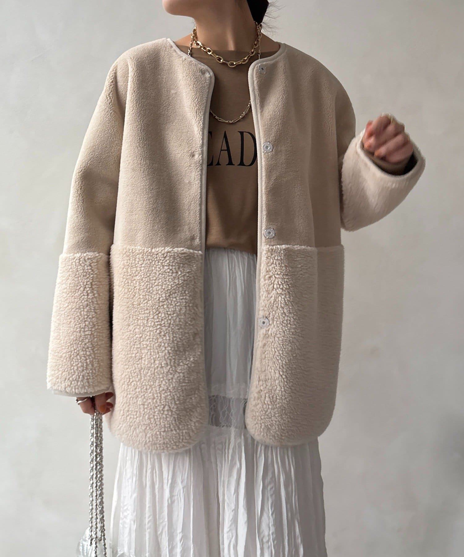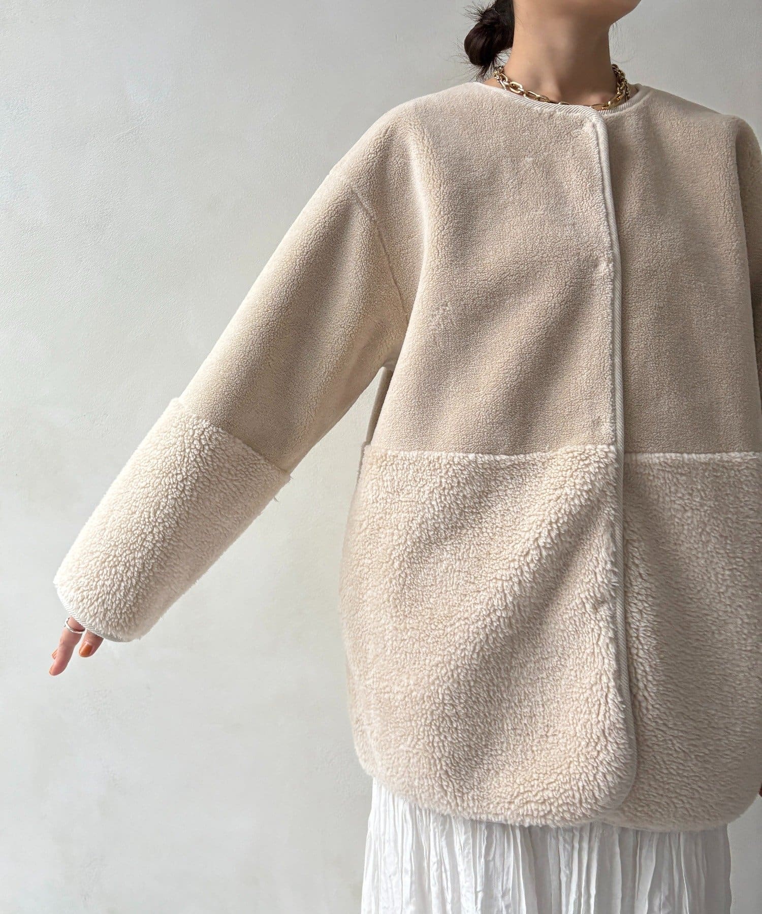 もこもこの肌触りが心地よい、リバーシブルフェイクムートンコートが登場。