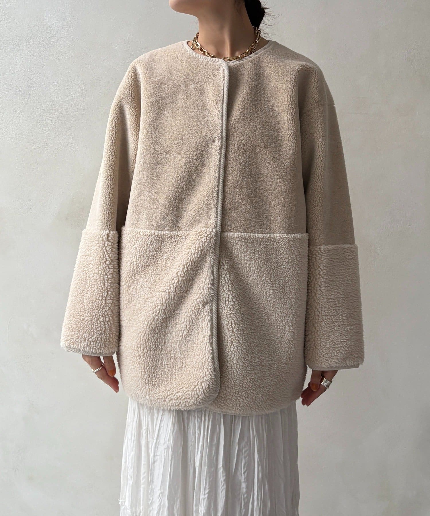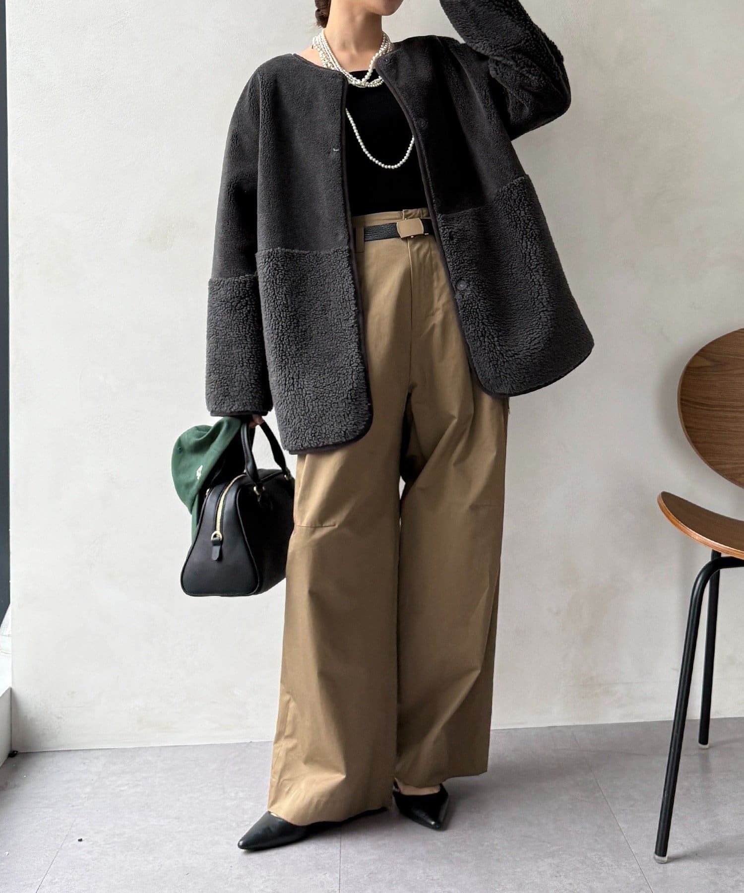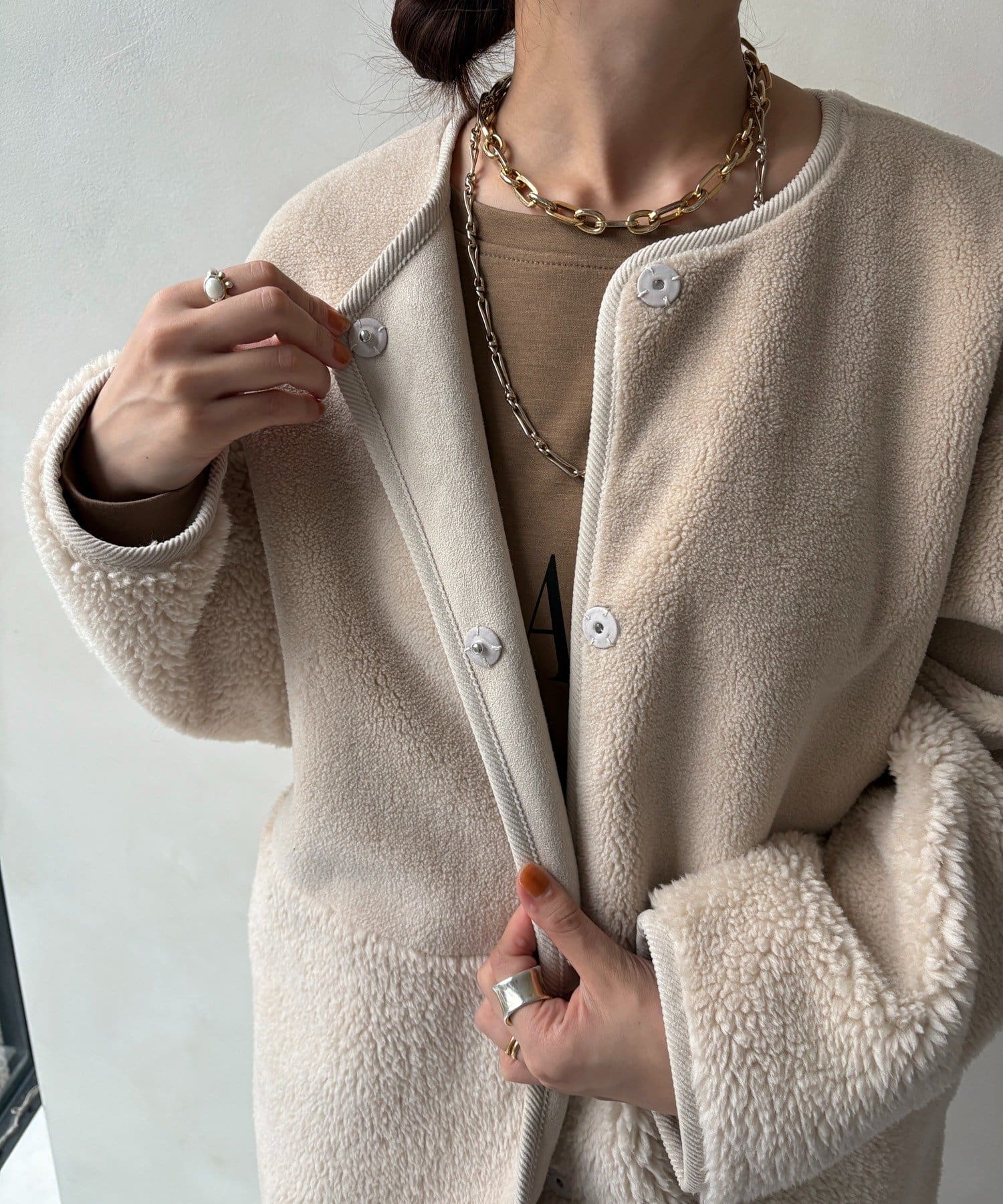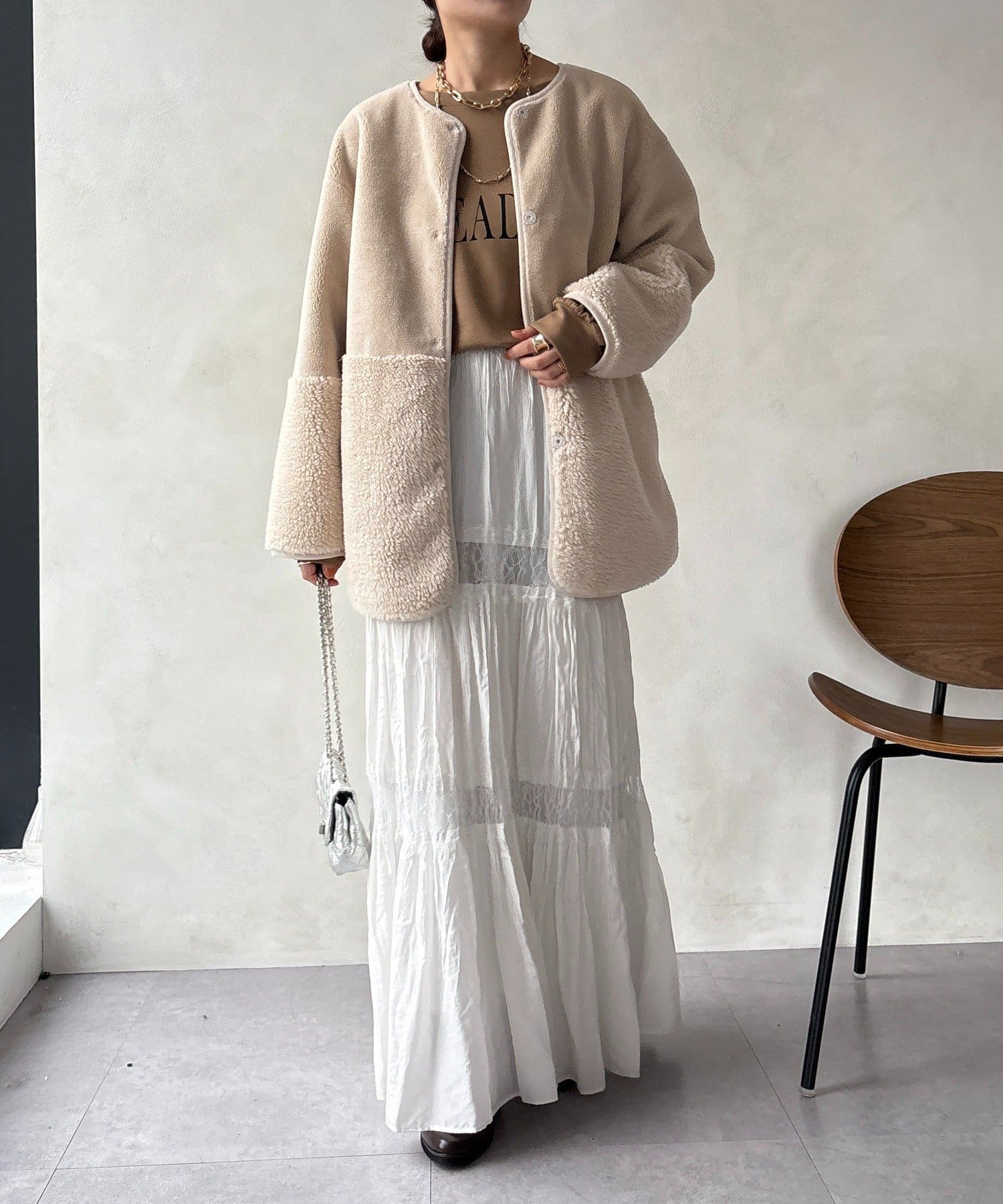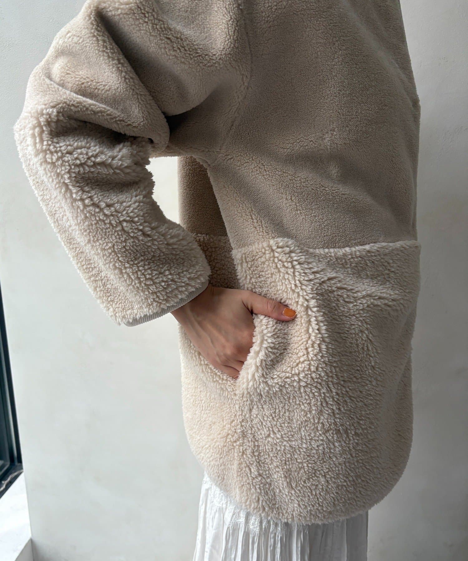 もこもこの肌触りが心地よい、リバーシブルフェイクムートンコートが登場。