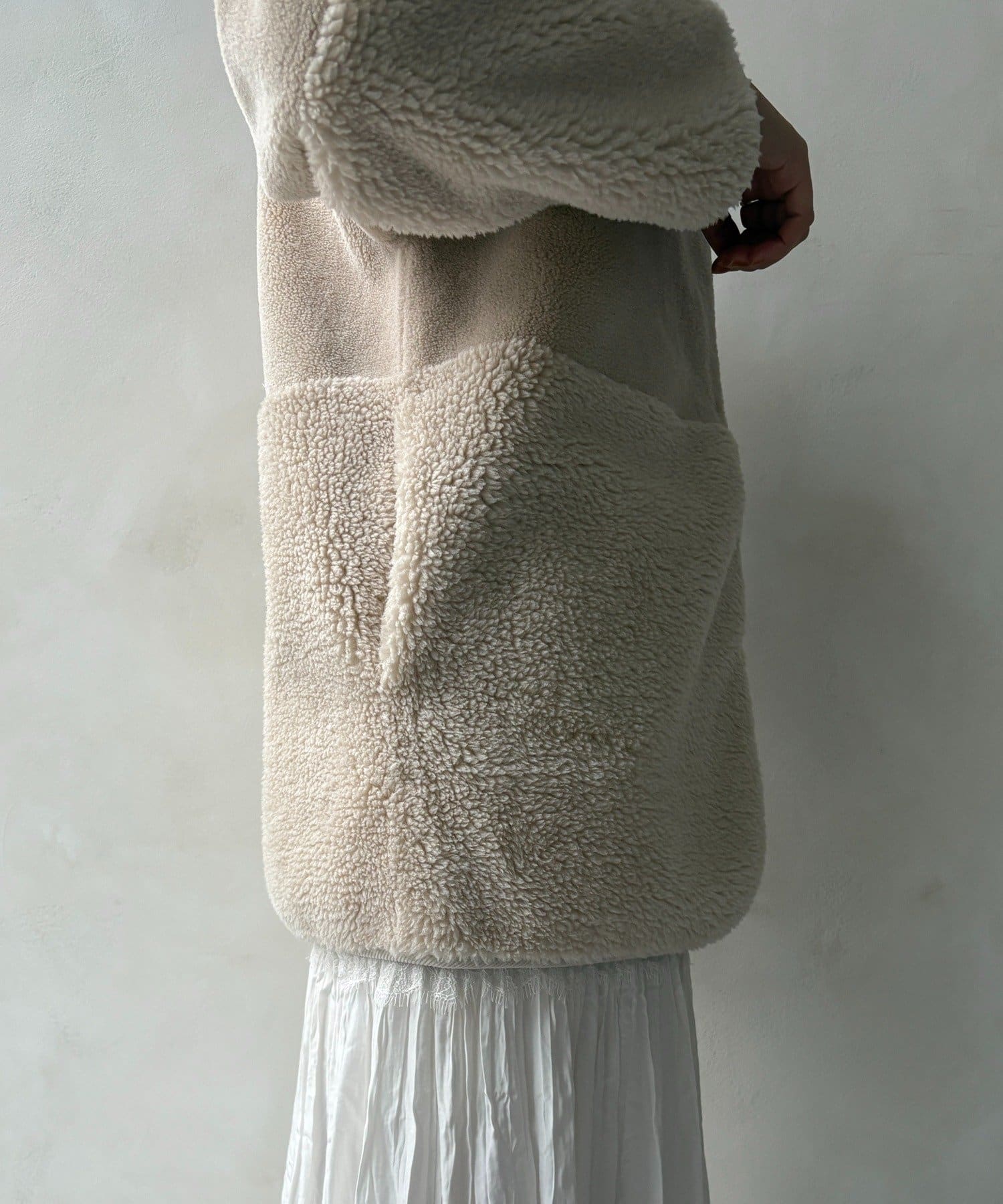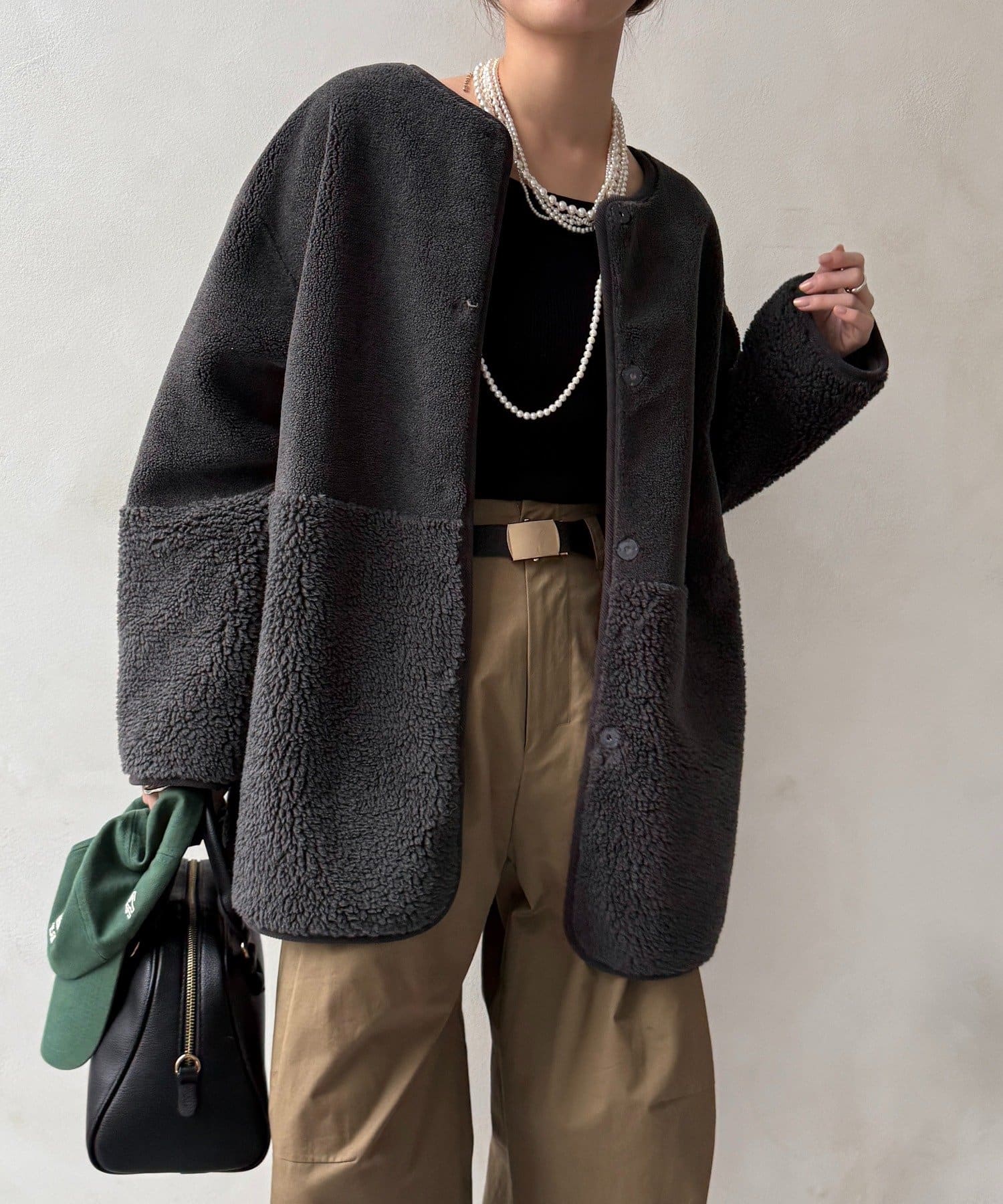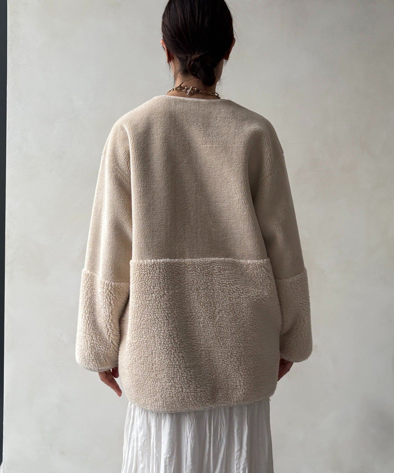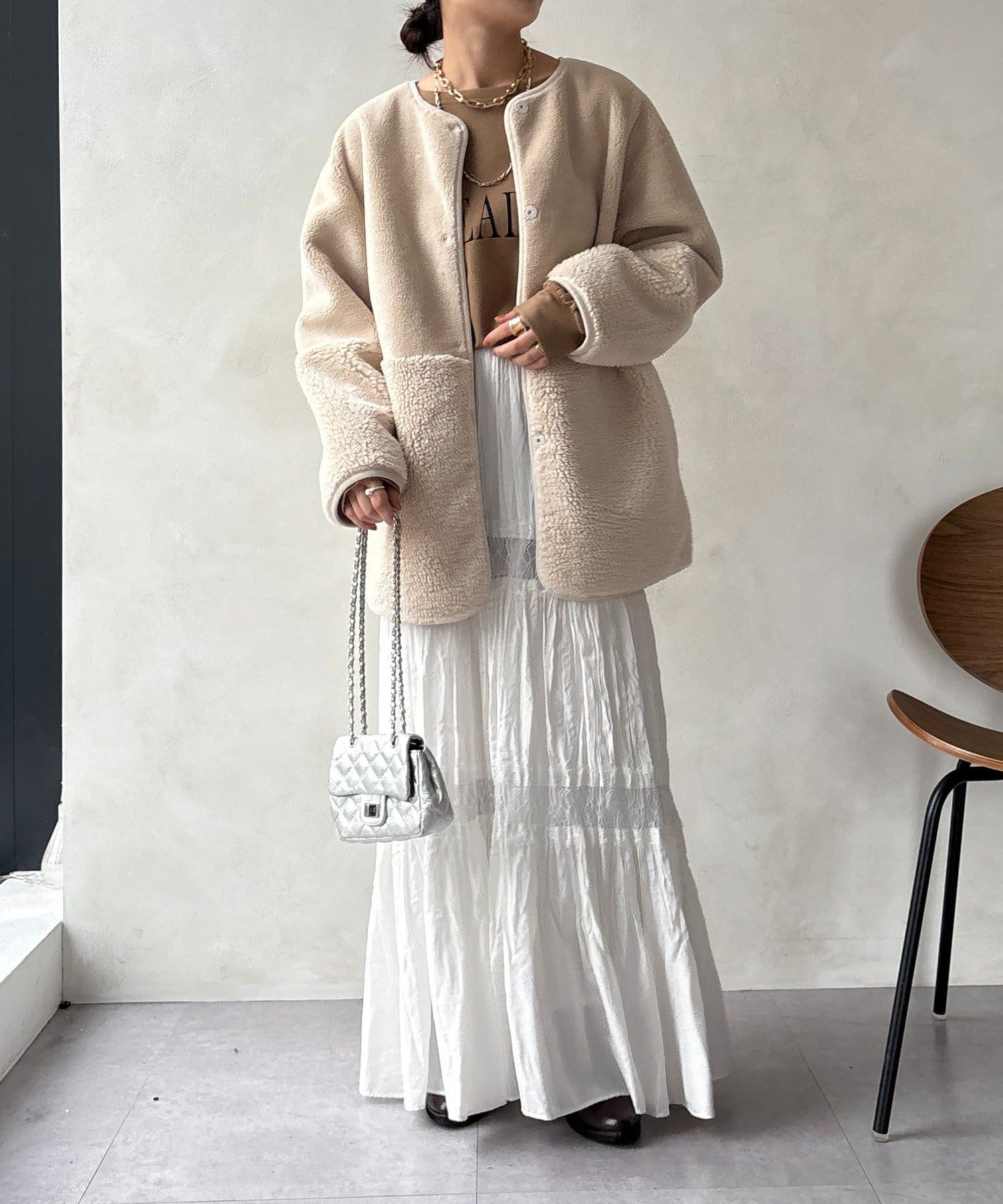 もこもこの肌触りが心地よい、リバーシブルフェイクムートンコートが登場。