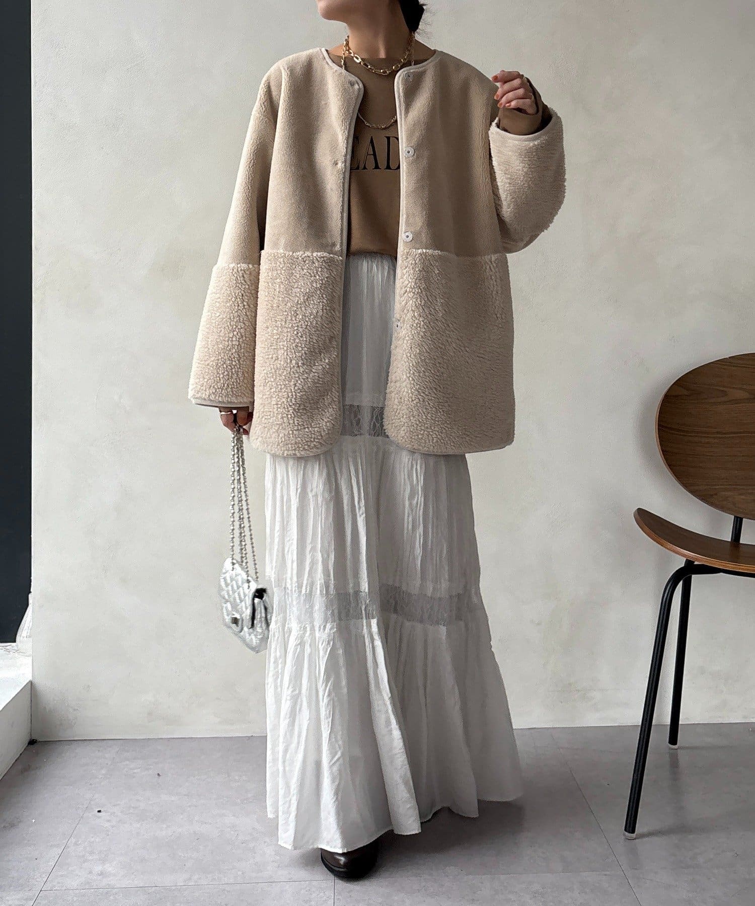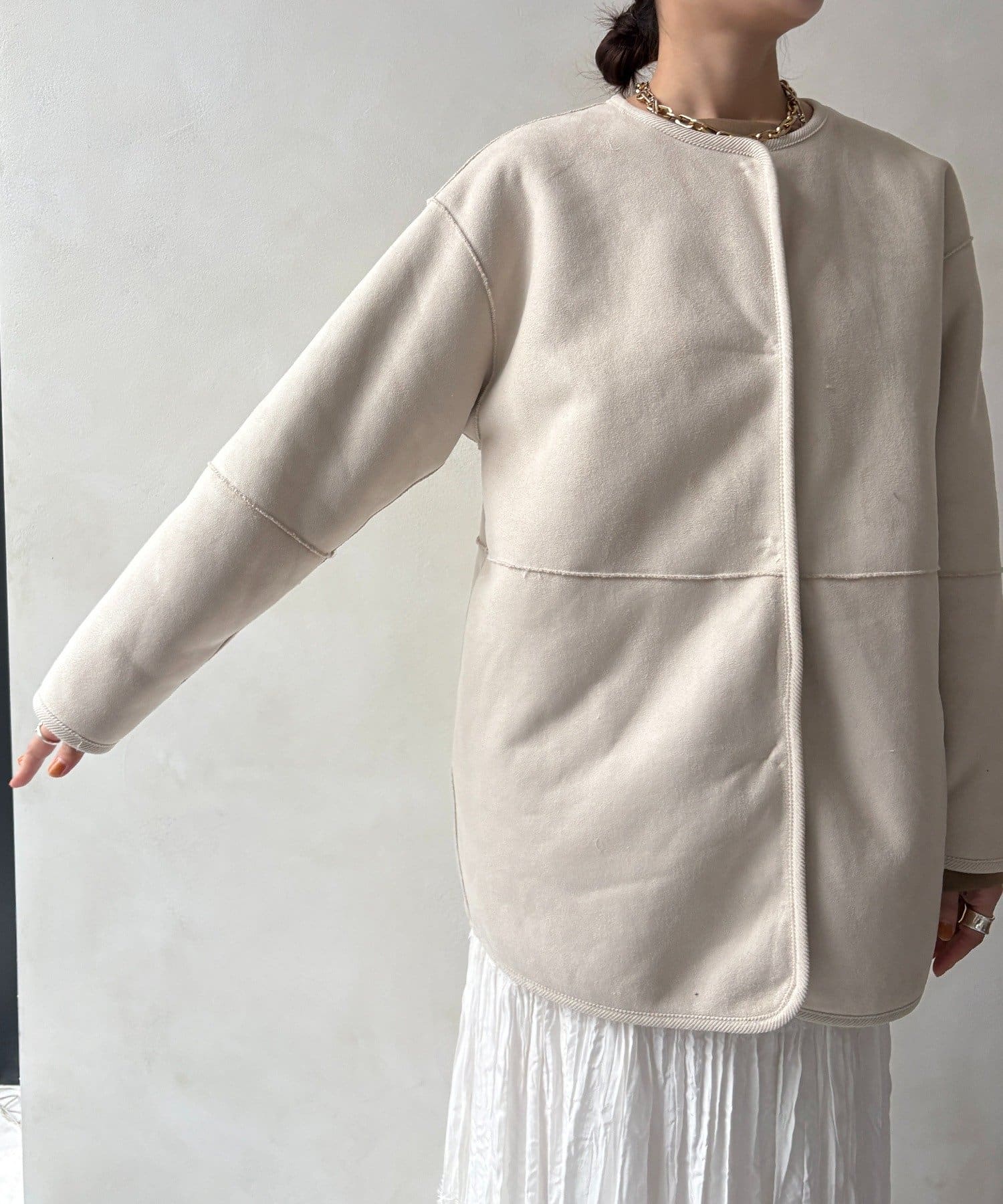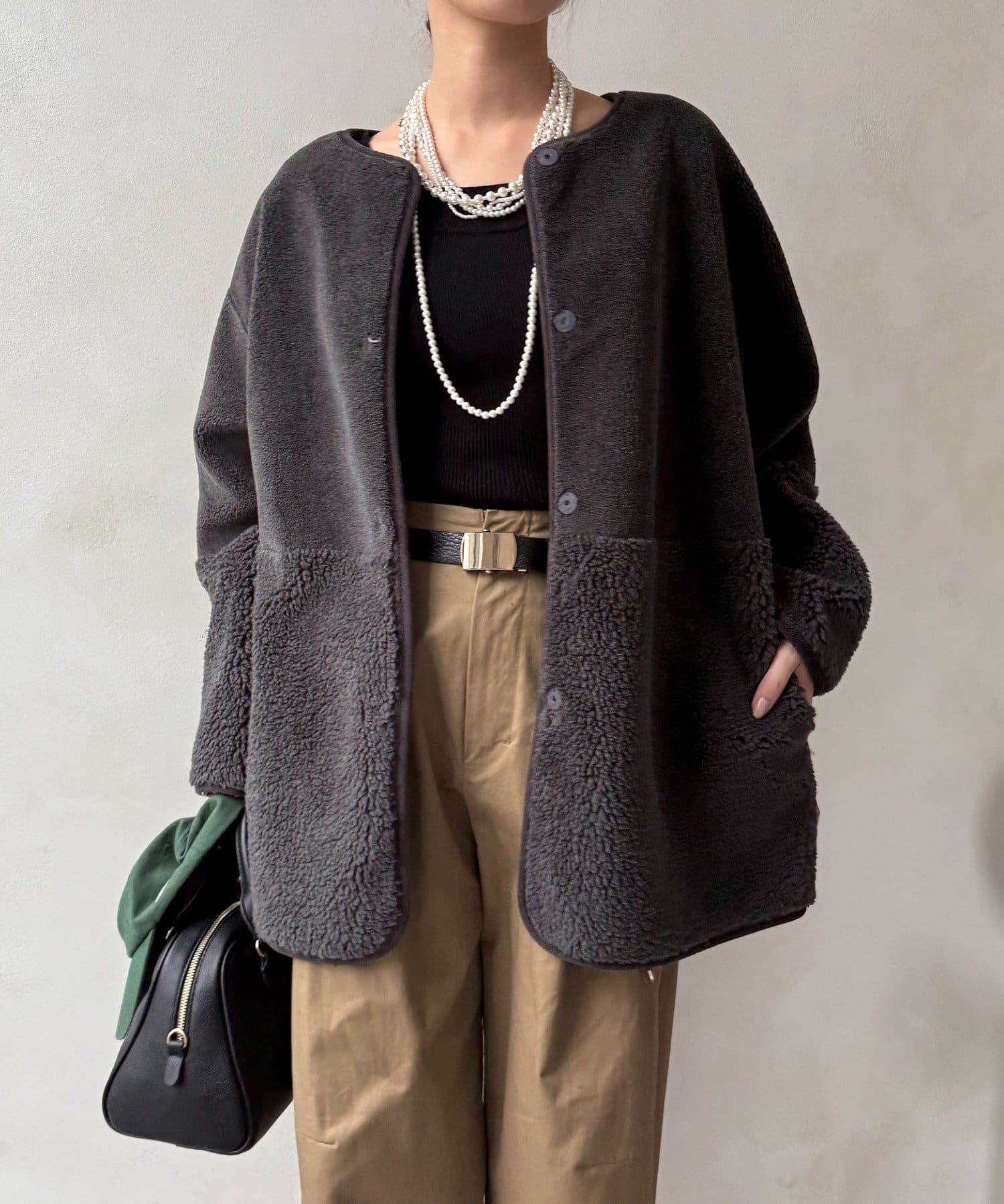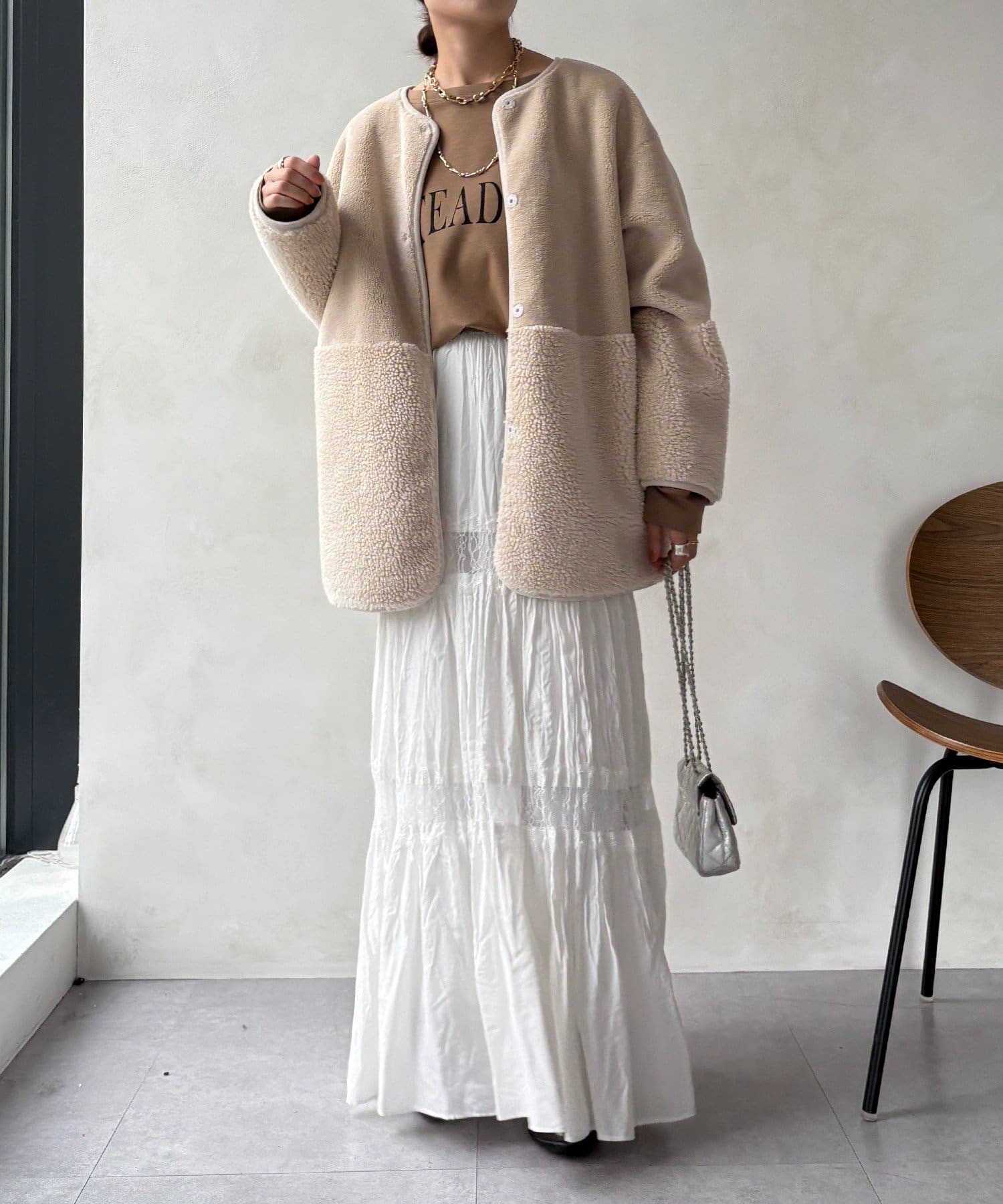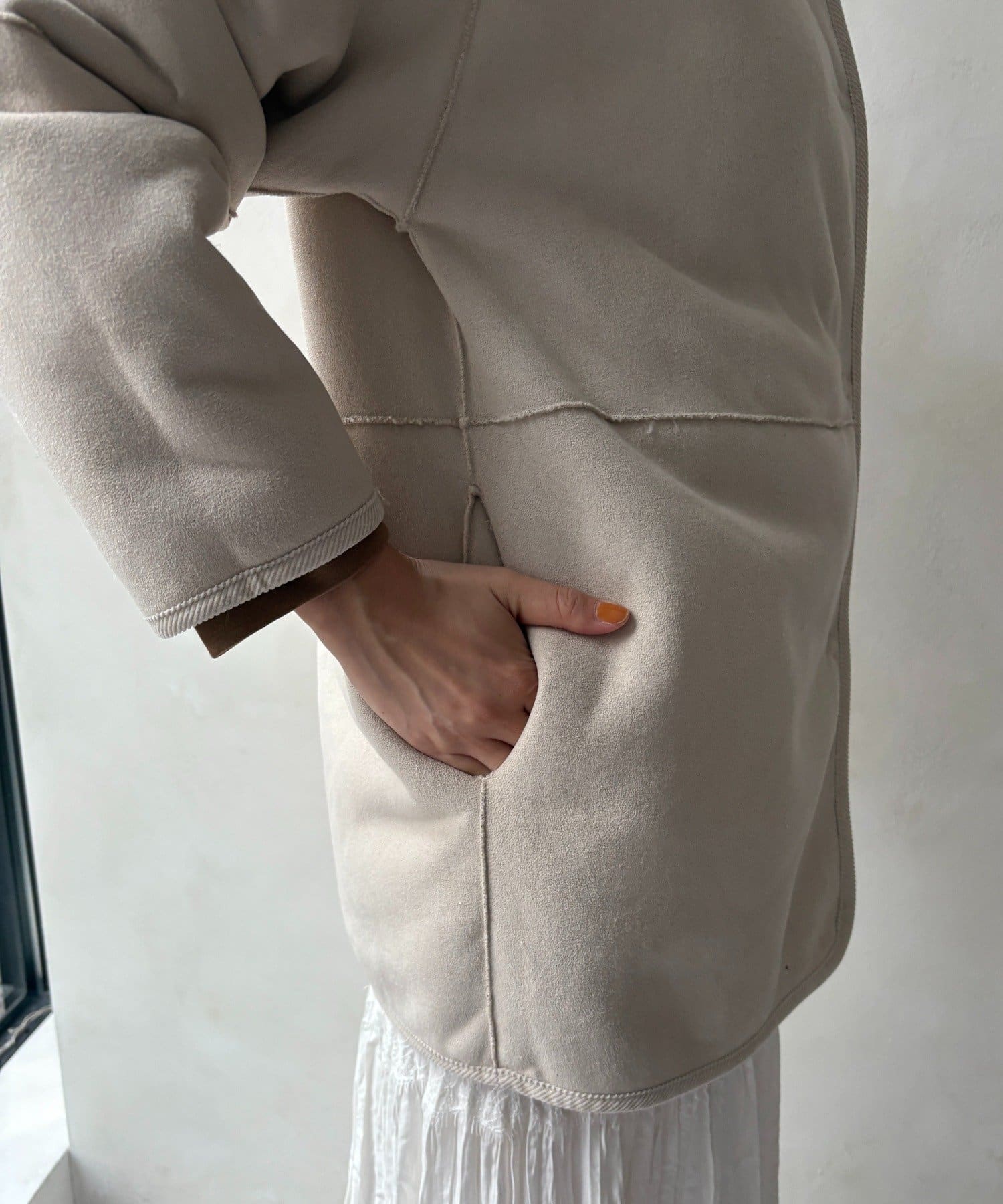 もこもこの肌触りが心地よい、リバーシブルフェイクムートンコートが登場。