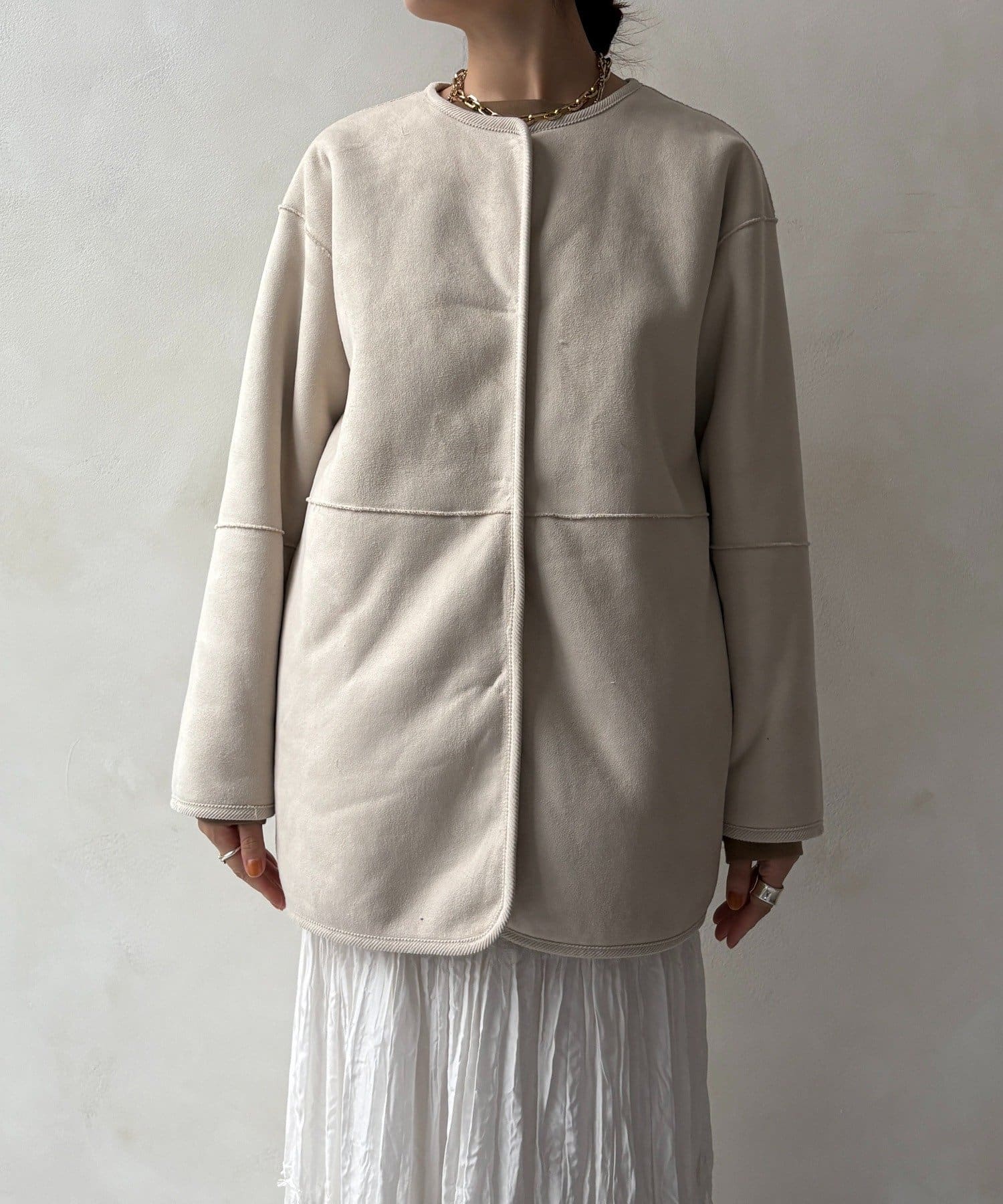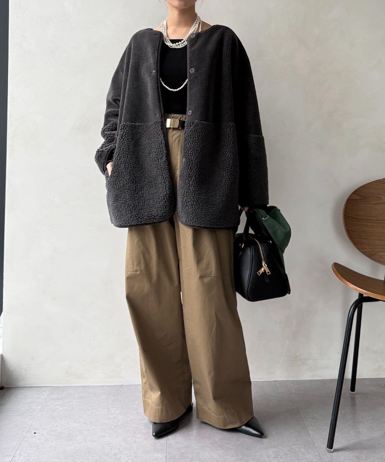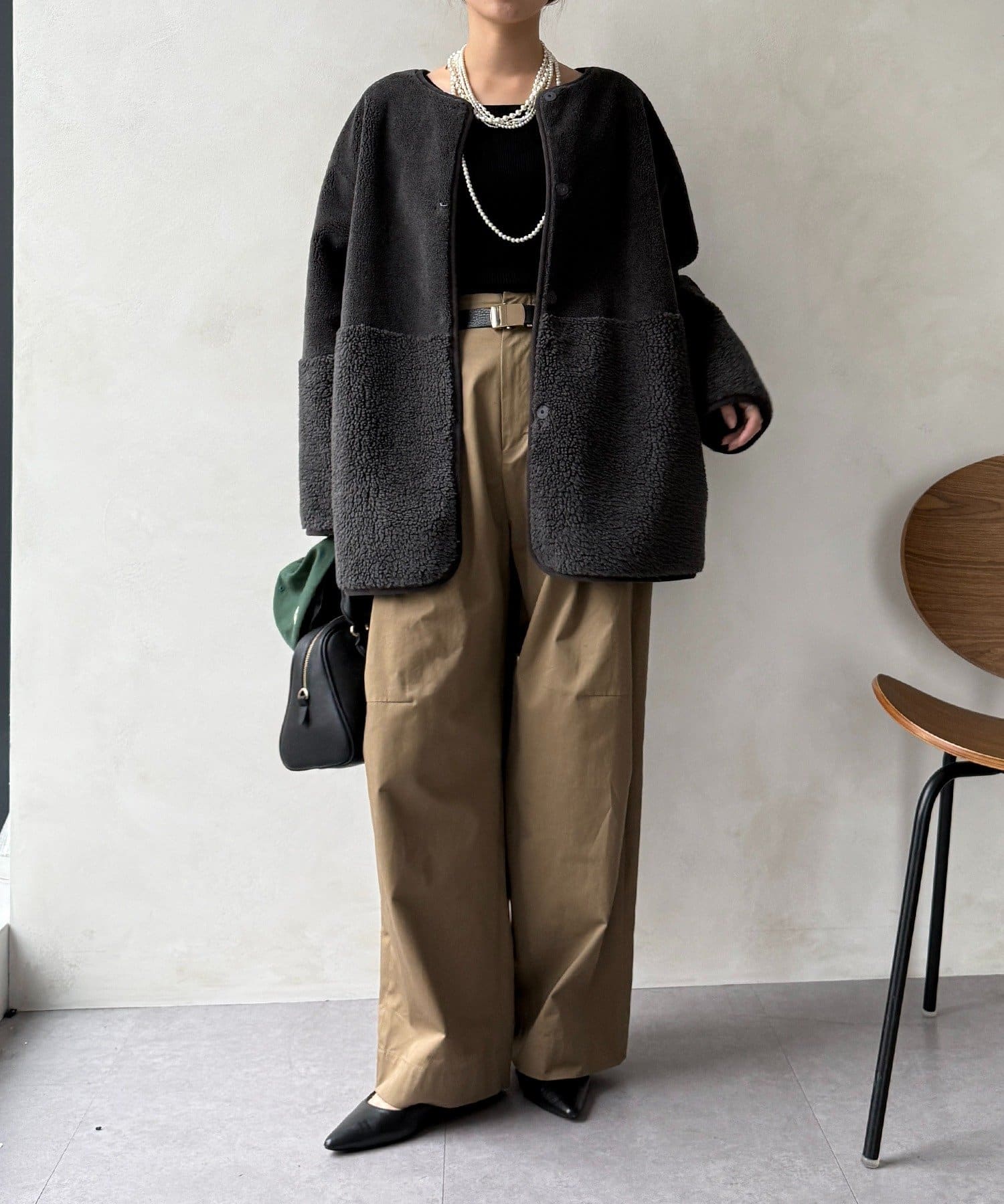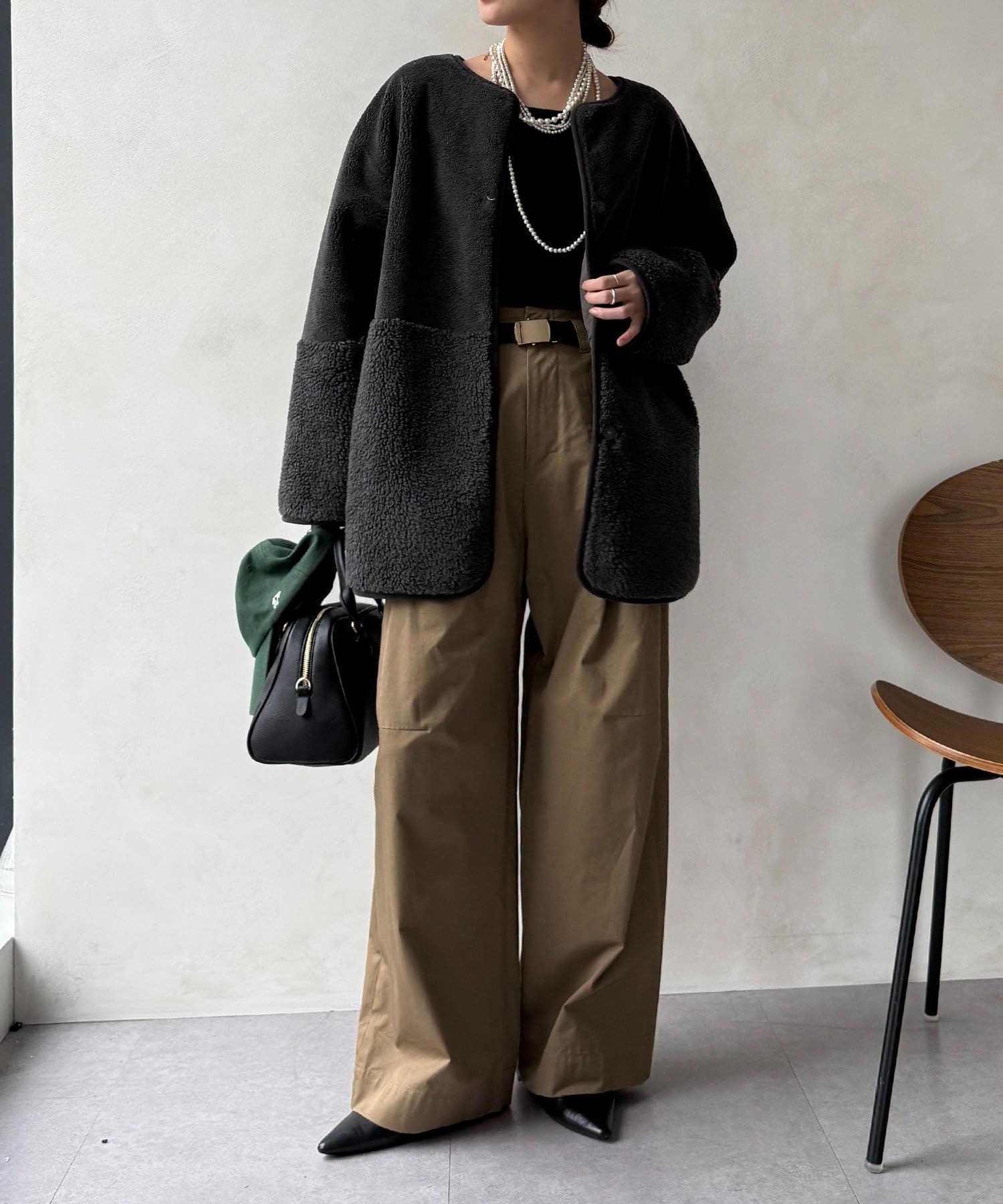 もこもこの肌触りが心地よい、リバーシブルフェイクムートンコートが登場。