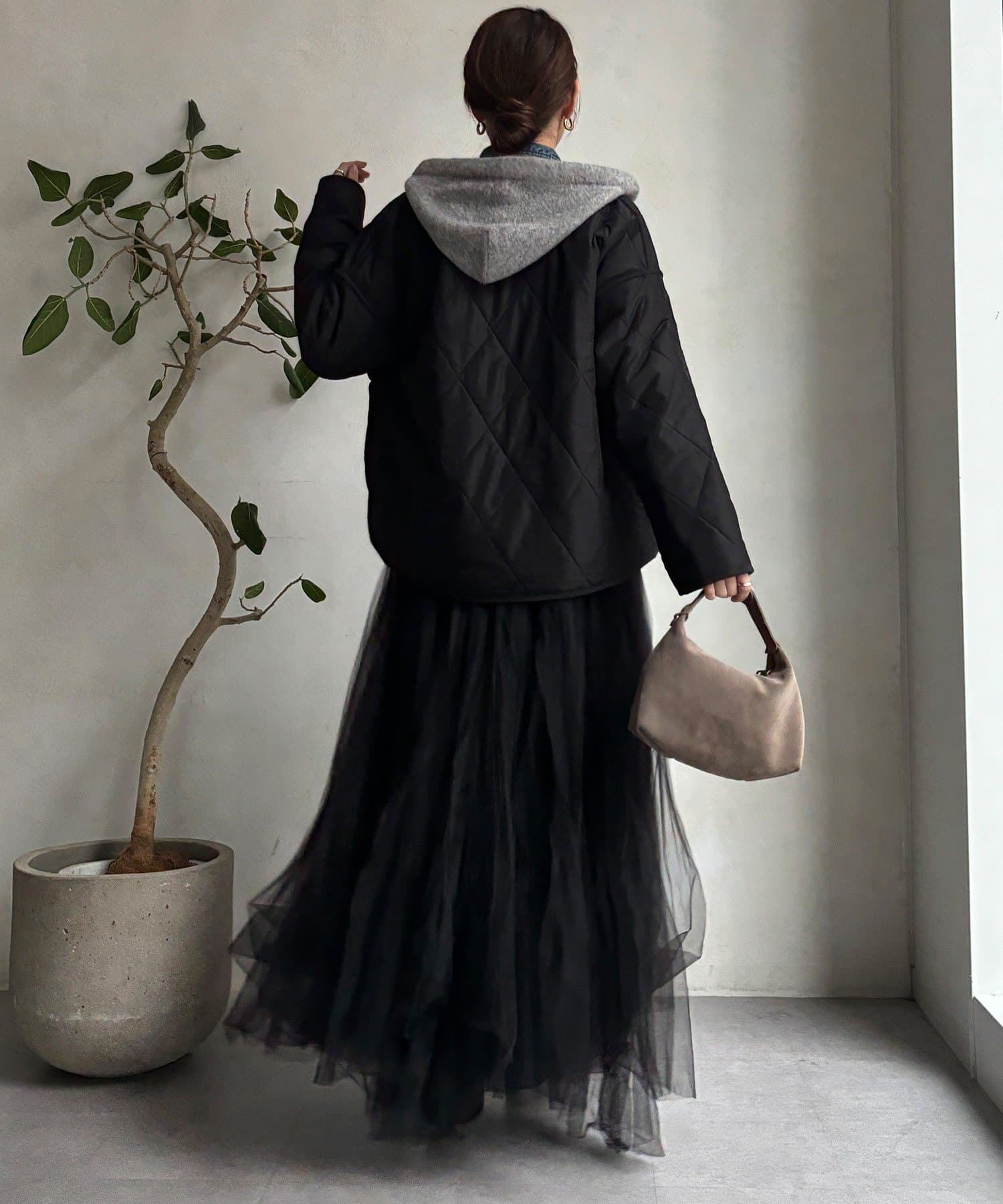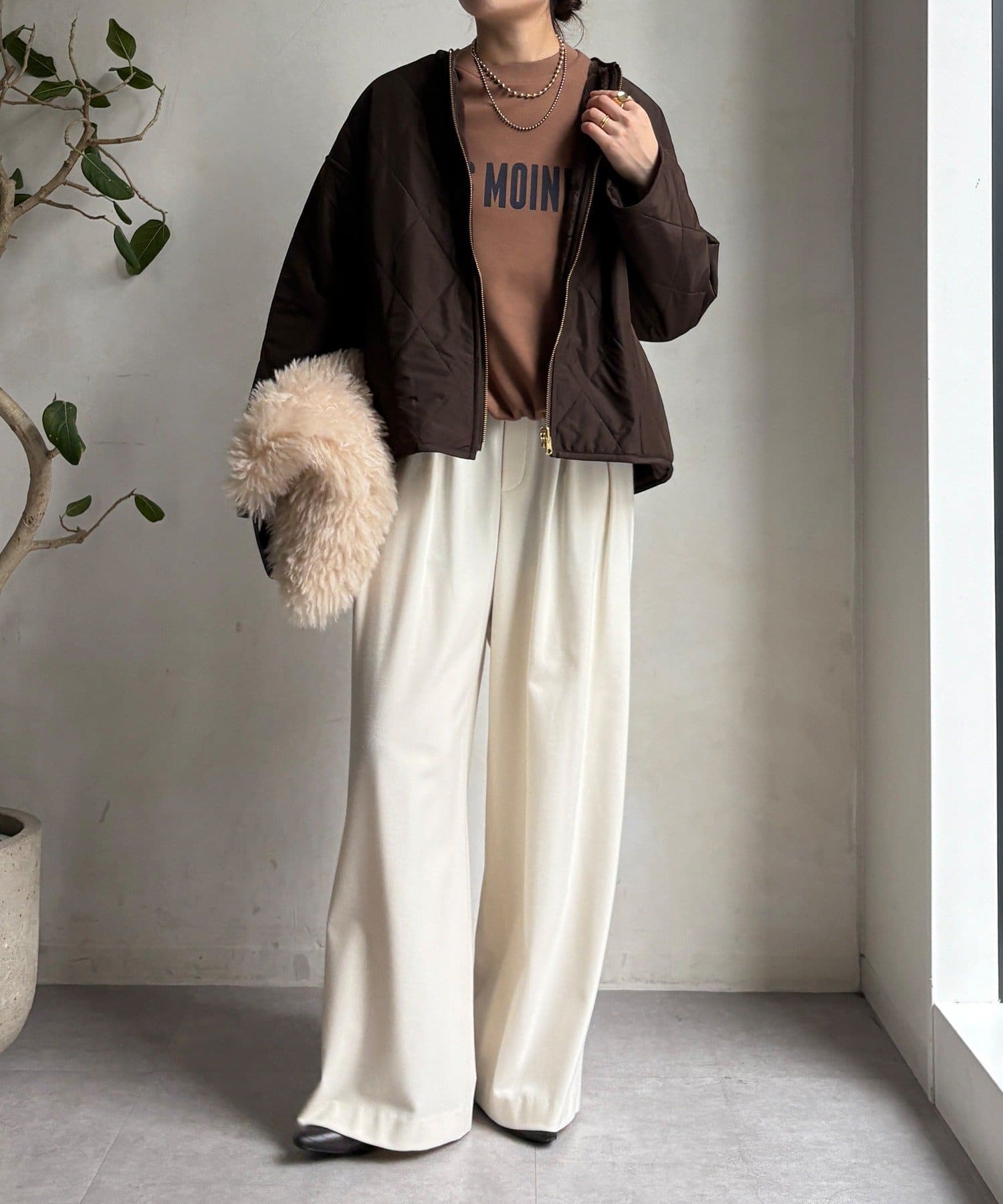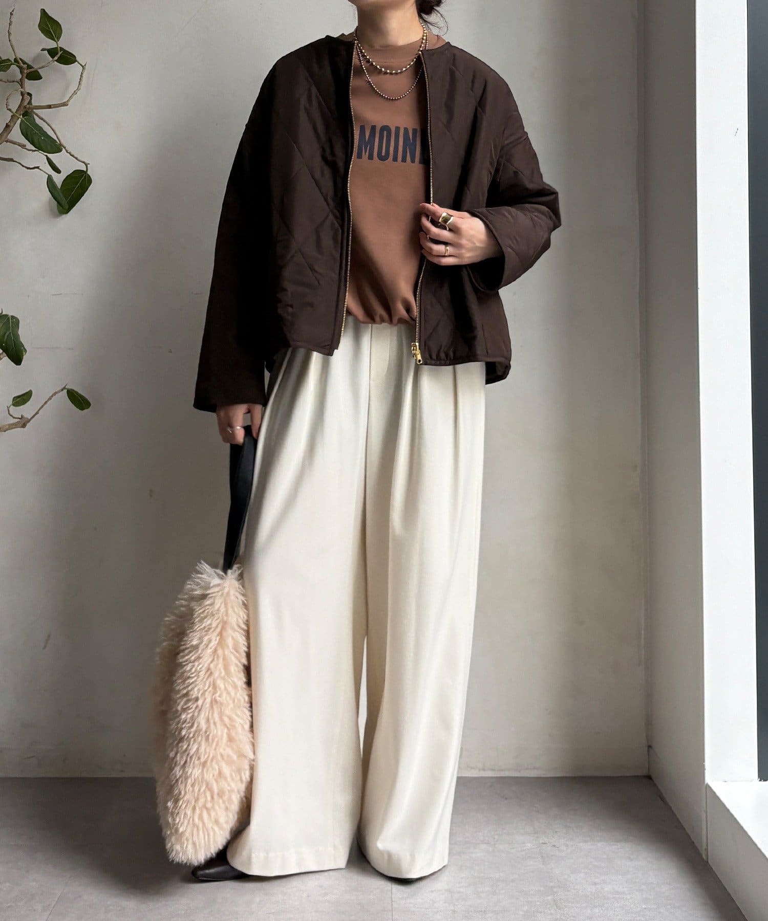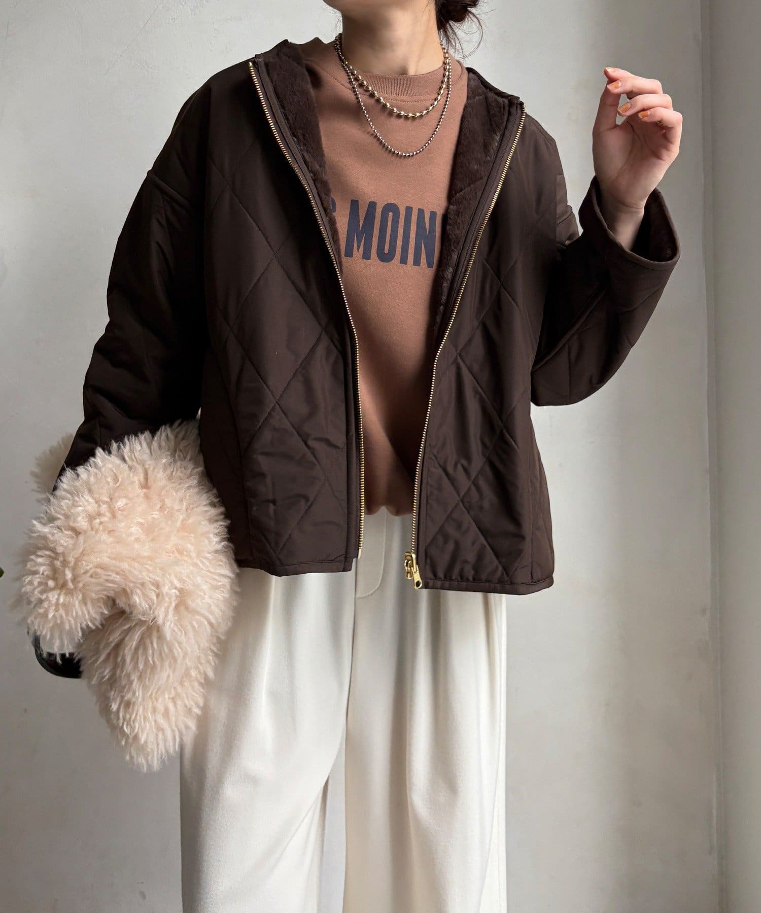 ファー面はリッチで華やかに、キルト面はカジュアルに、気分やシーンに合わせてスタイルチェンジが可能です。