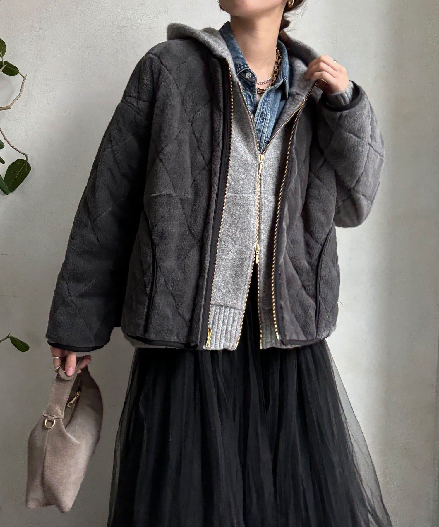 • DOUDOU(ドゥドゥ) 【WEB限定】リバーシブルファーキルトコート