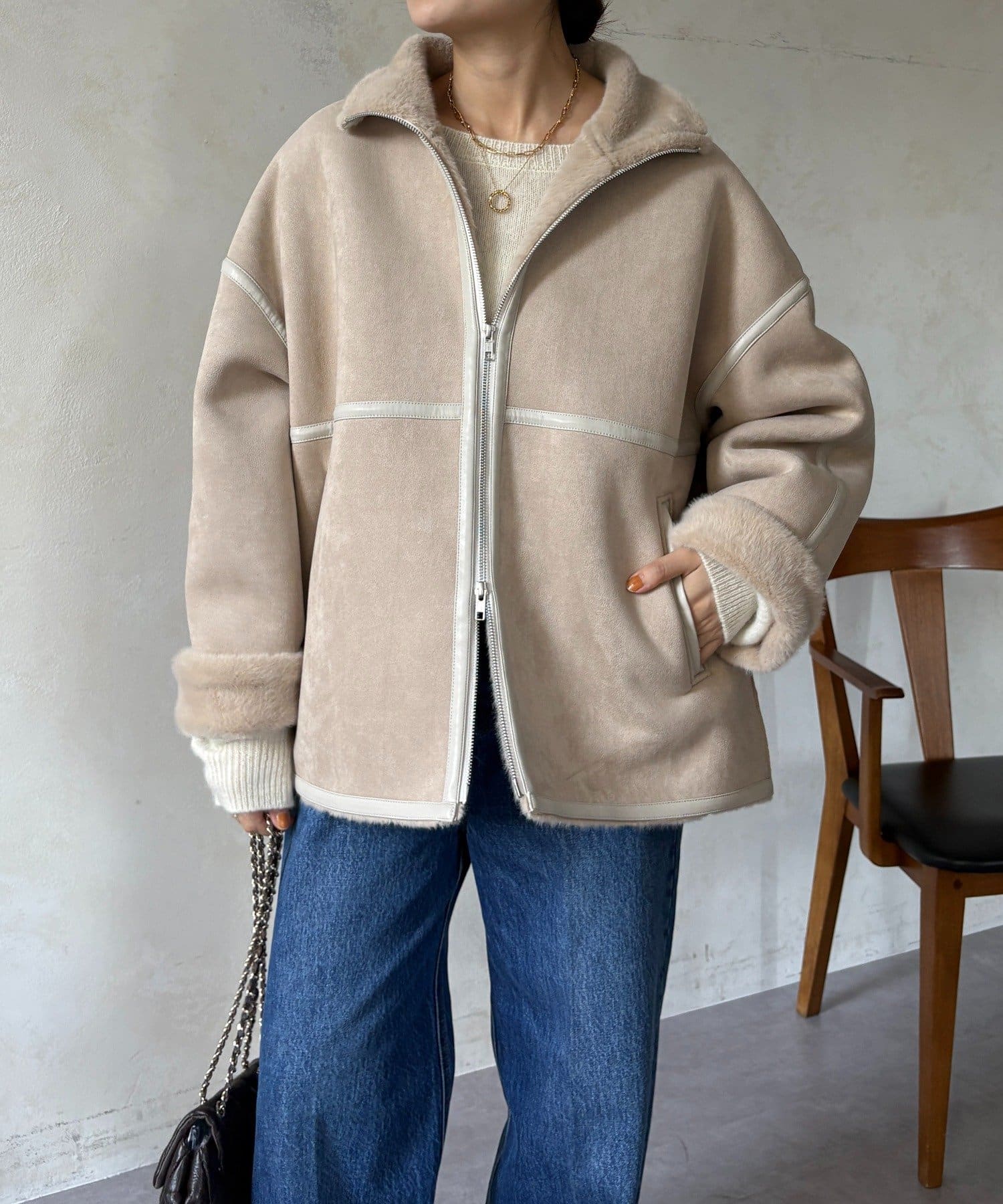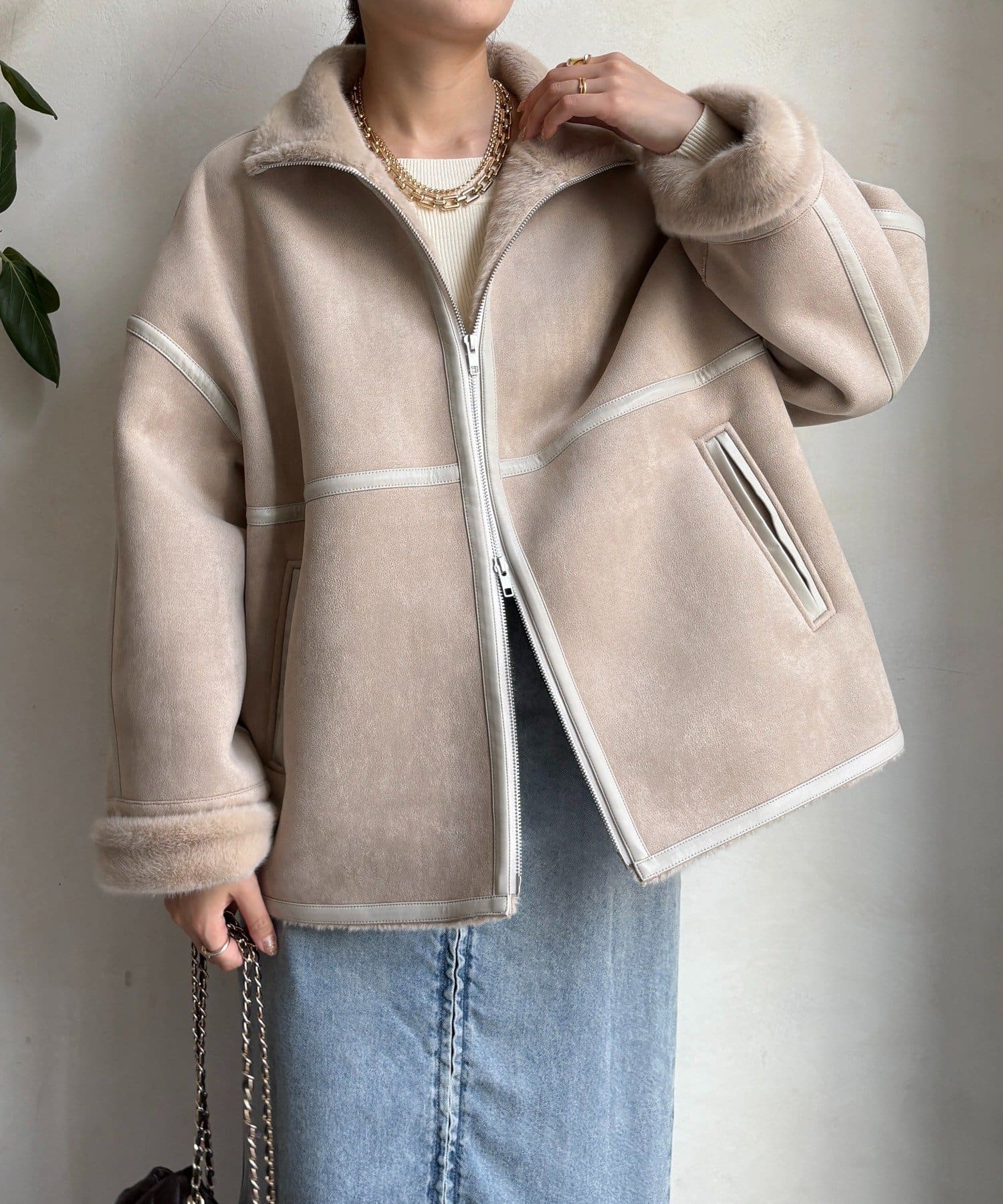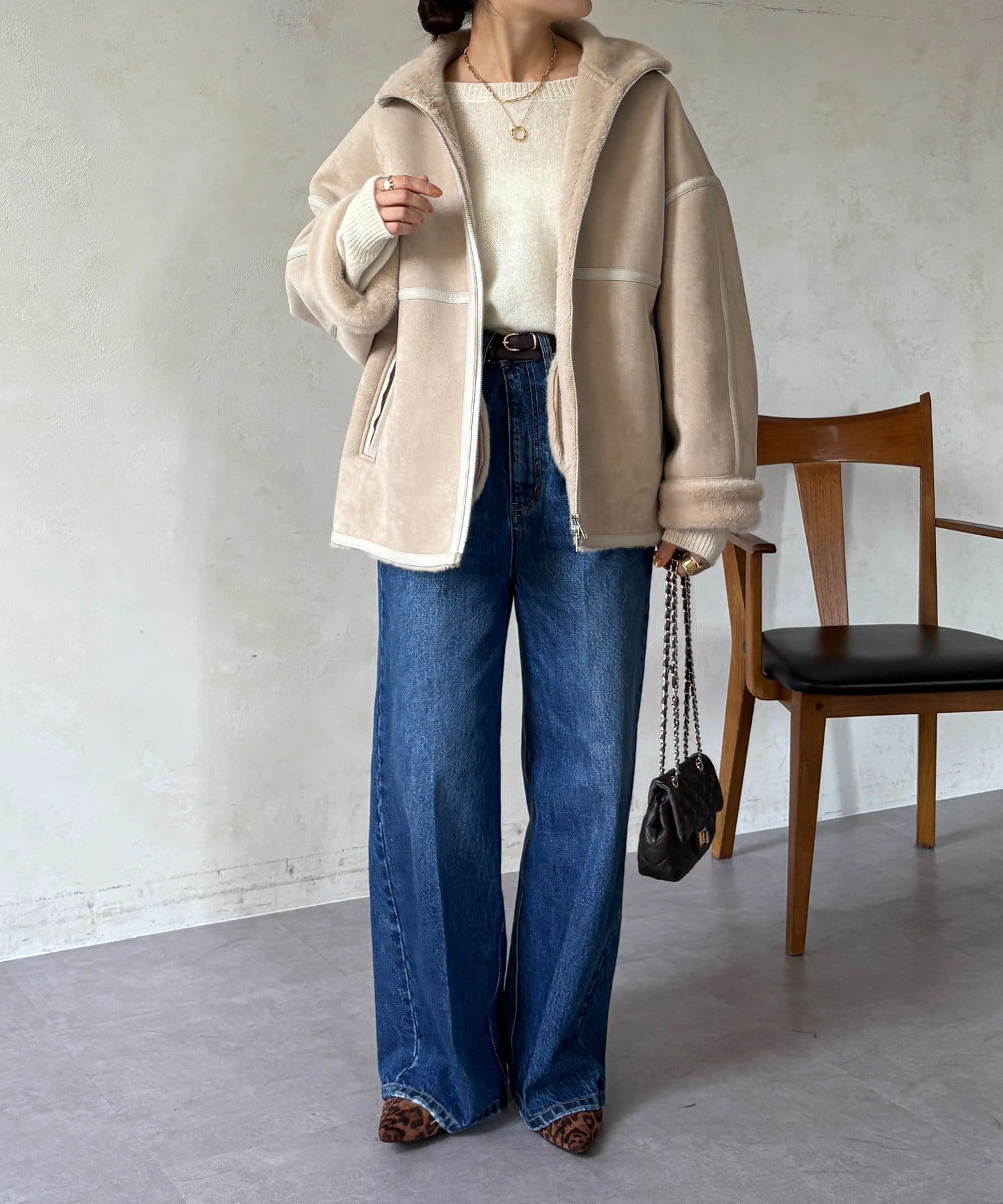 ベーシックなブラックと、温かみのあるベージュのカラー展開は日頃のスタイリングにもマッチしやすく、秋冬のメインアウターとして活躍してくれる1着ですよ。