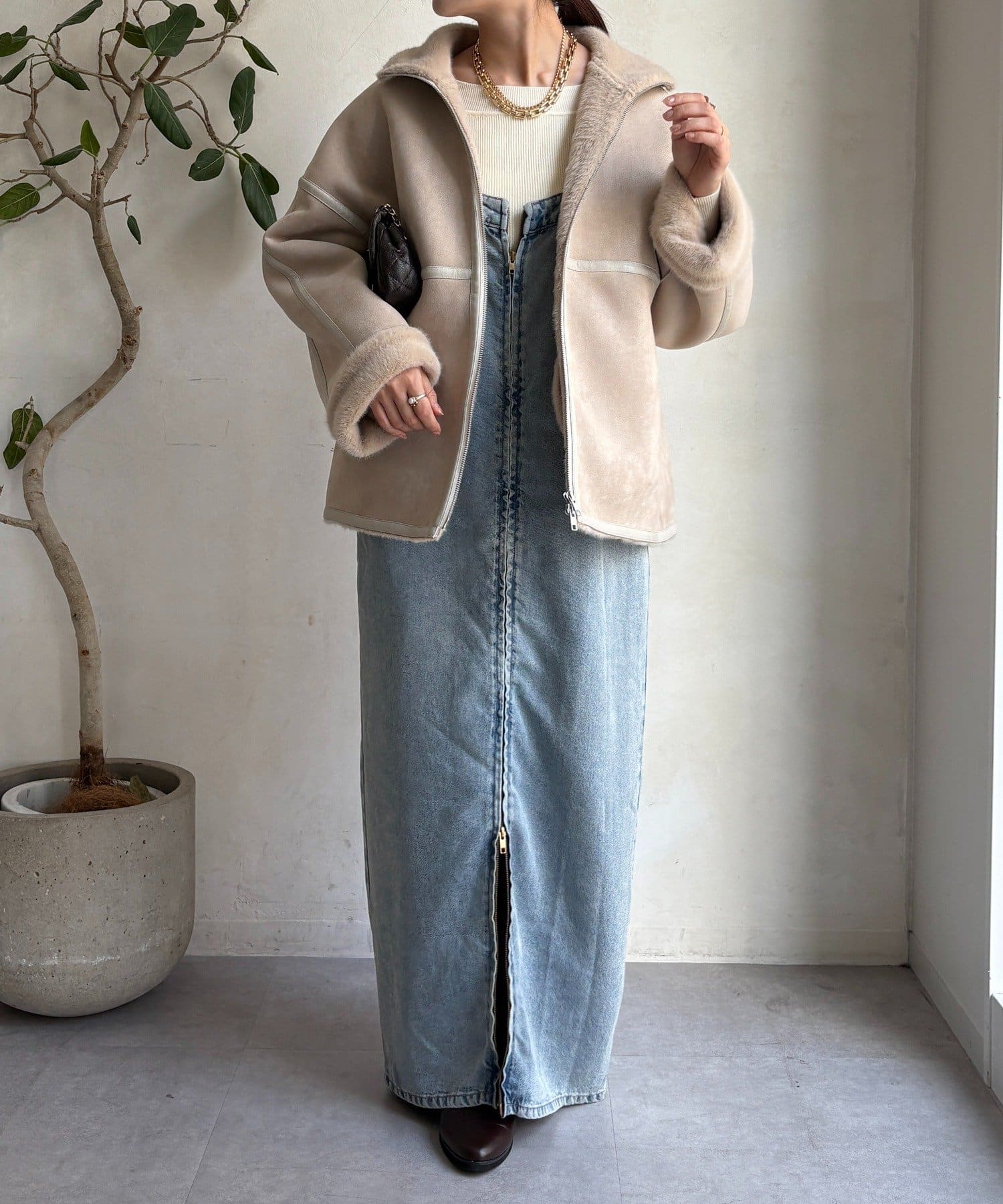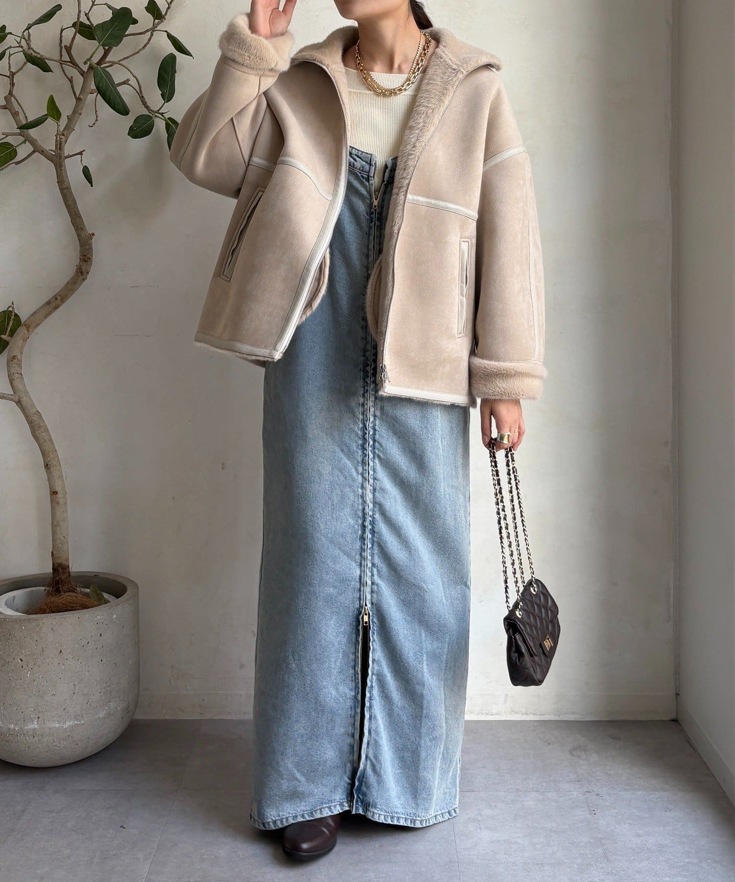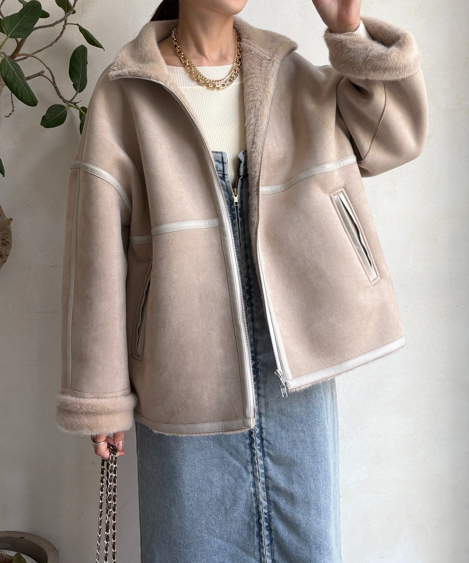 ベーシックなブラックと、温かみのあるベージュのカラー展開は日頃のスタイリングにもマッチしやすく、秋冬のメインアウターとして活躍してくれる1着ですよ。