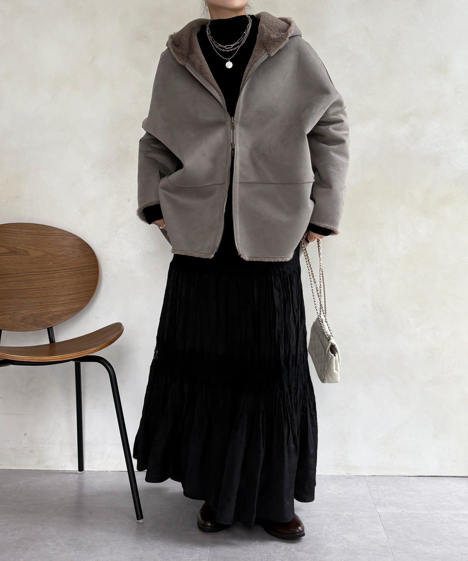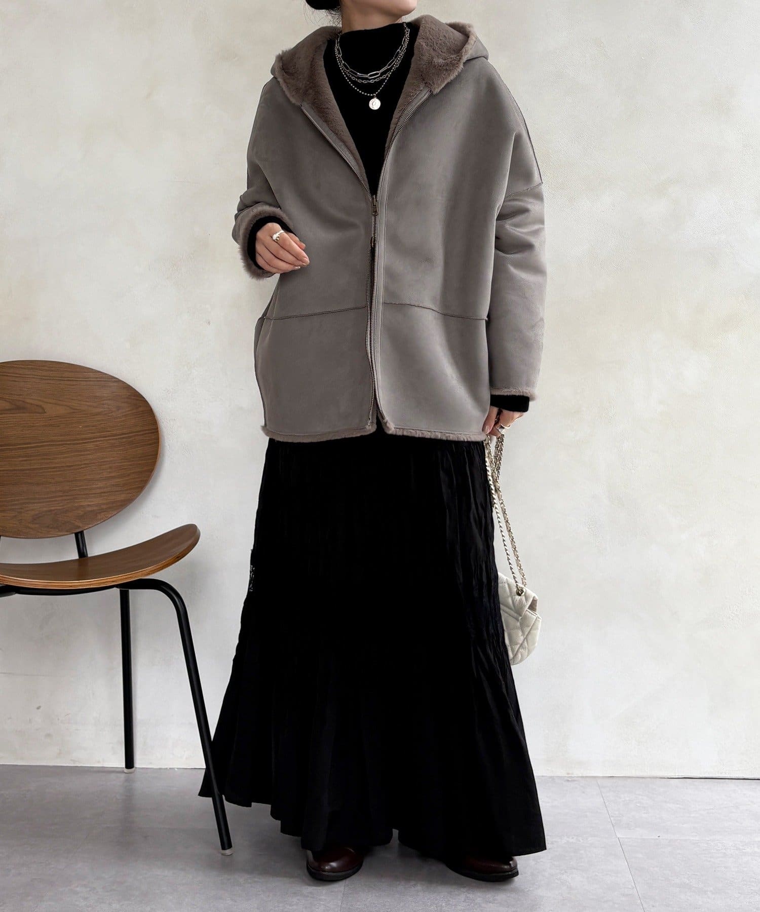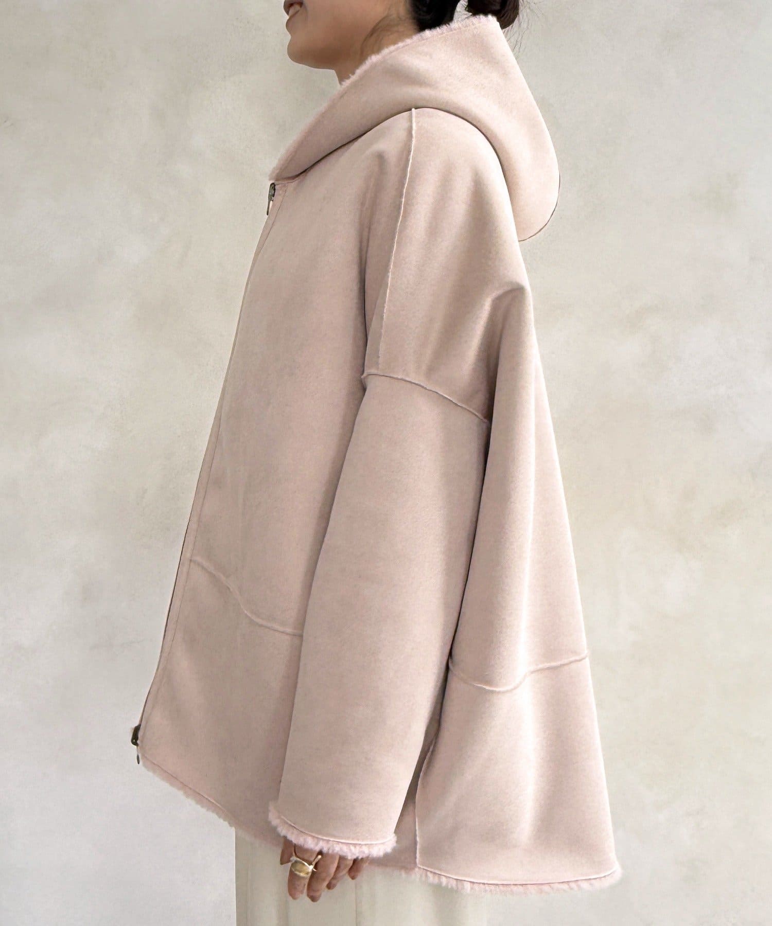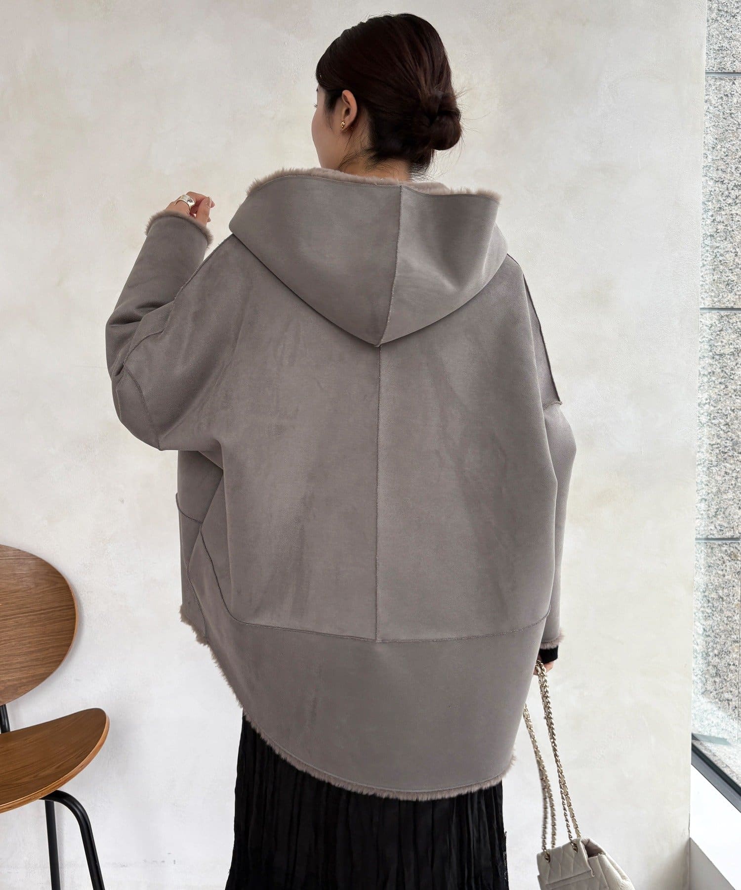 手触りのいいファー素材と、スウェードをリバーシブルに仕上げたアウター。