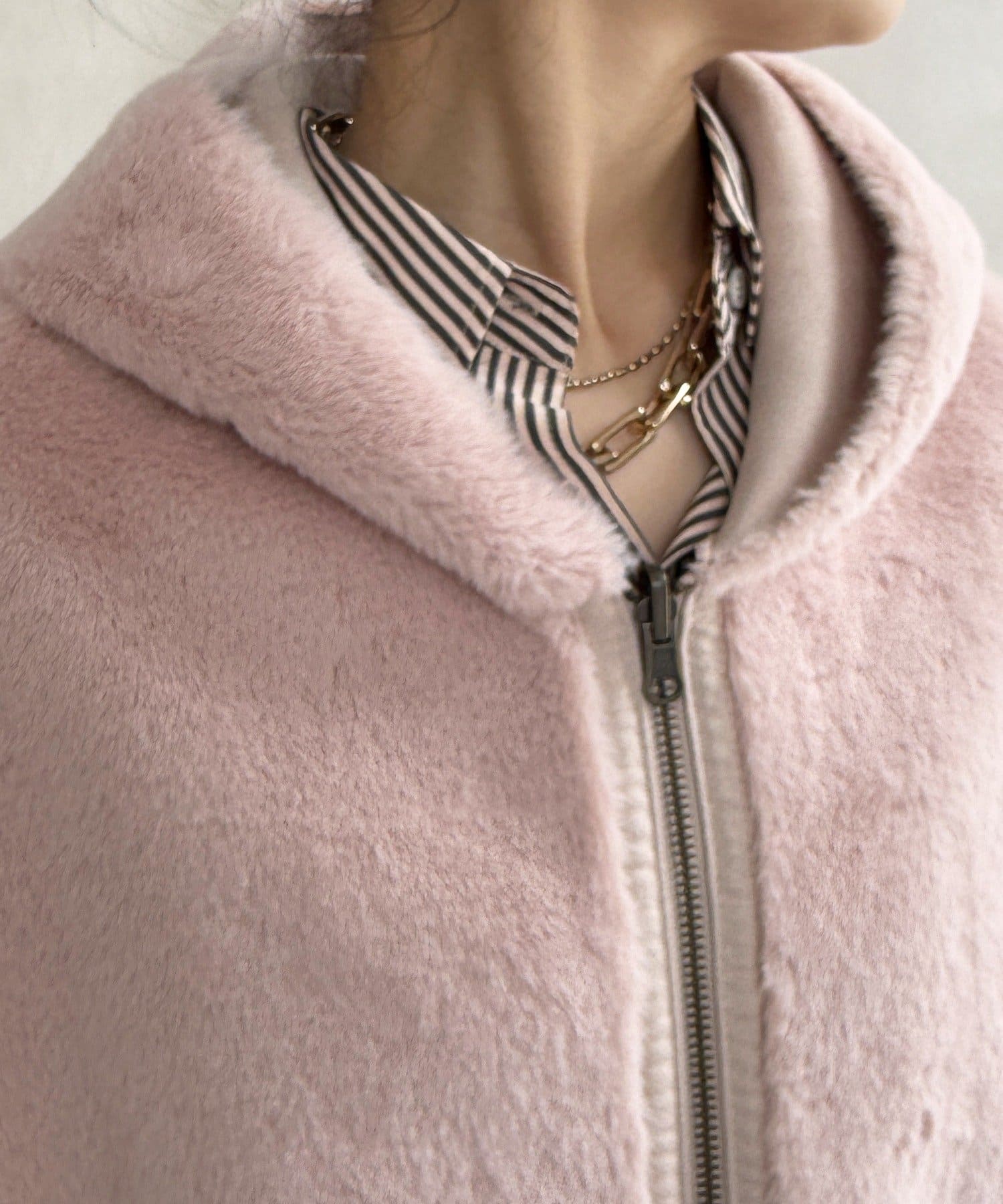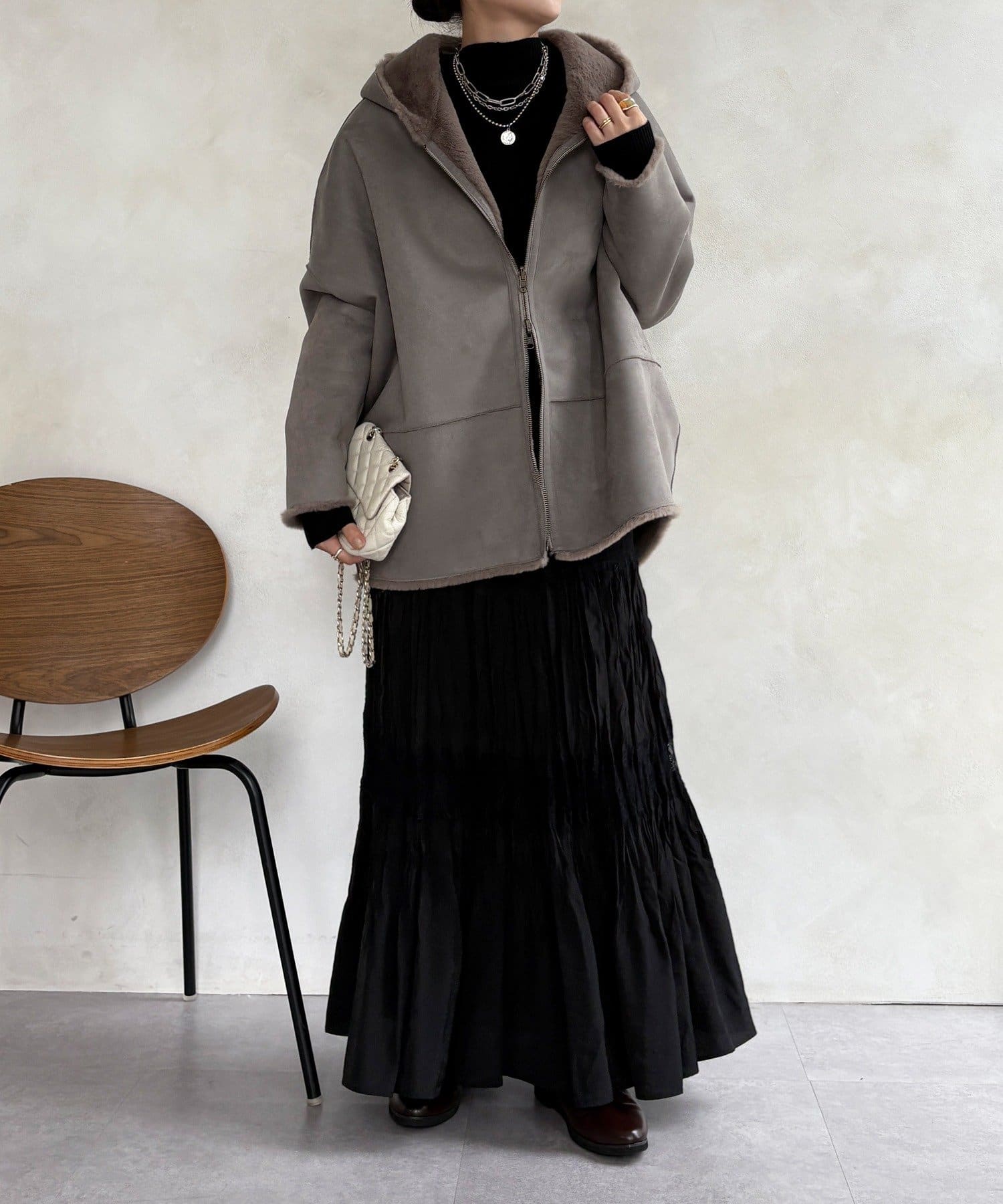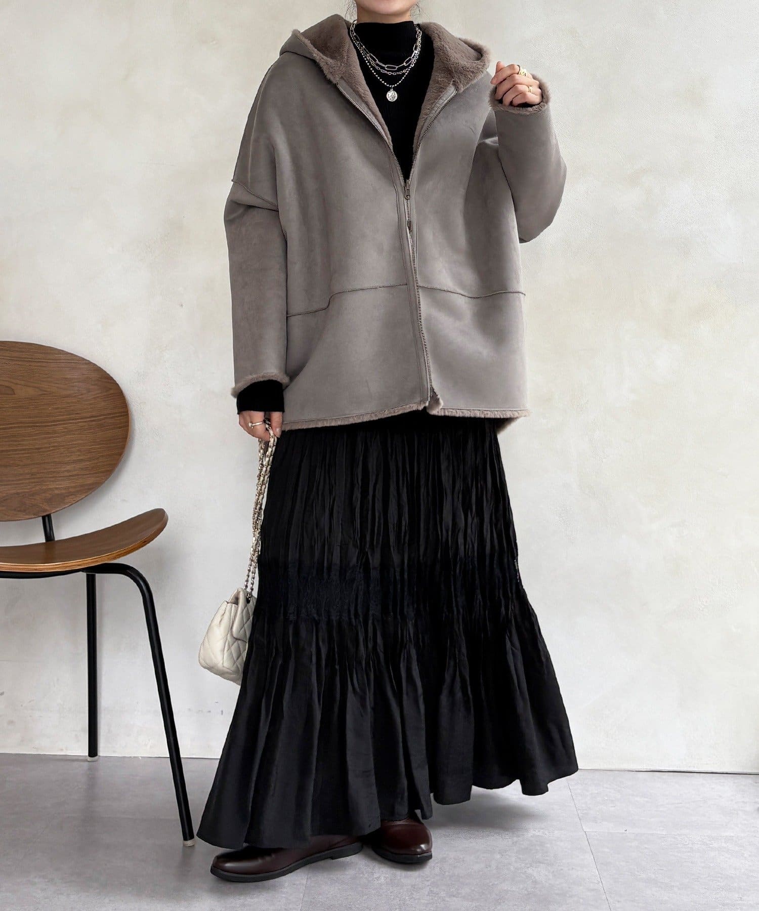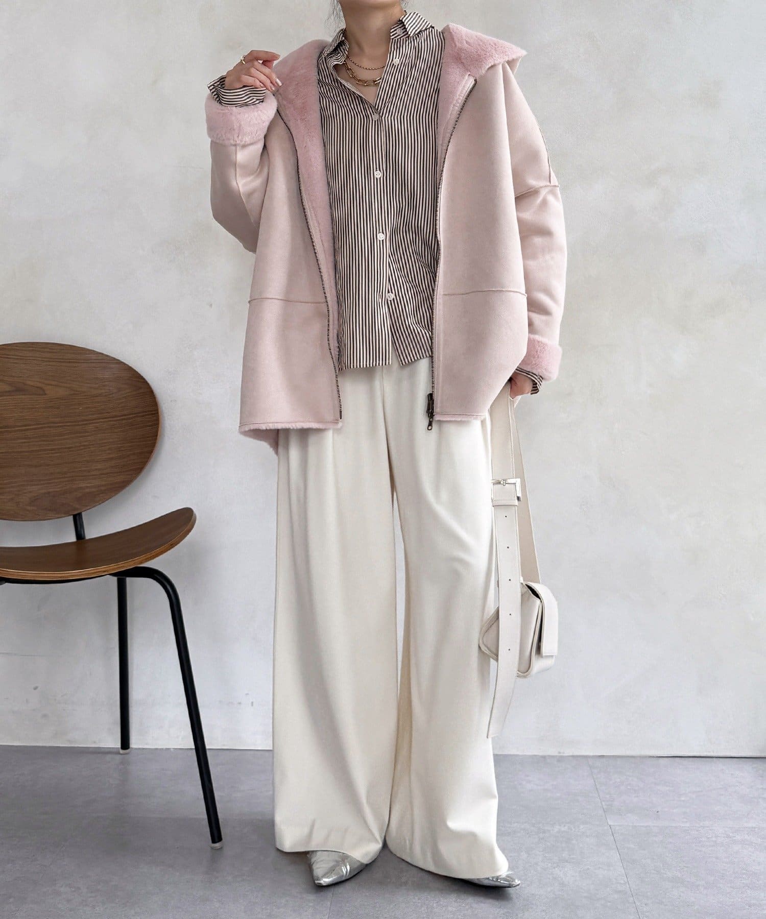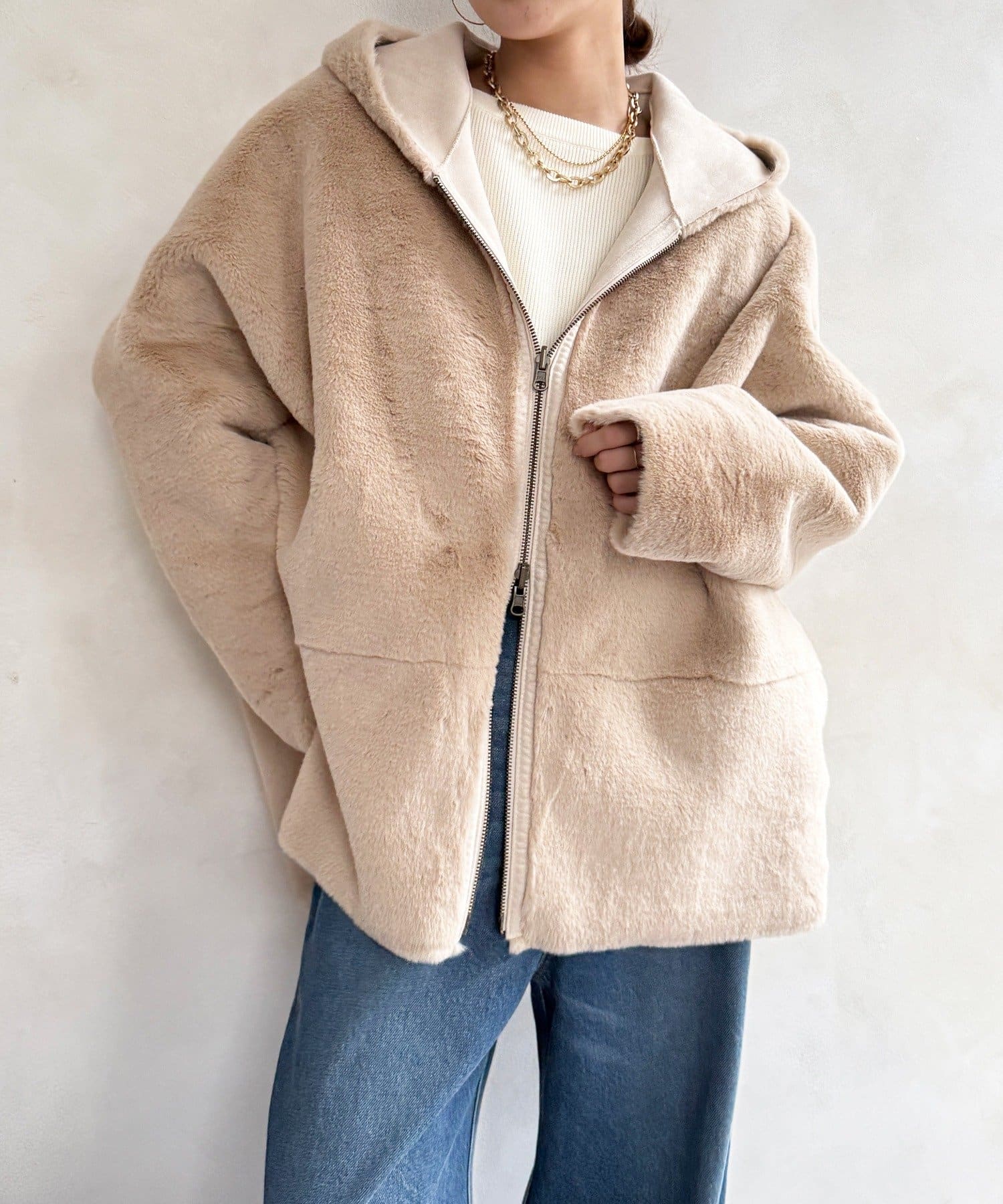 手触りのいいファー素材と、スウェードをリバーシブルに仕上げたアウター。