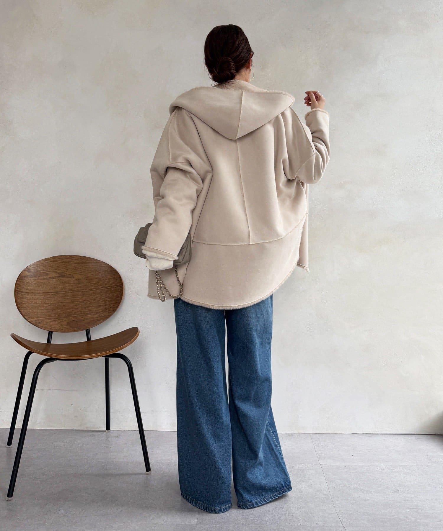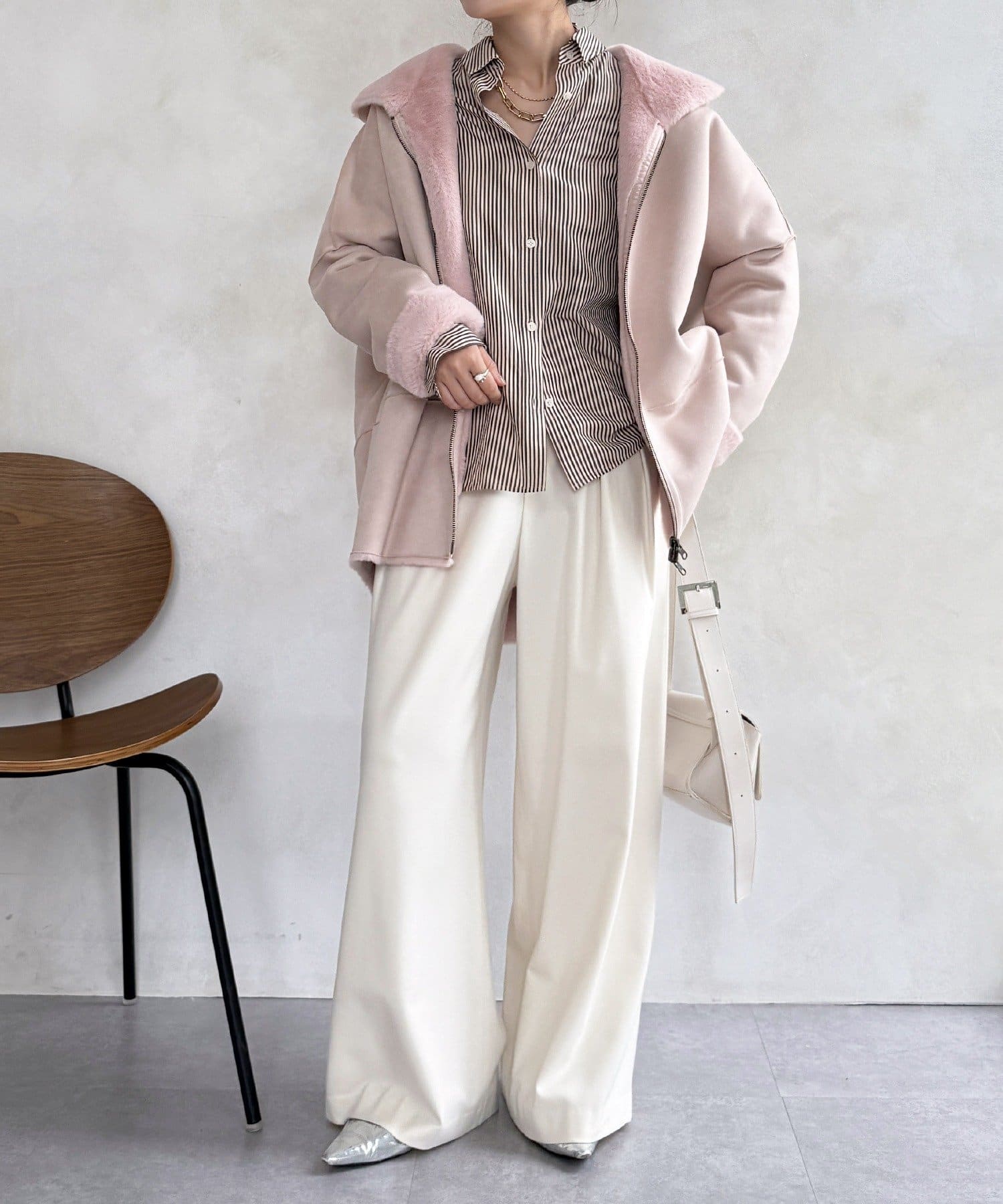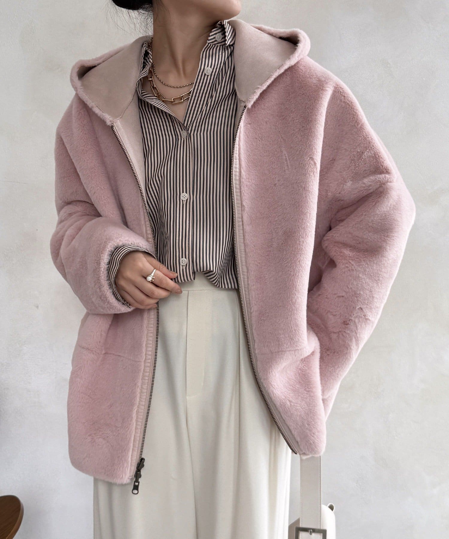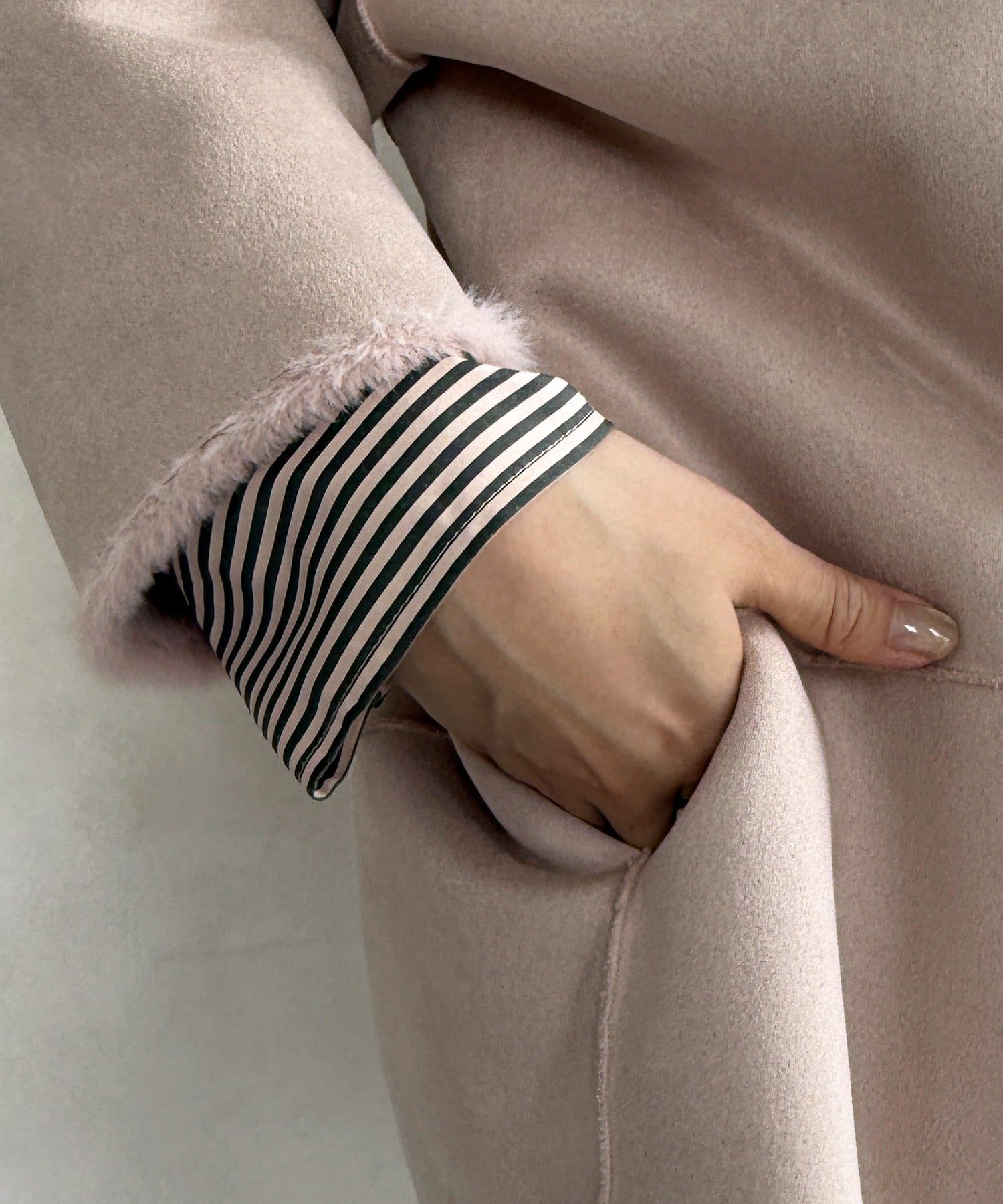 手触りのいいファー素材と、スウェードをリバーシブルに仕上げたアウター。