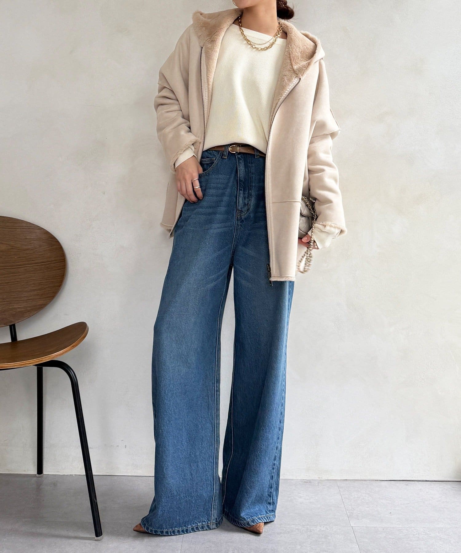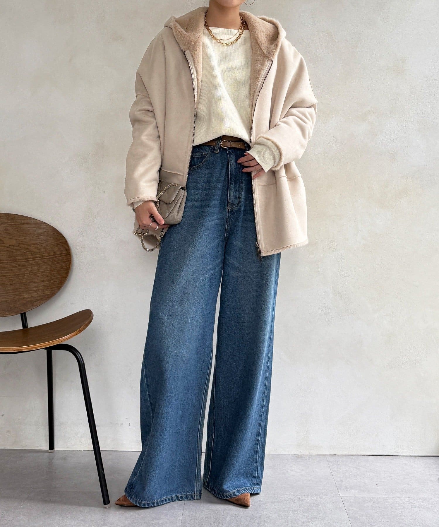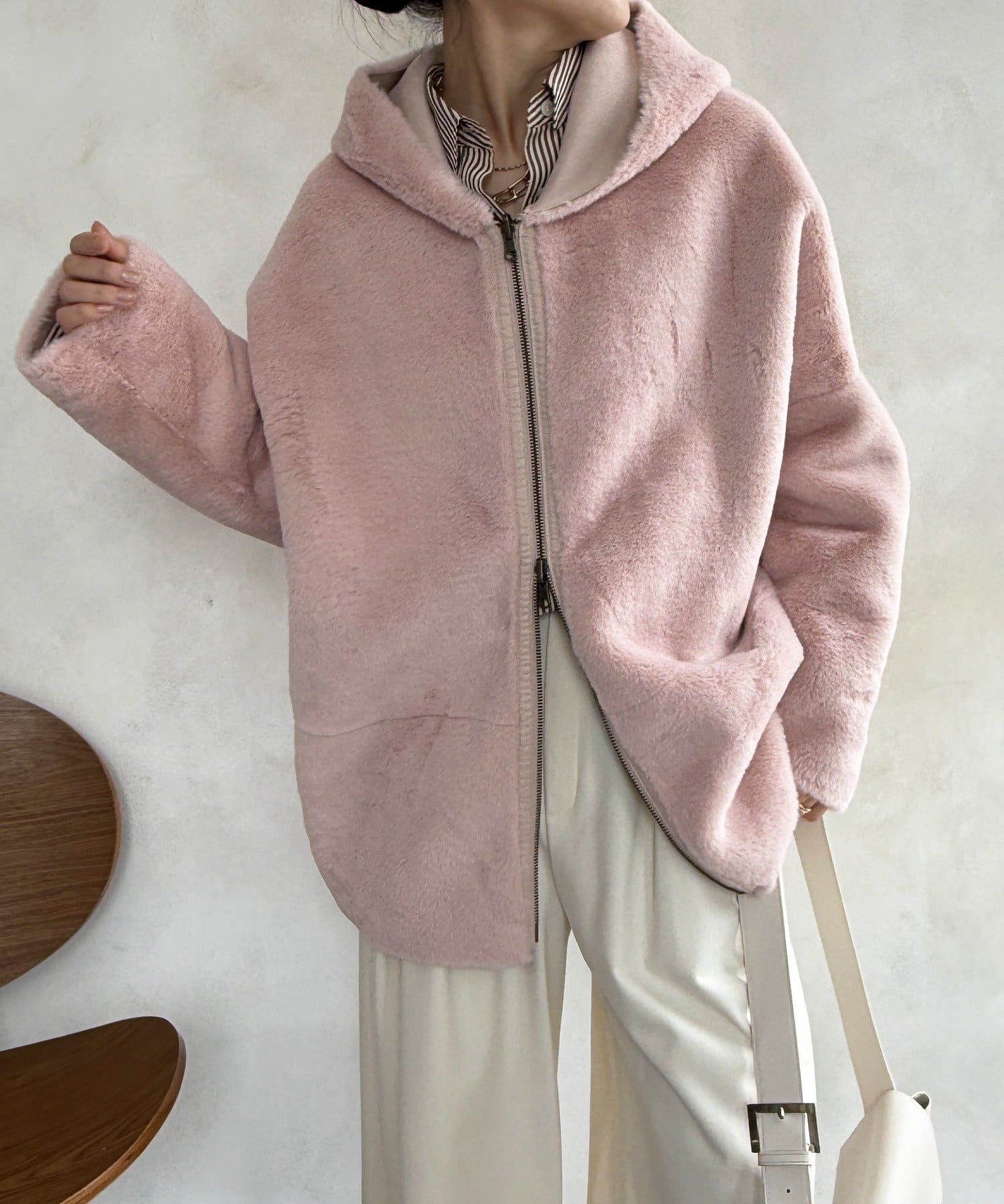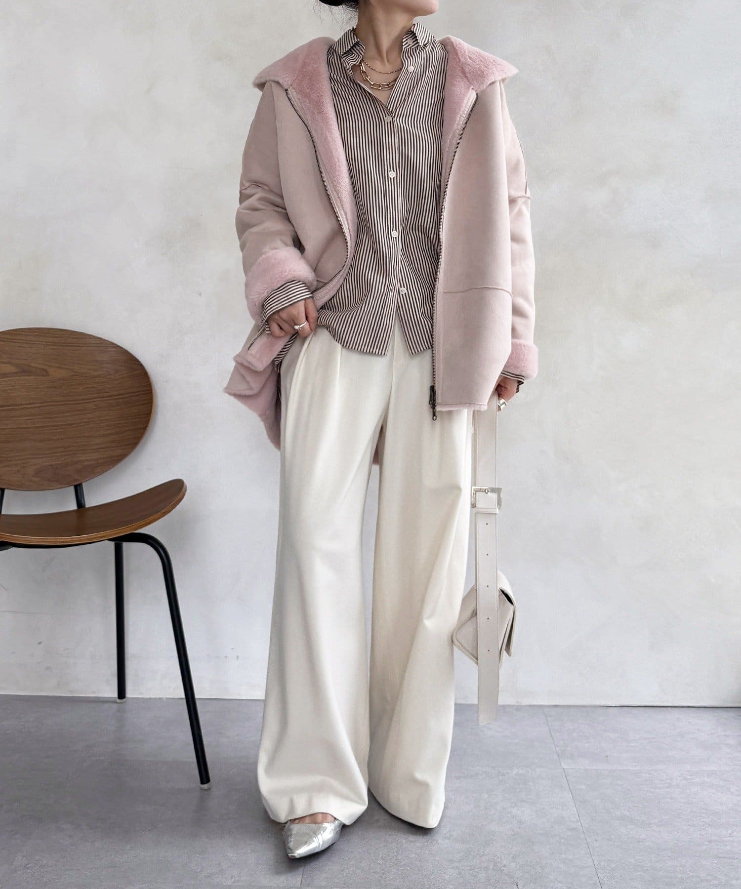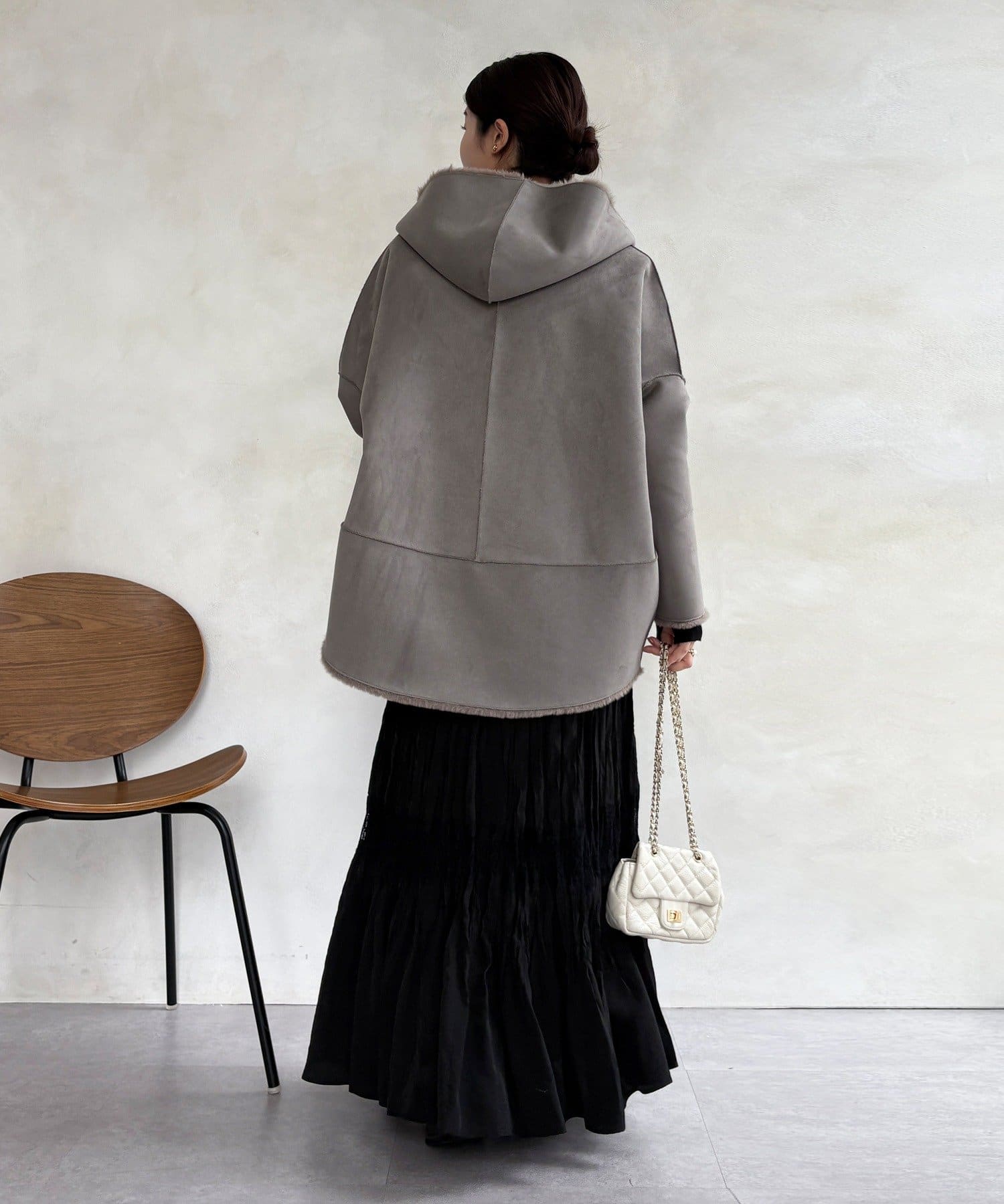 手触りのいいファー素材と、スウェードをリバーシブルに仕上げたアウター。