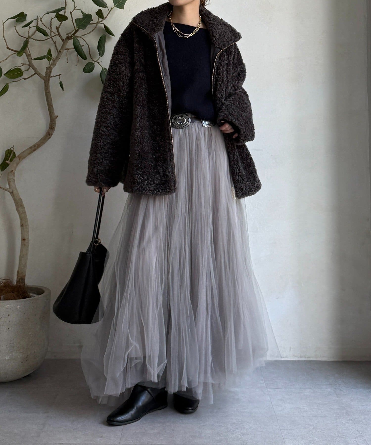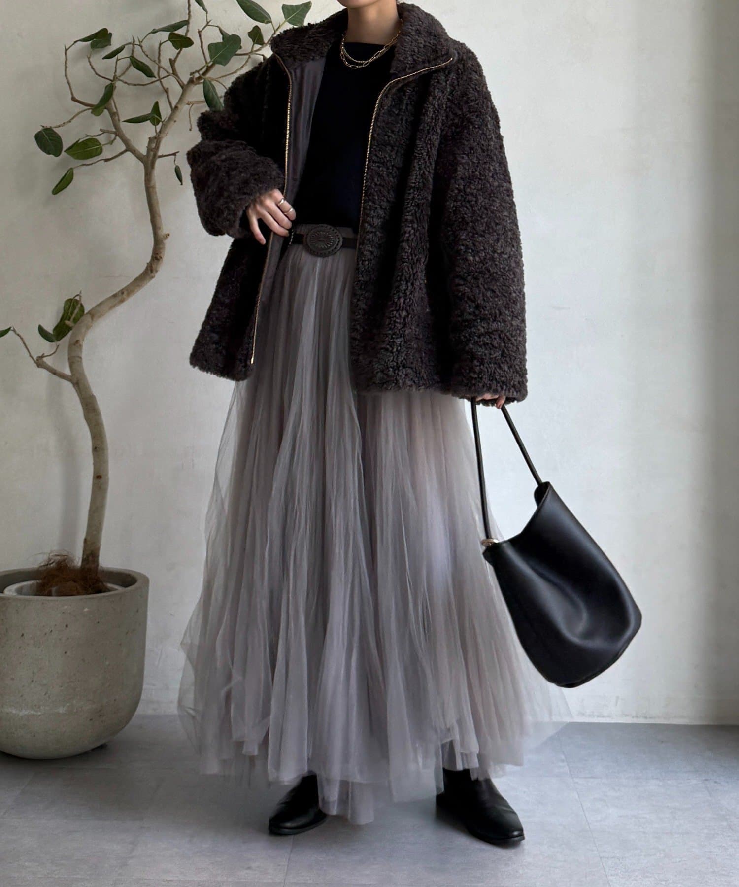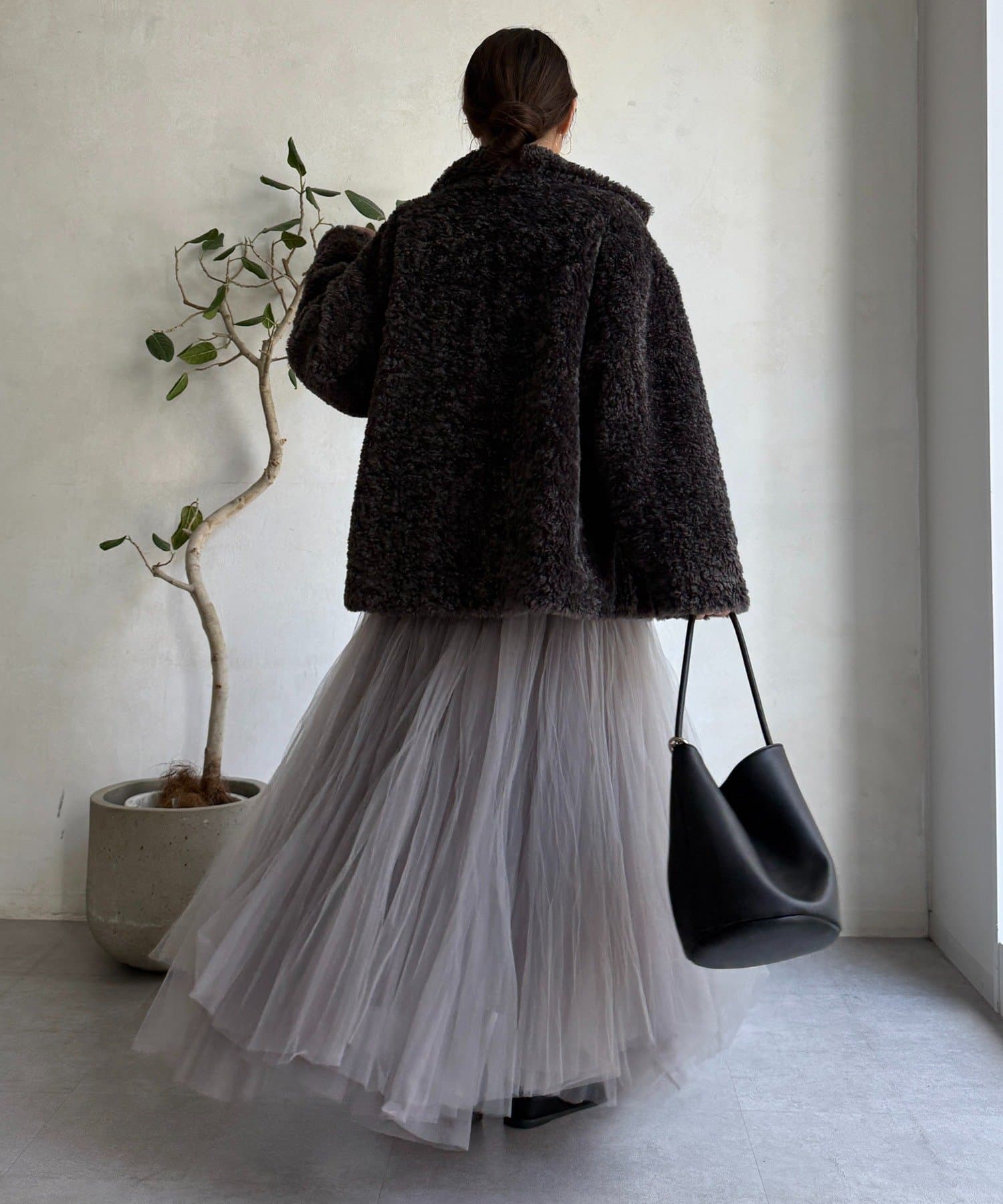 くるくるとしたループ状のボアが女性らしいデザイン。