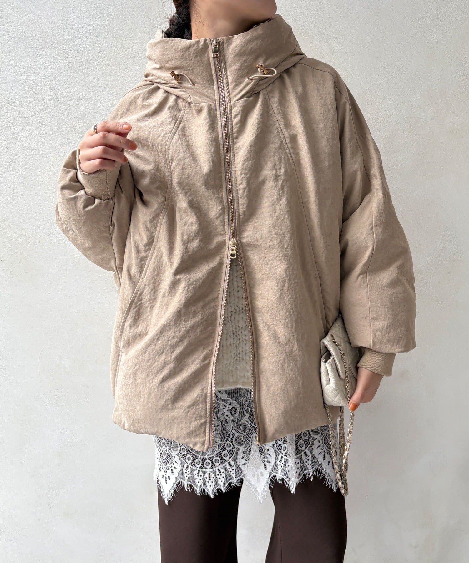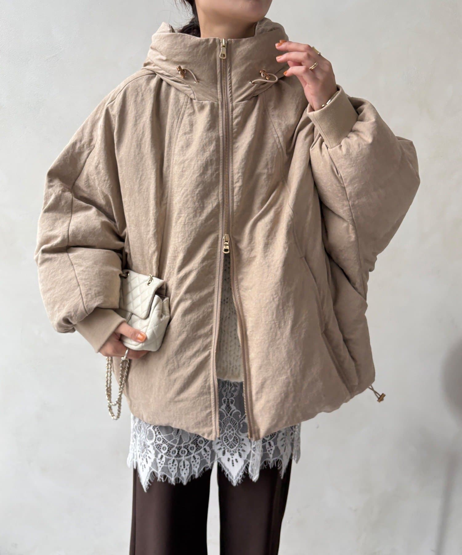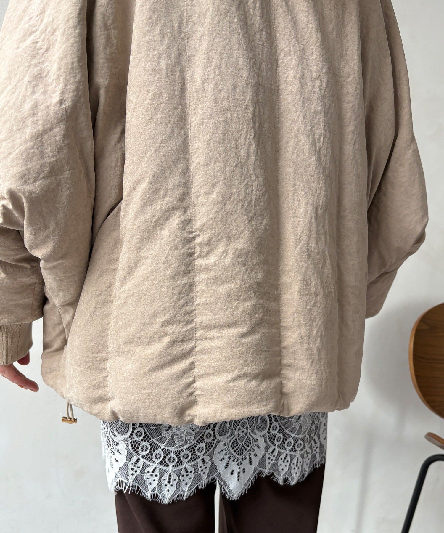 軽くて暖かい中綿入りで、着ぶくれしないすっきりシルエットに仕上げました。