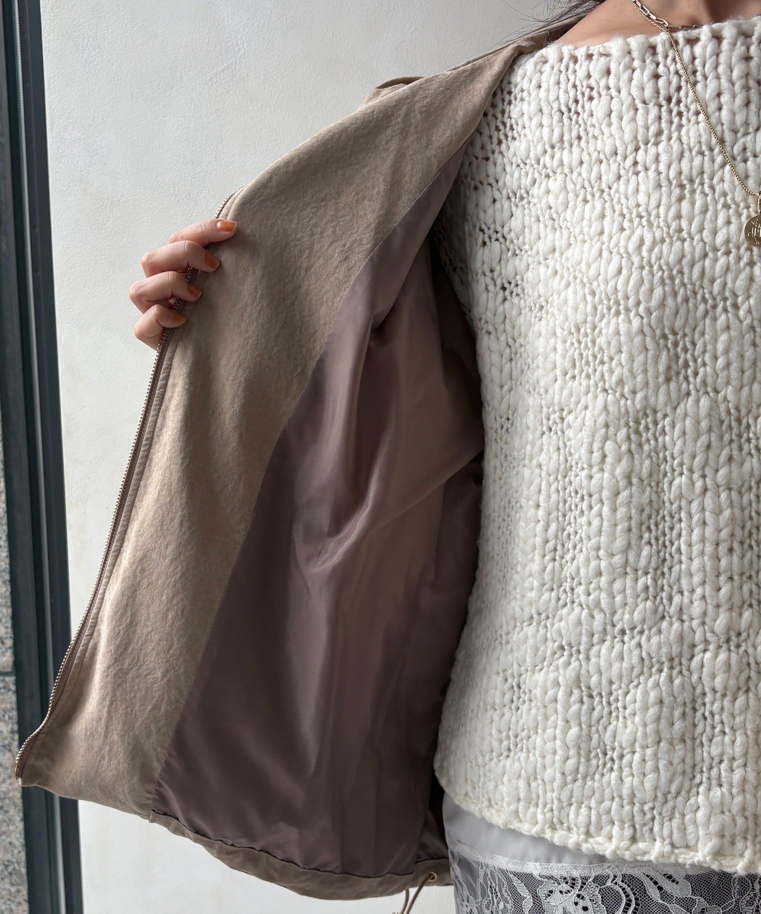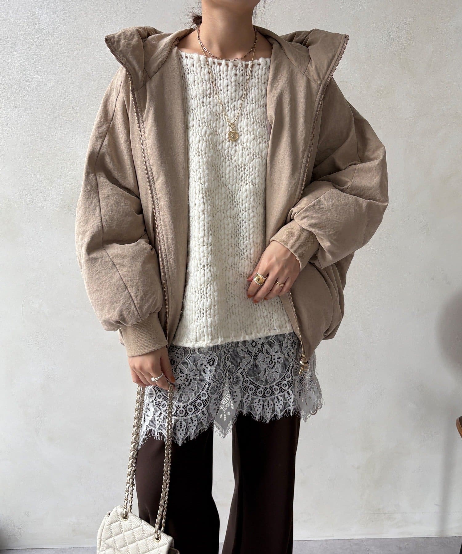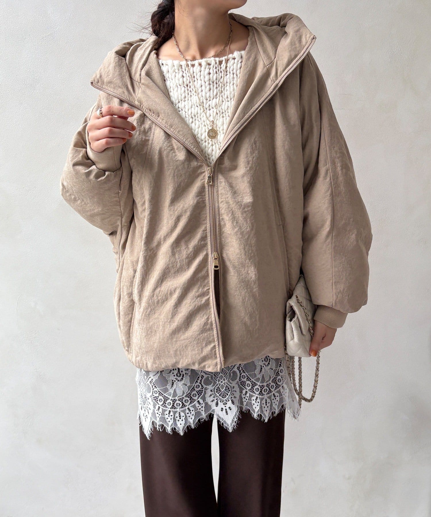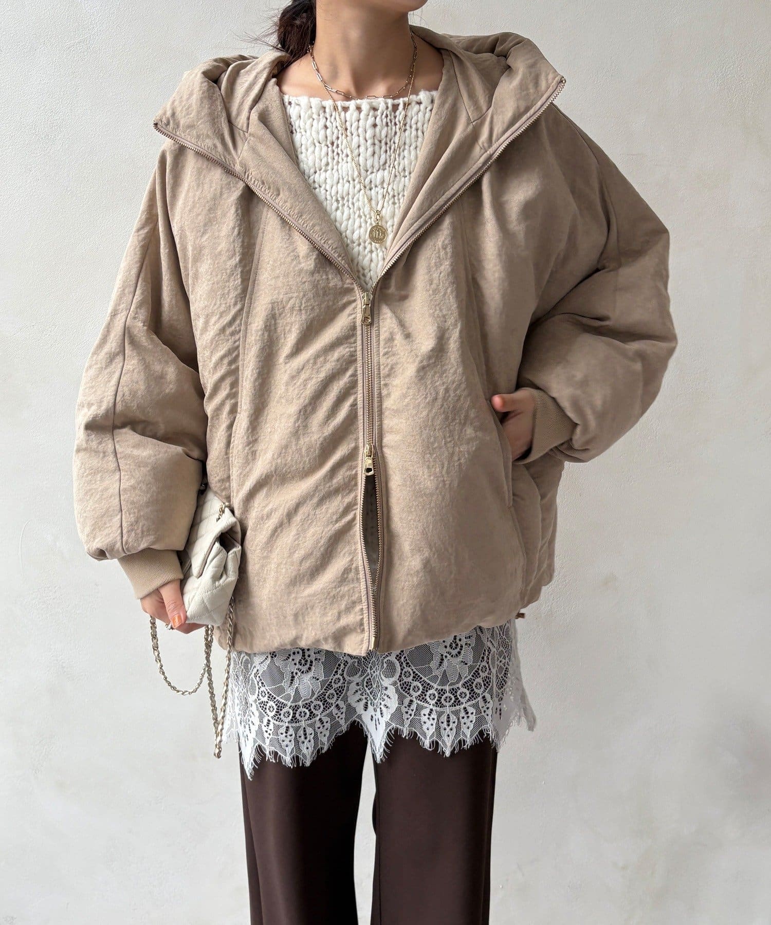 軽くて暖かい中綿入りで、着ぶくれしないすっきりシルエットに仕上げました。