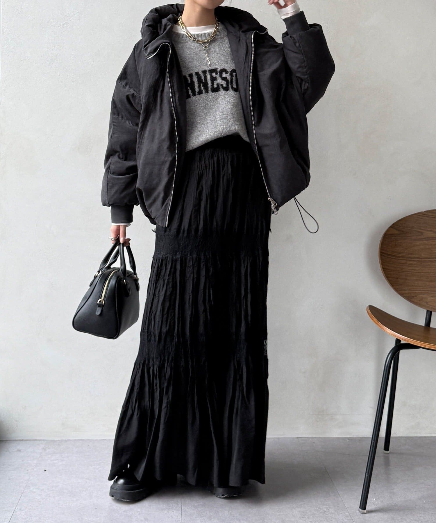 デニムにもスカートにも合わせやすく、冬のお出かけコーデをアップデートしてくれますよ。