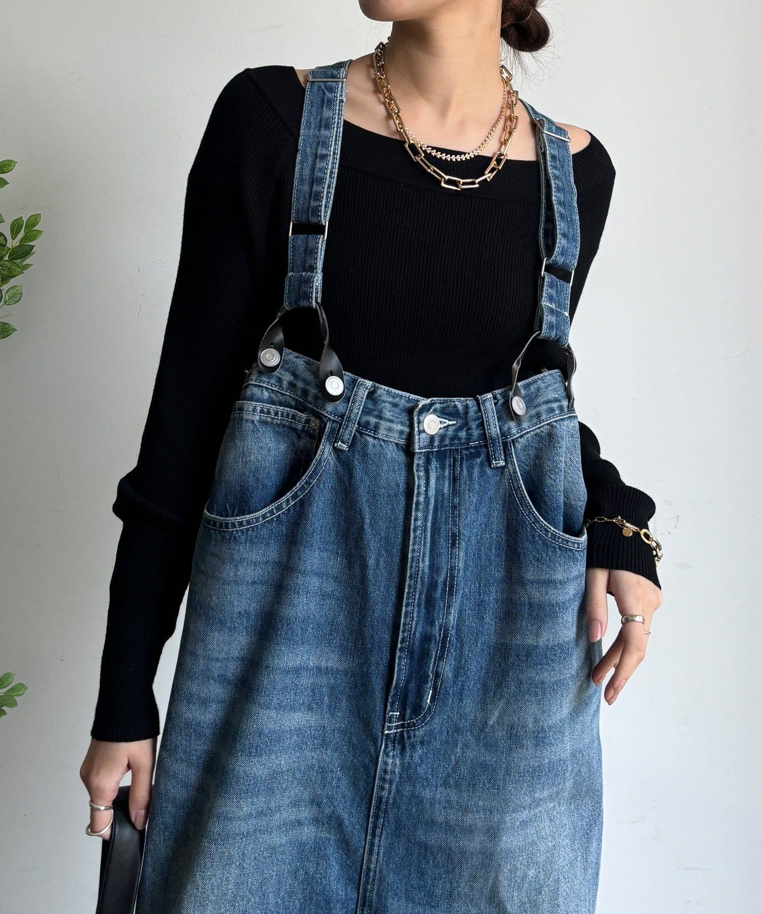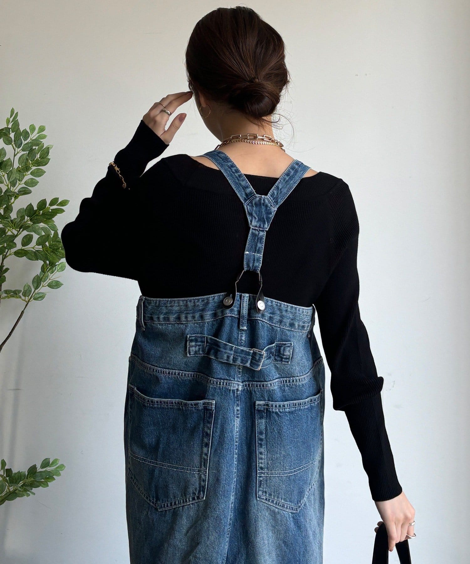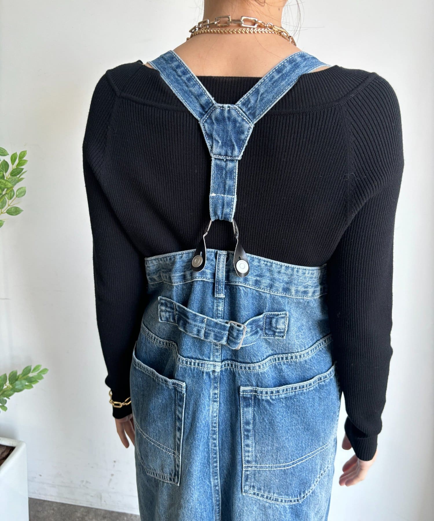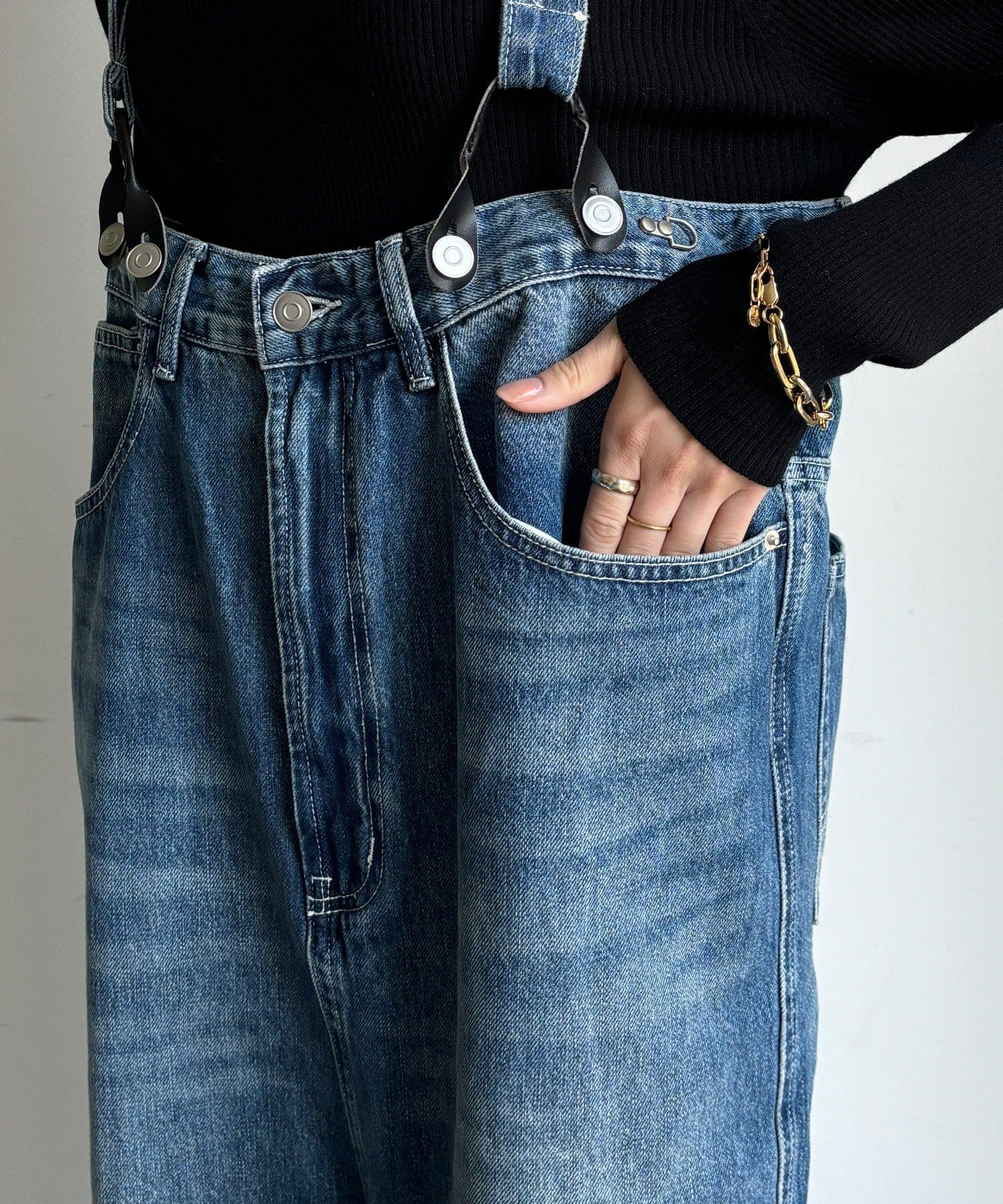 ずるっと可愛い、大人のサスペンダー付きデニムサロペット