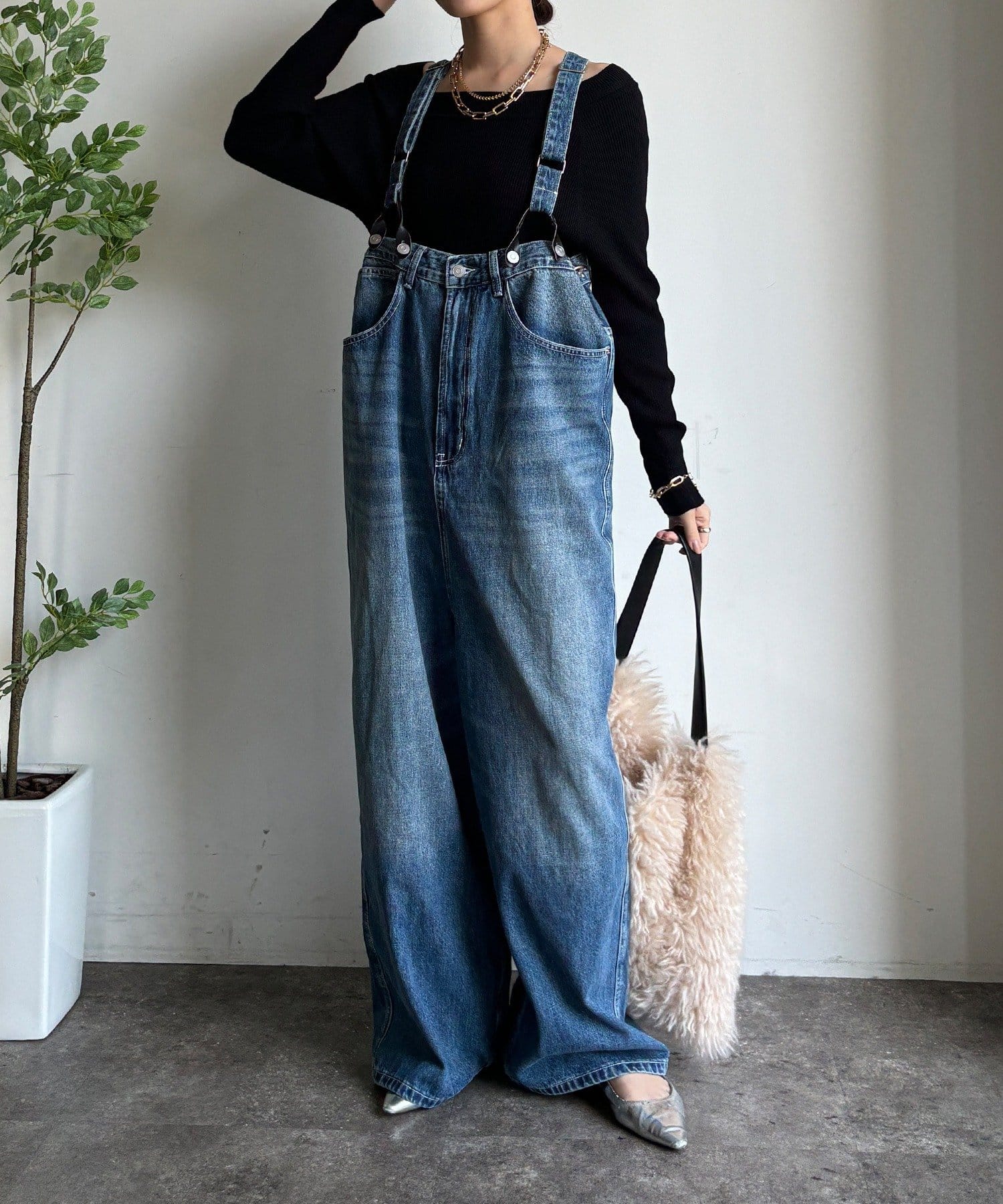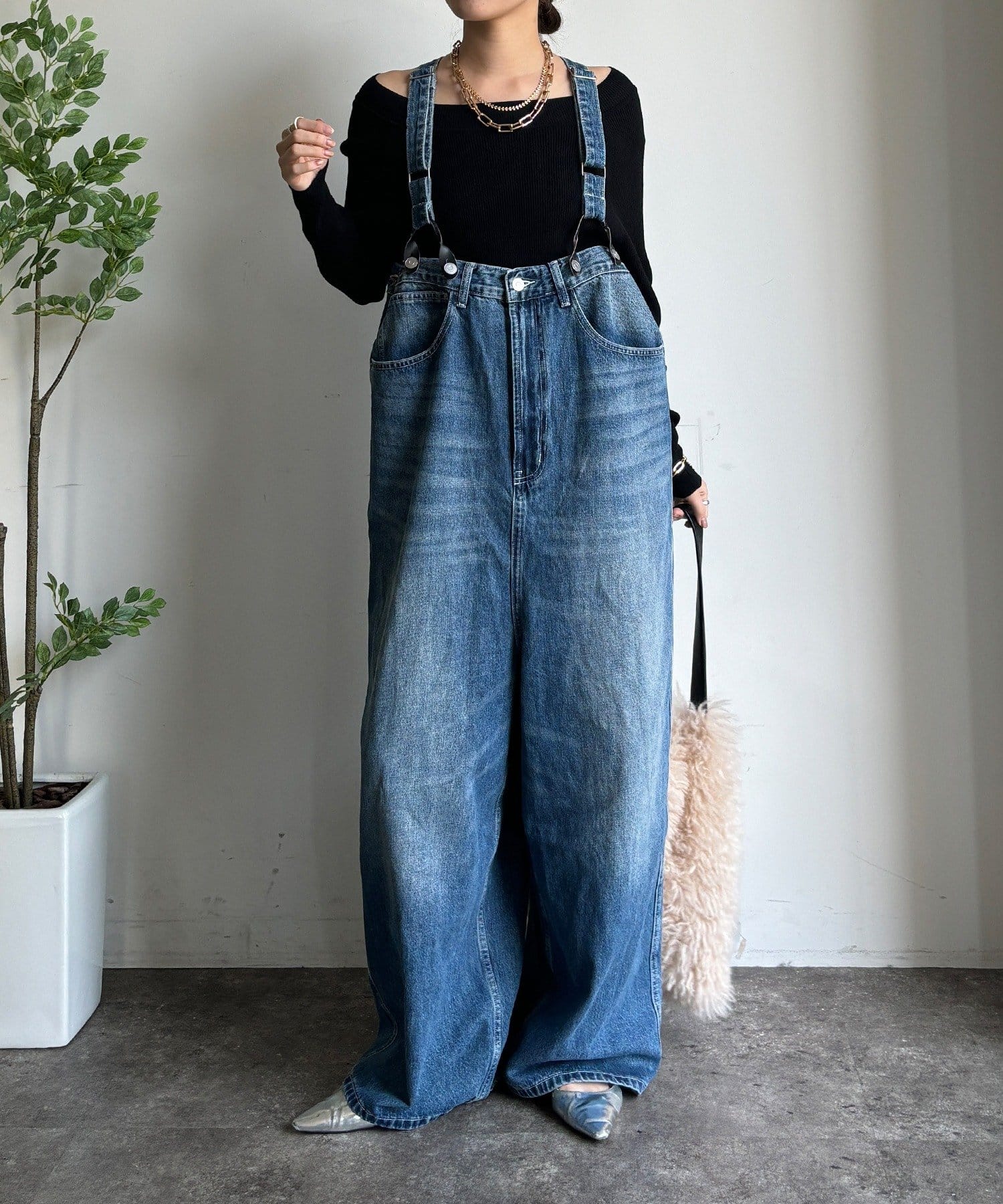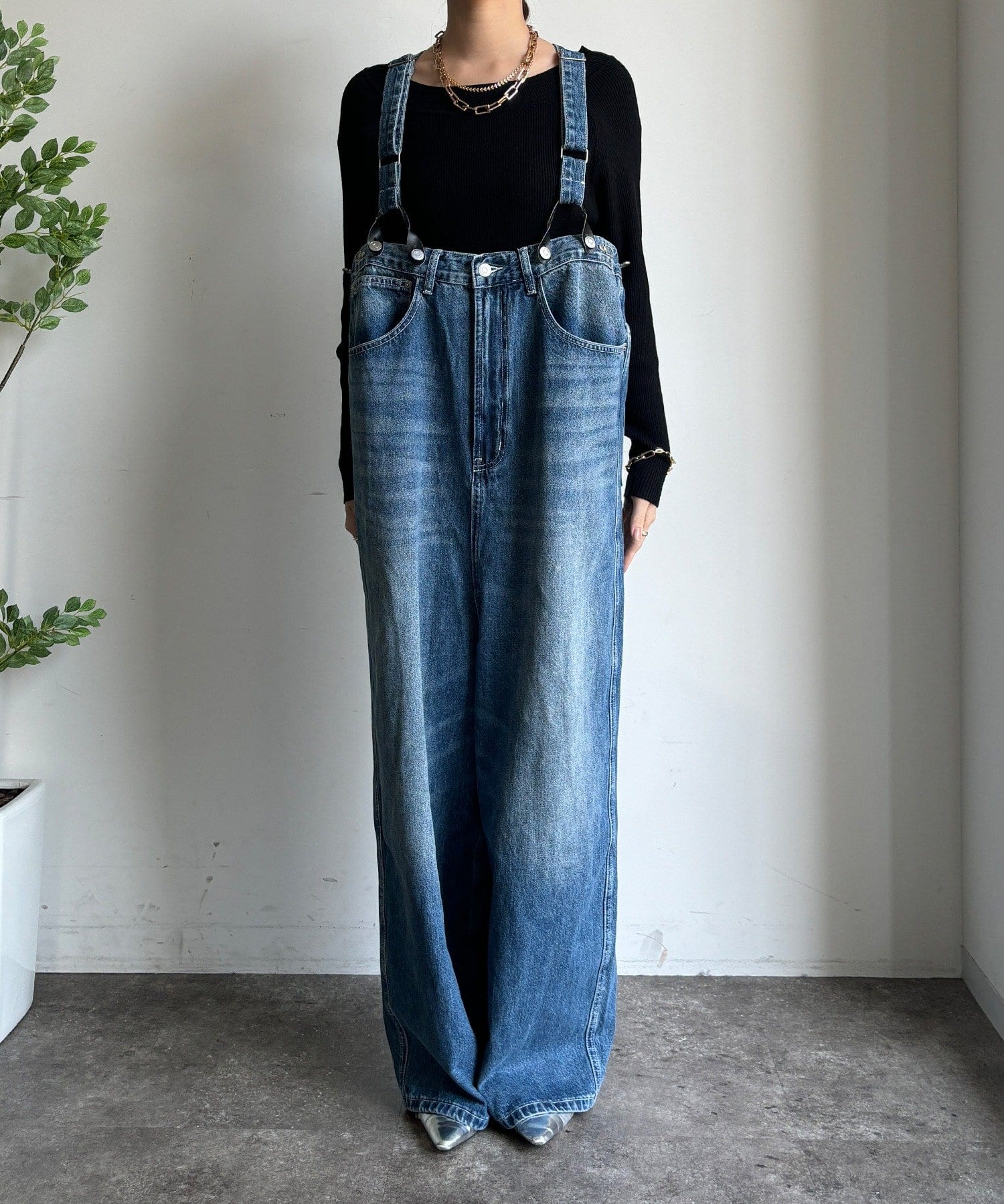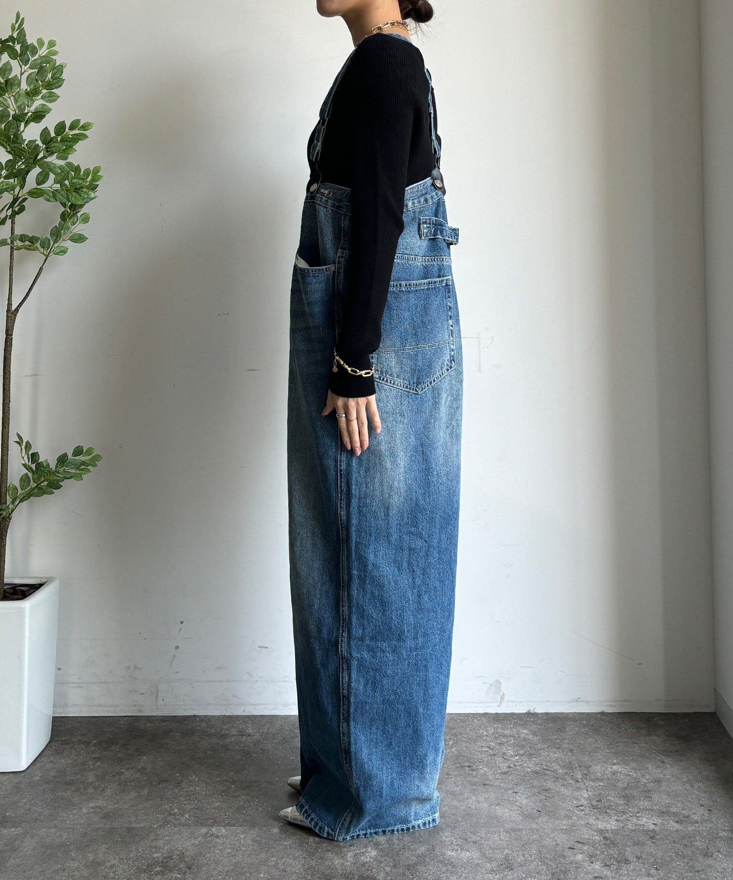 程よいヴィンテージ感と、たっぷりとしたワイドシルエットが魅力のサスペンダー付デニムサロペットが登場!
