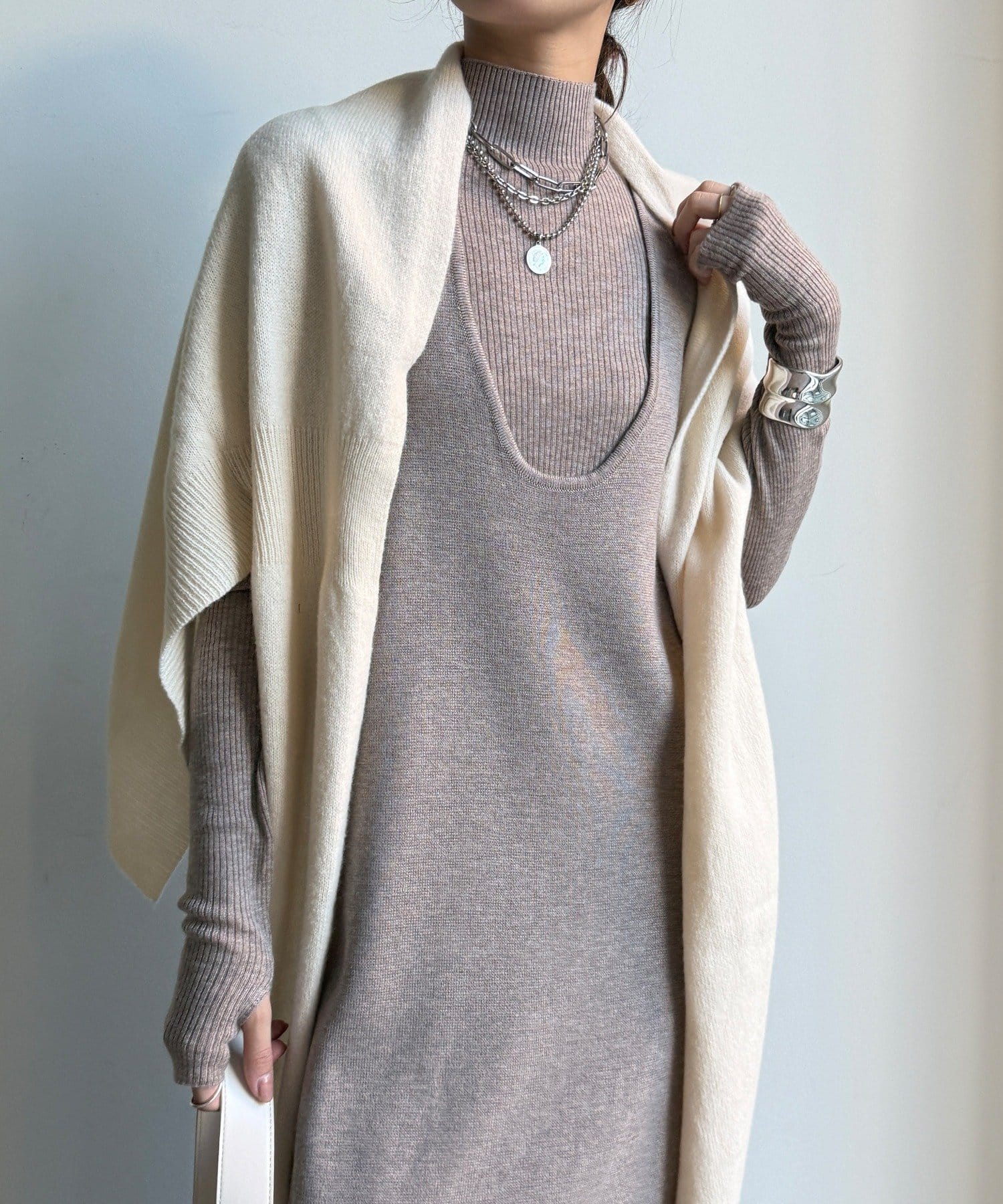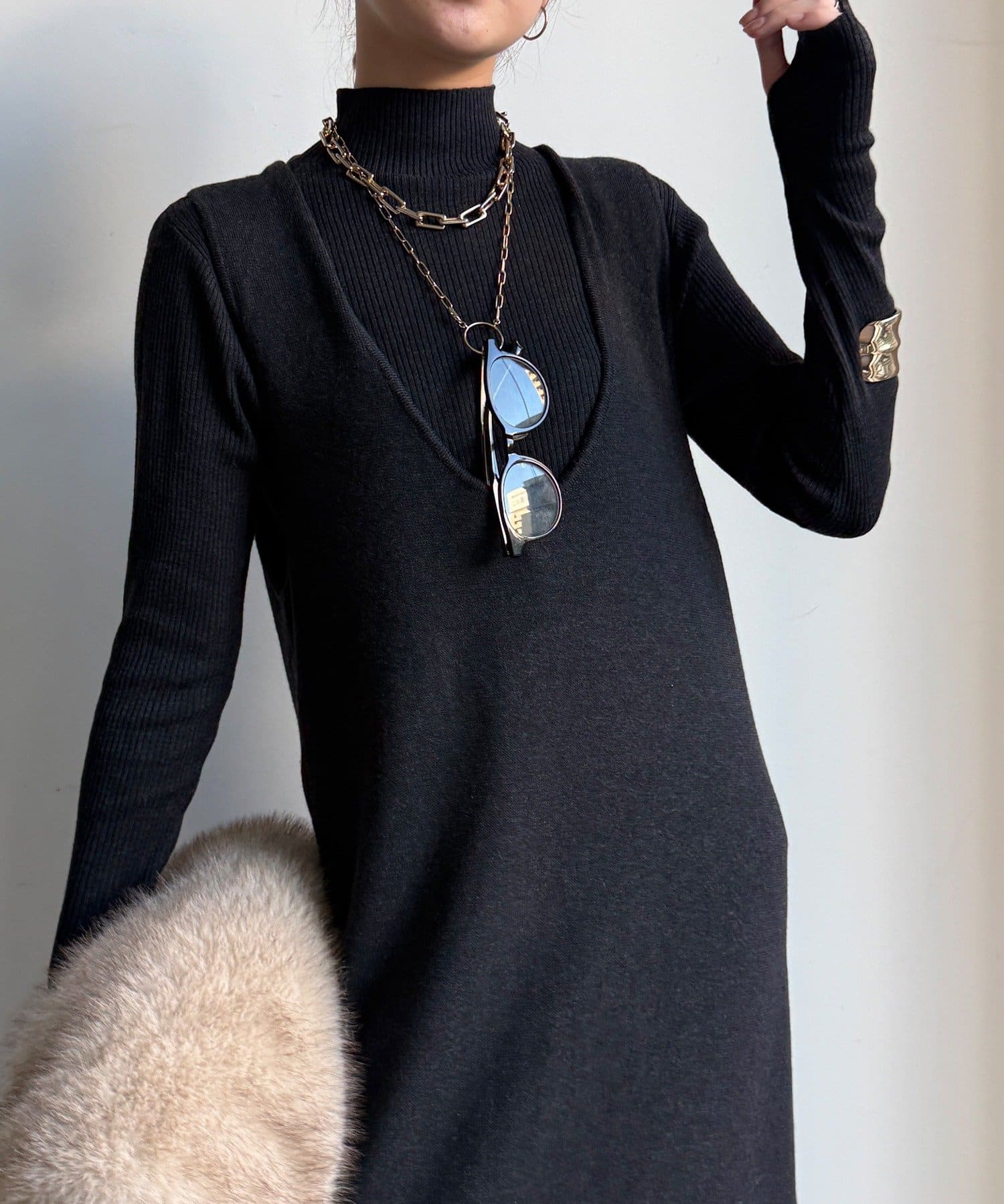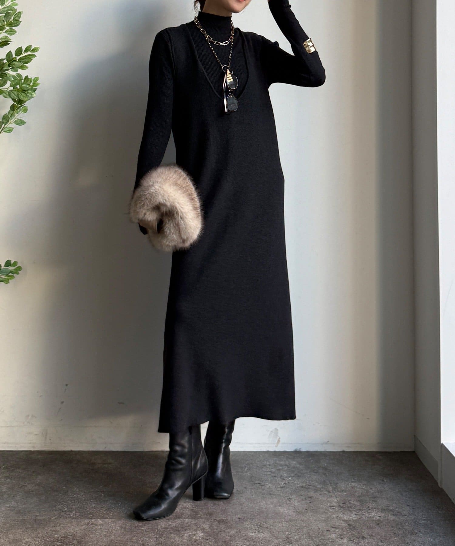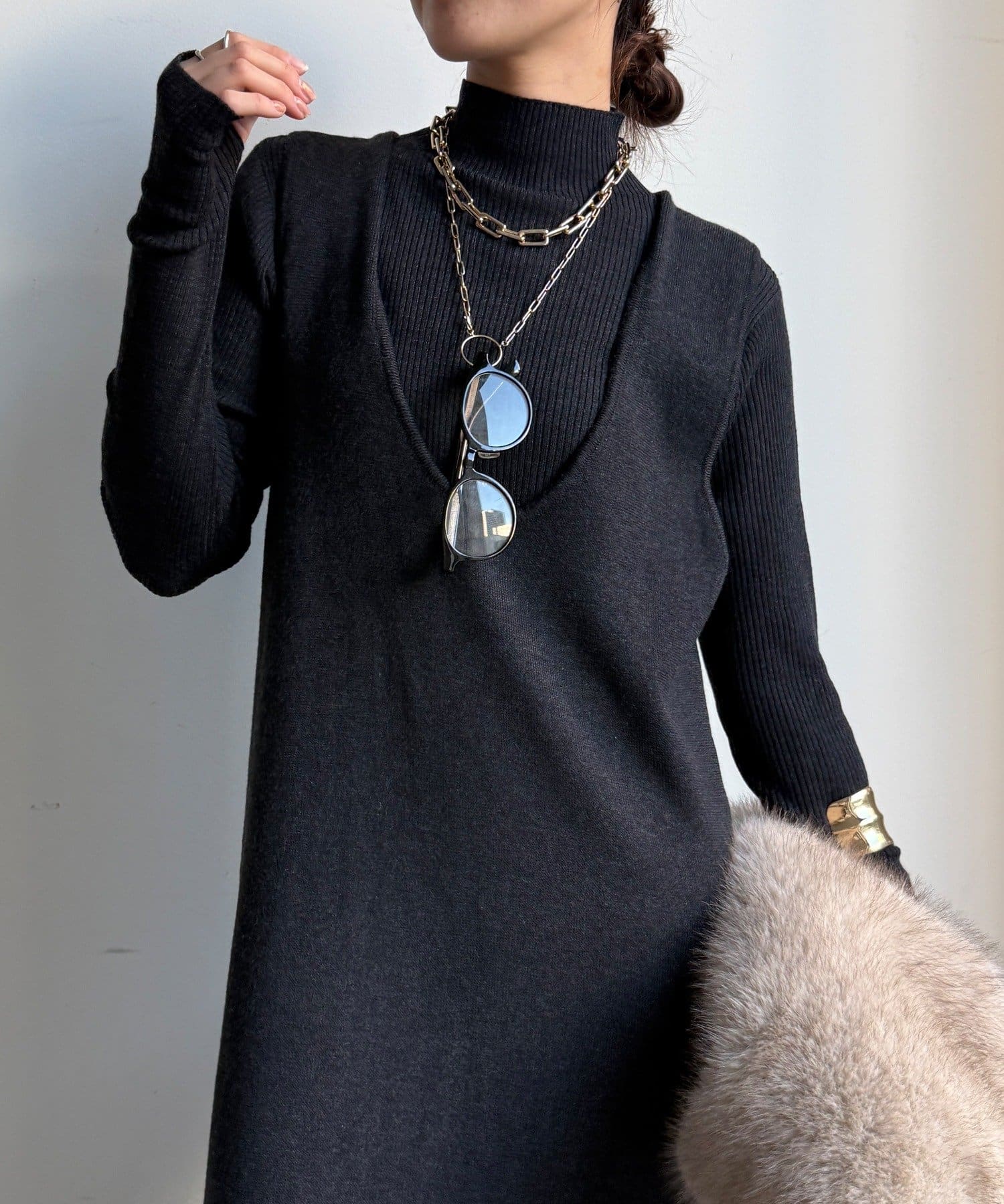 重ねるだけでスタイル完成。リブニット×Uネックワンピースセット
