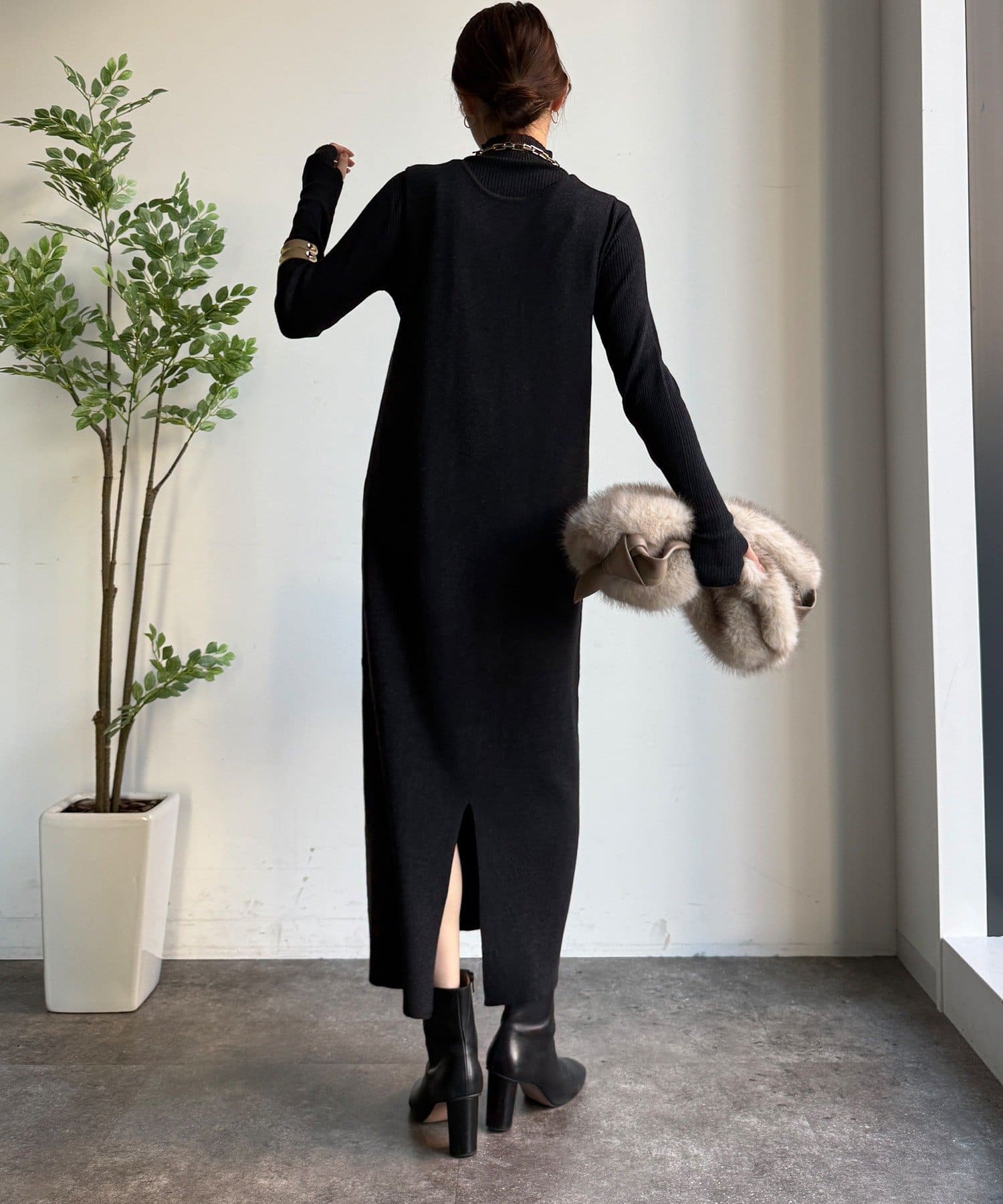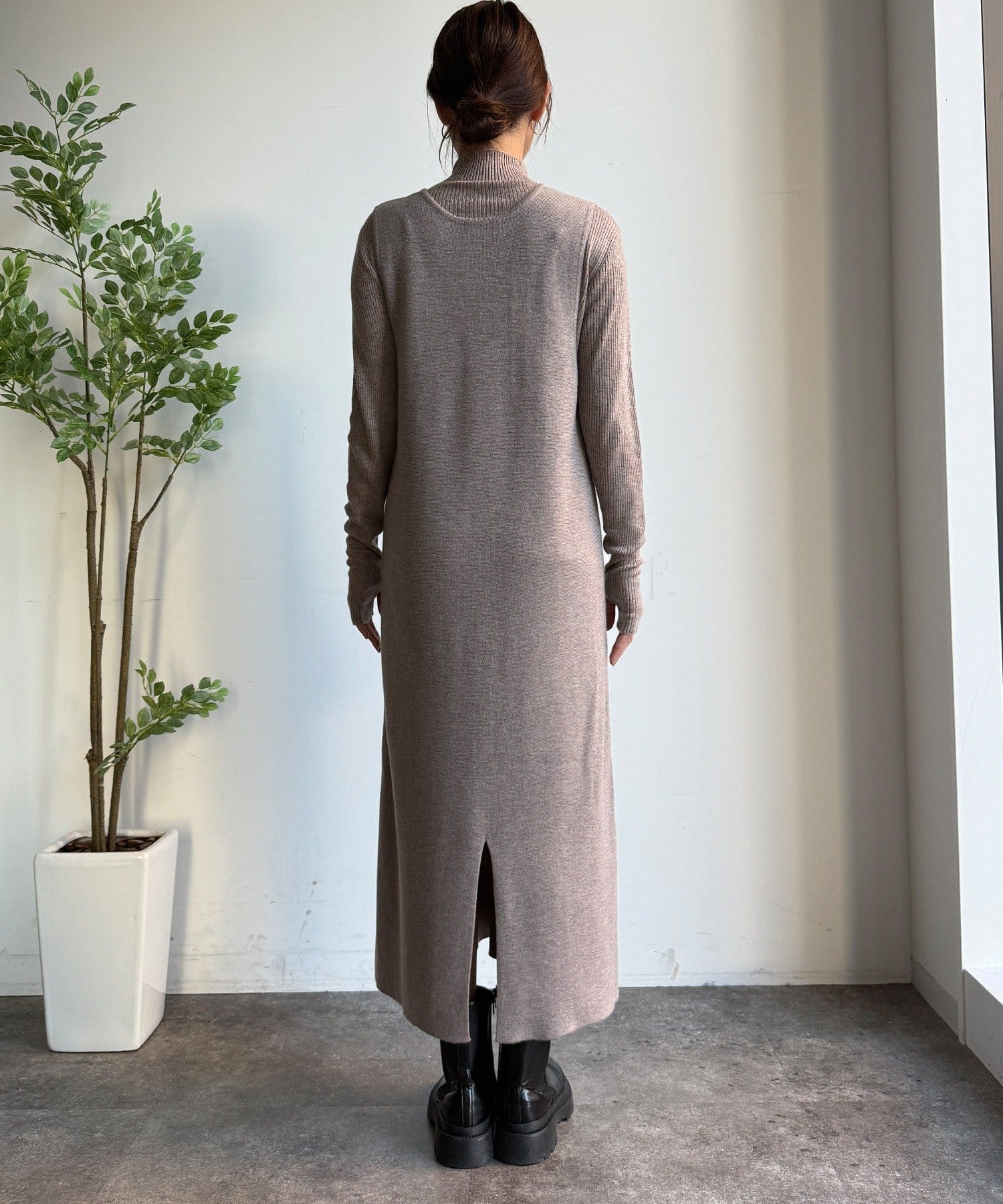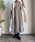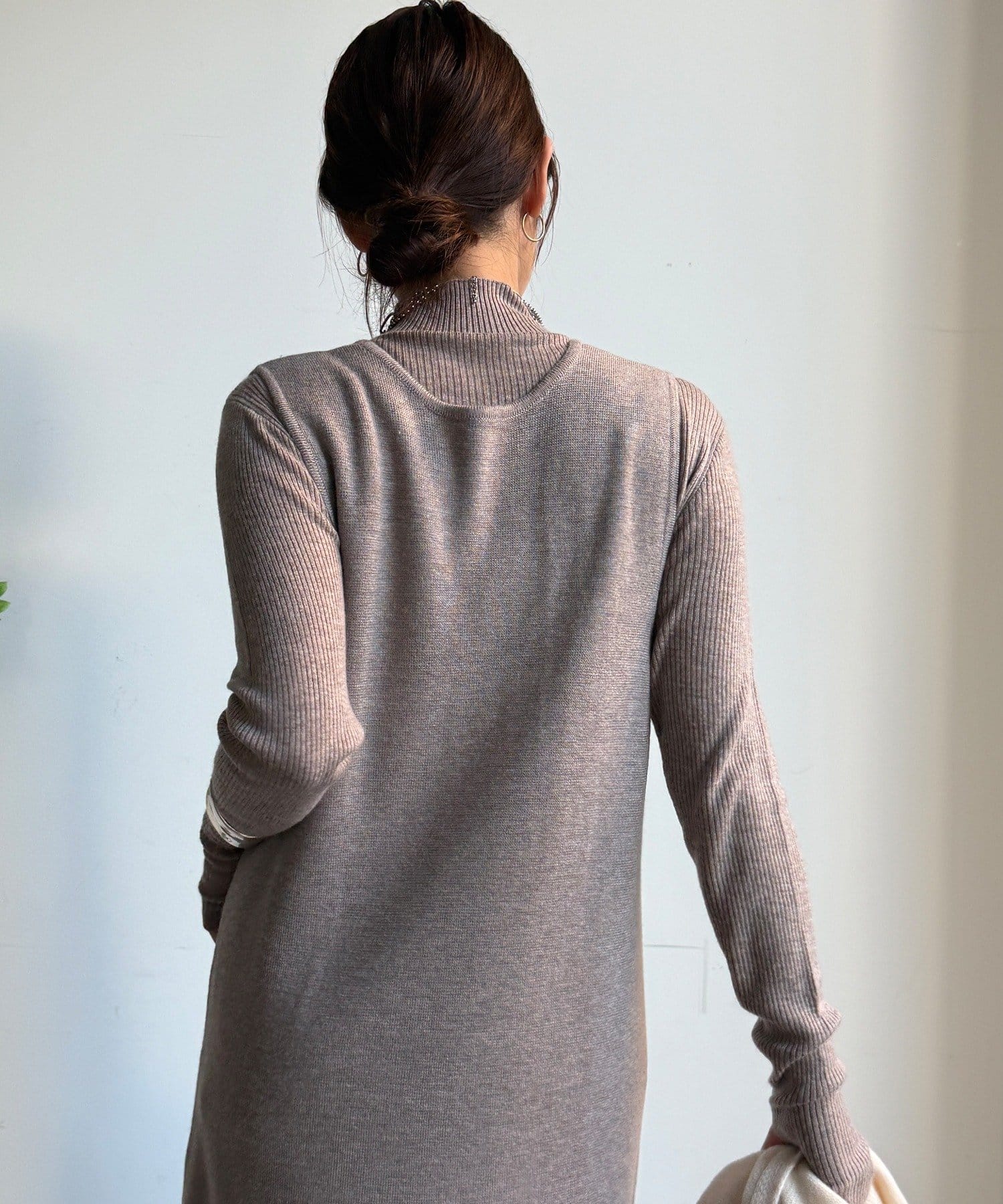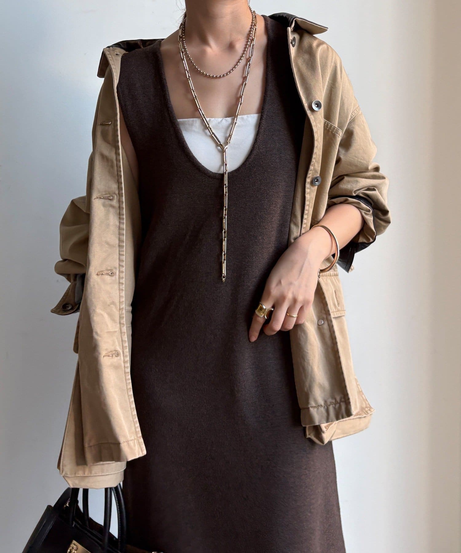 重ねるだけでスタイル完成。リブニット×Uネックワンピースセット