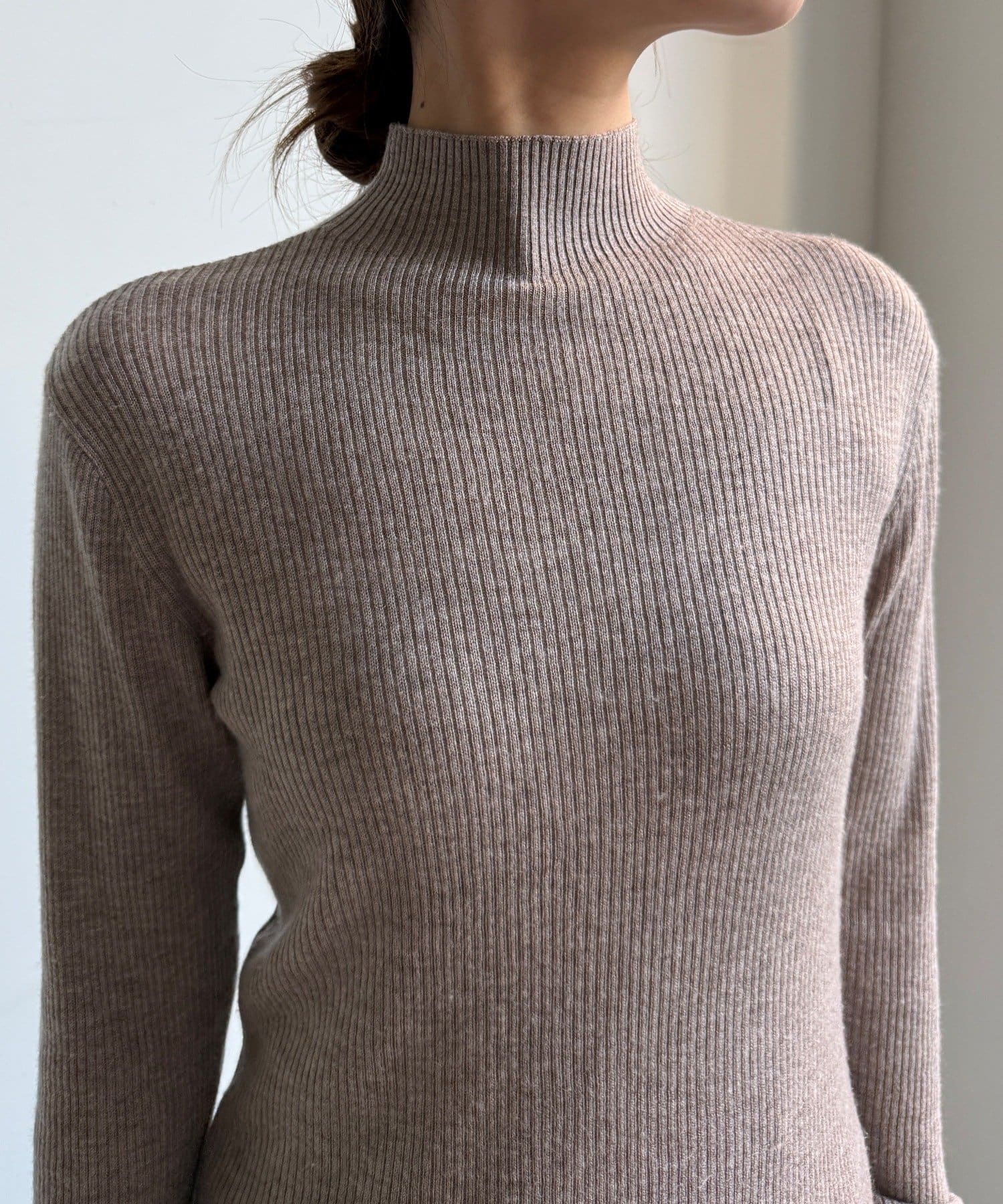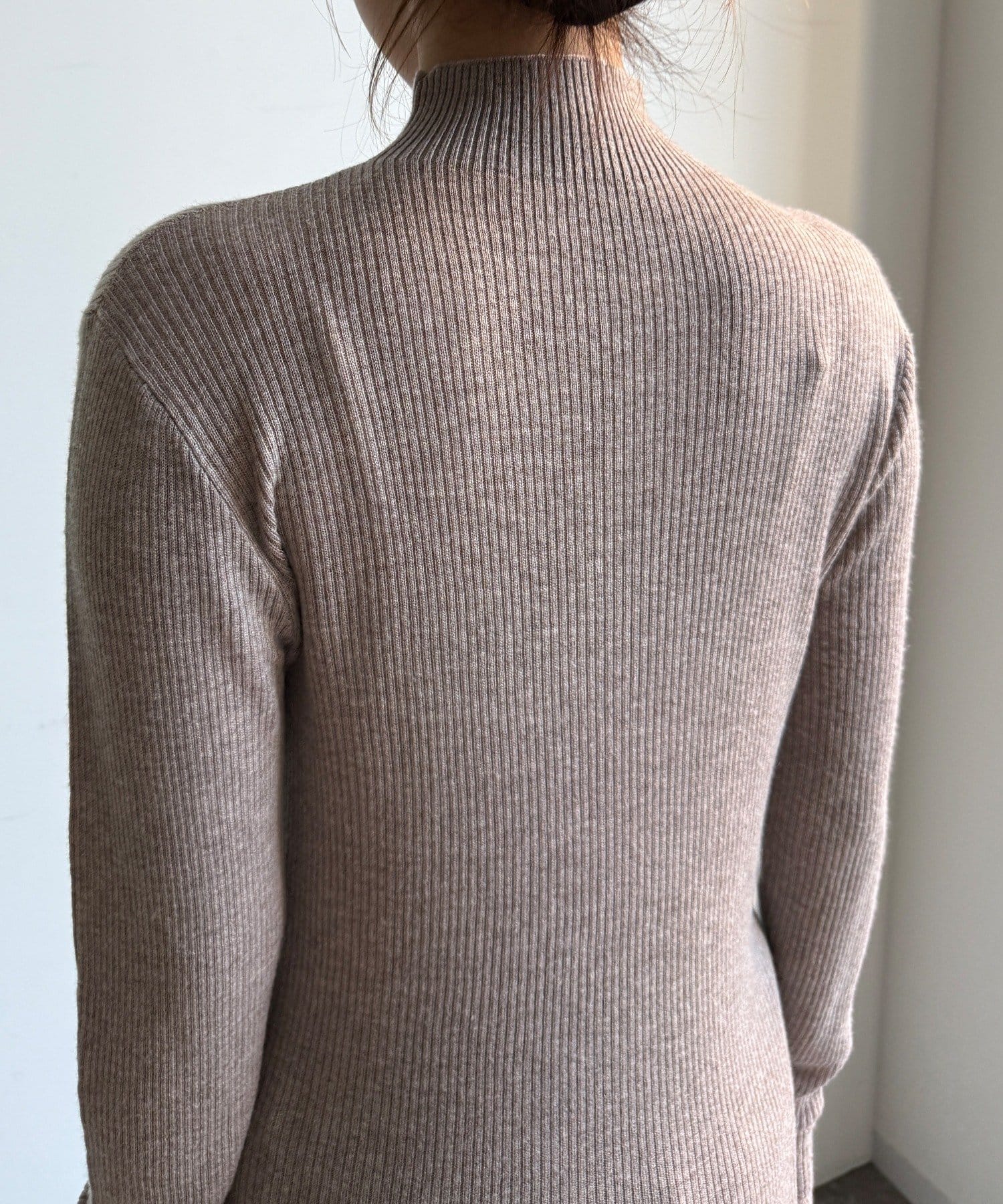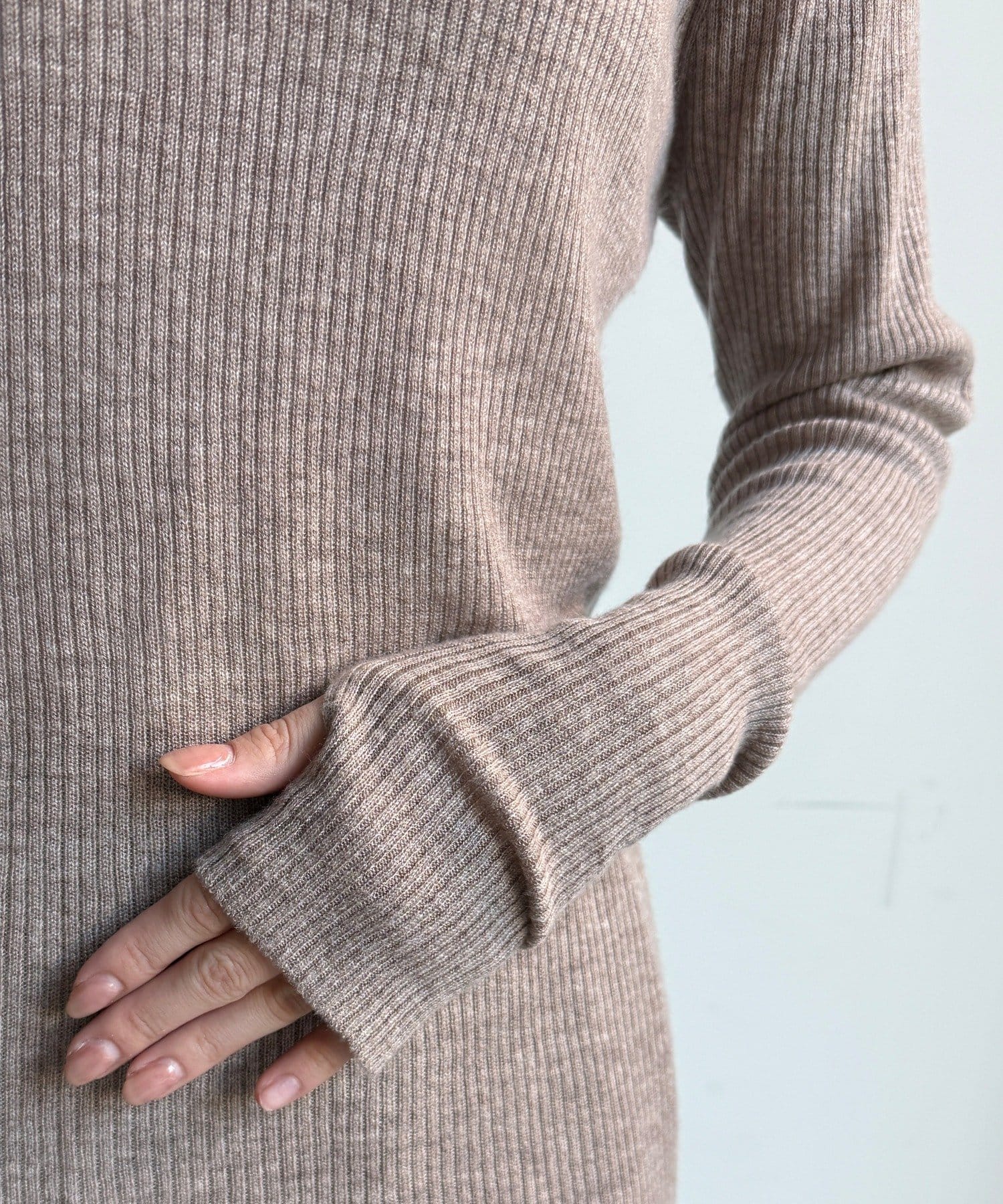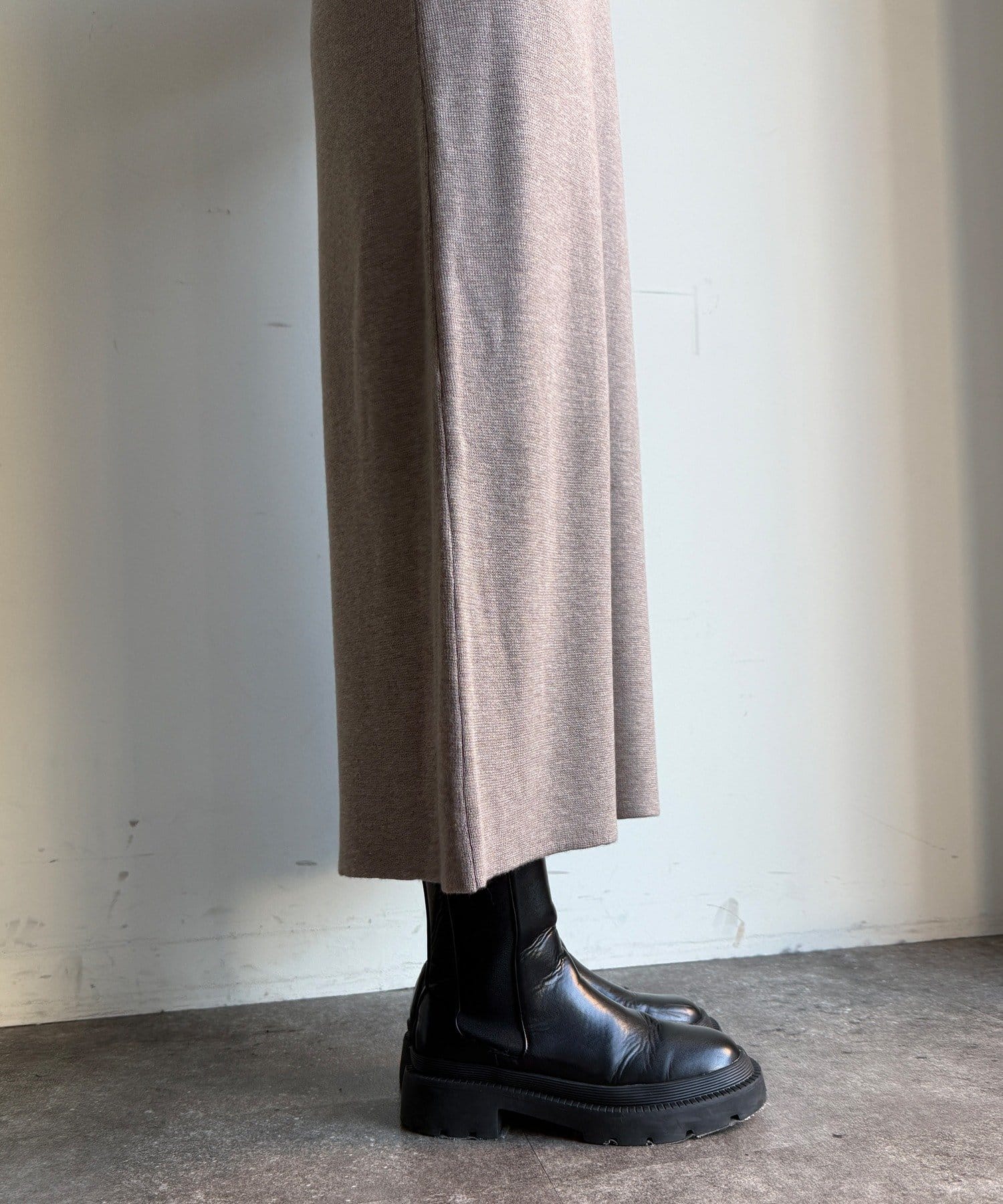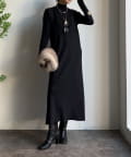 程よいフィット感のリブトップスと、ゆるやかに落ちるシルエットのワンピースを重ねた、大人のための上品レイヤードスタイルです。