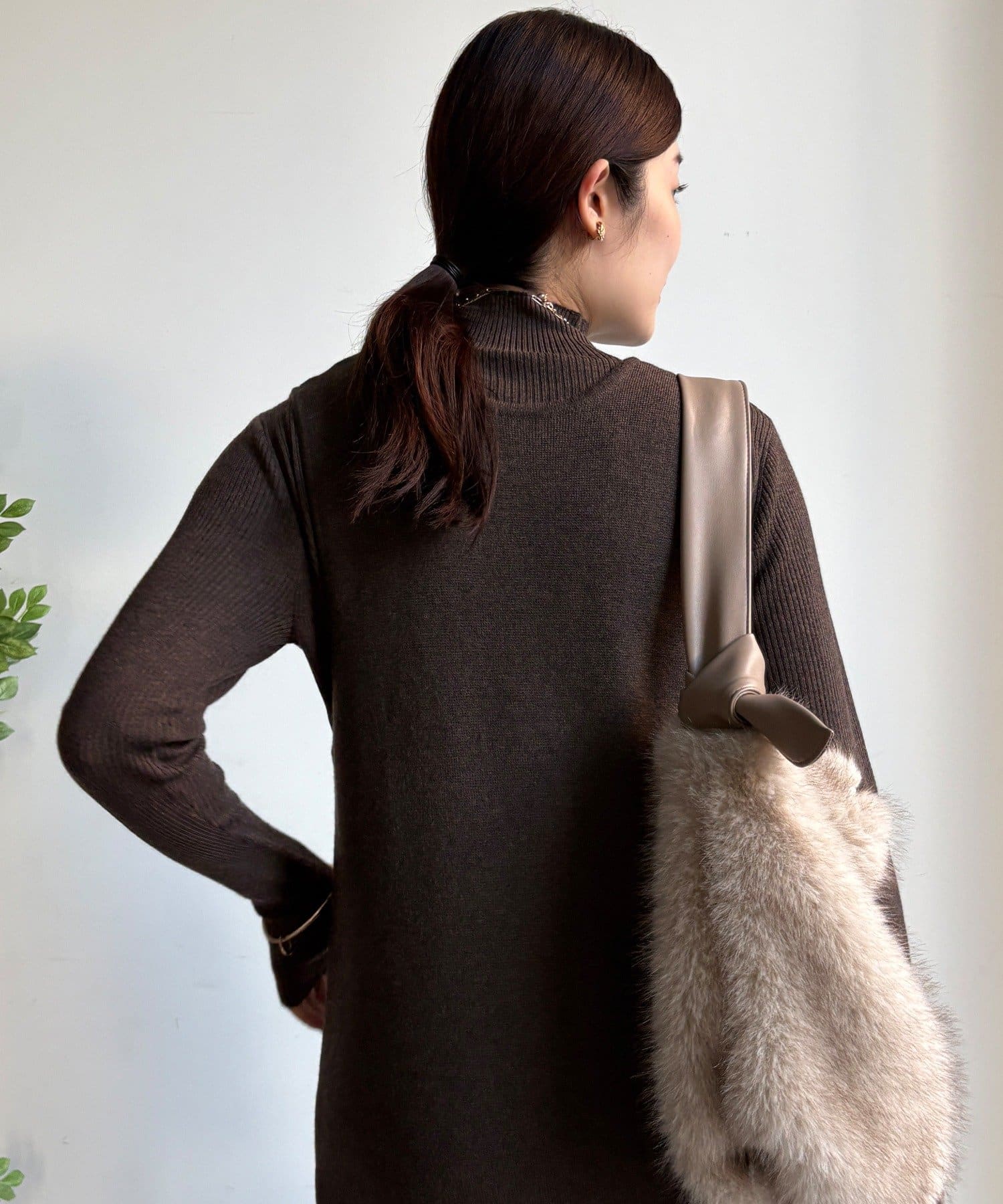 シンプルなのにぐっとおしゃれ見えする、リブニット+Uネックニットワンピースセットが登場!
