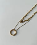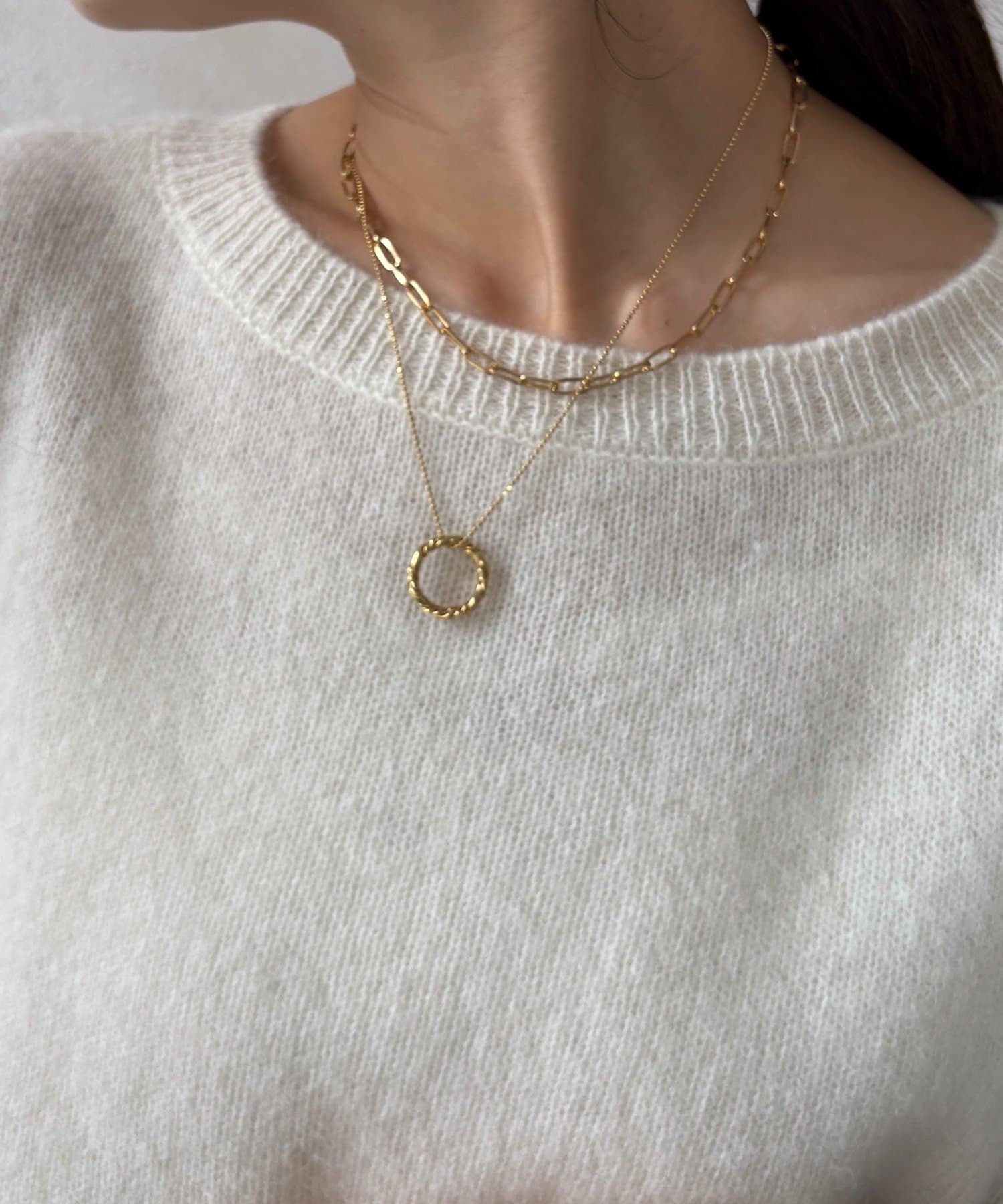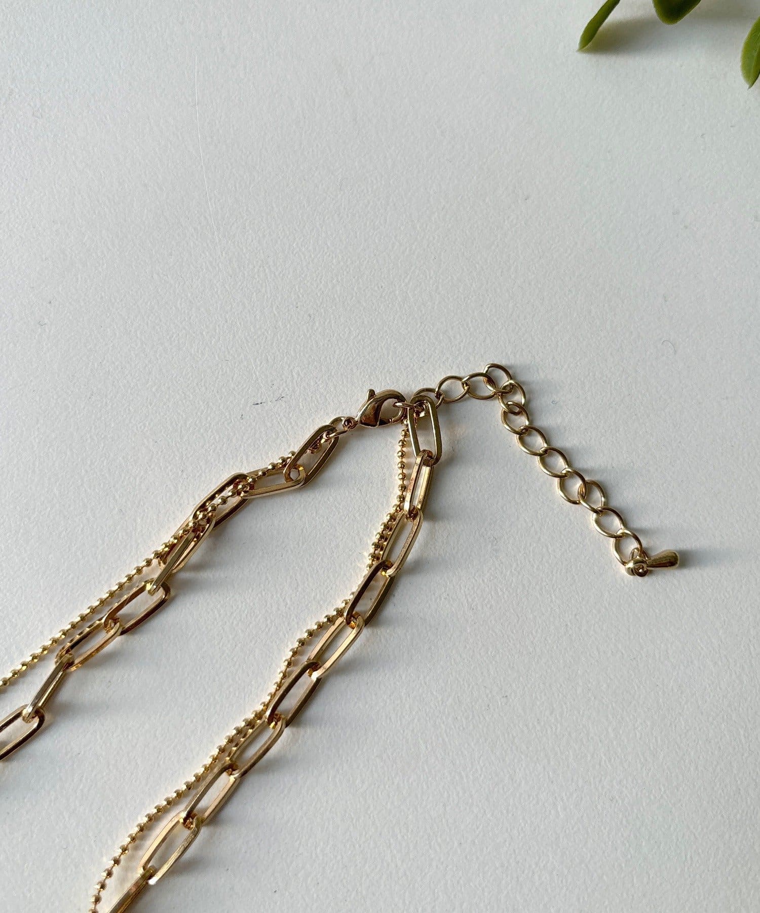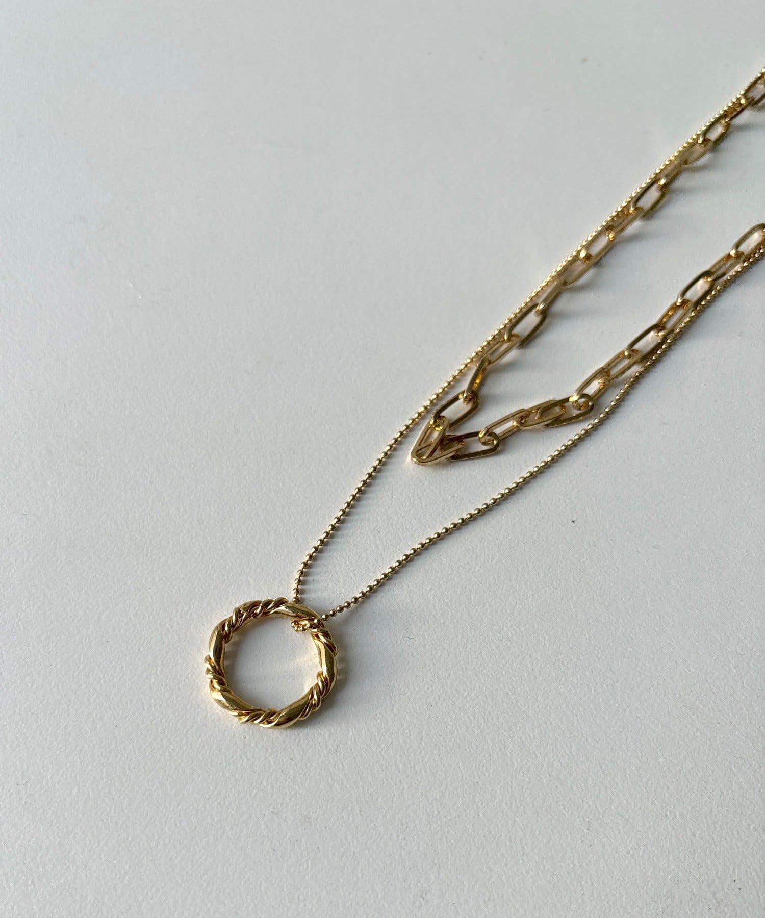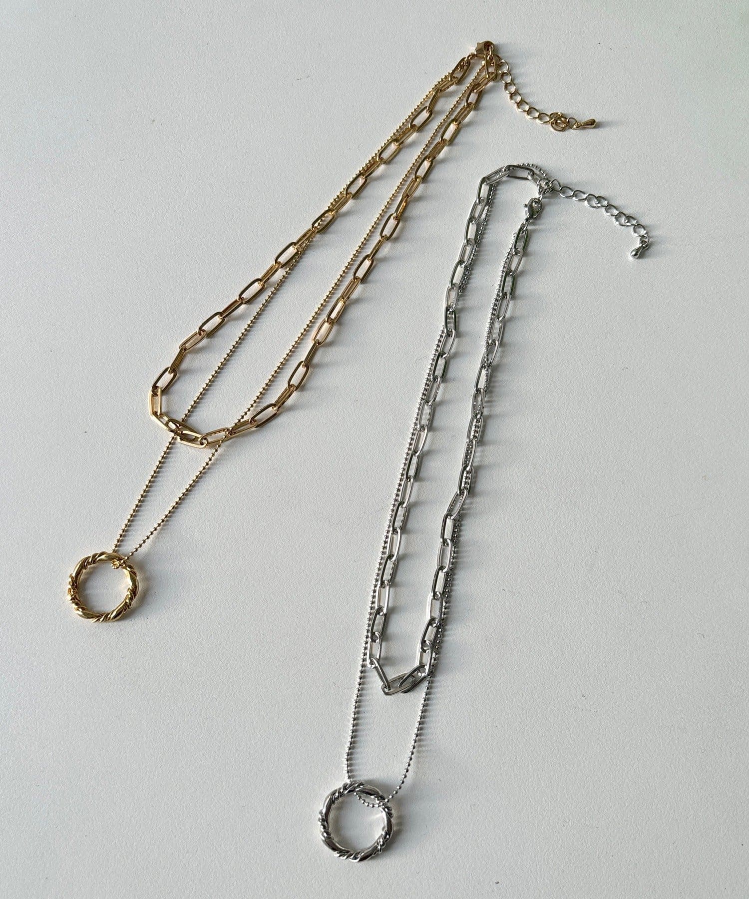 チェーンが織りなすレイヤードデザインが、デコルテを美しく彩るネックレスです。