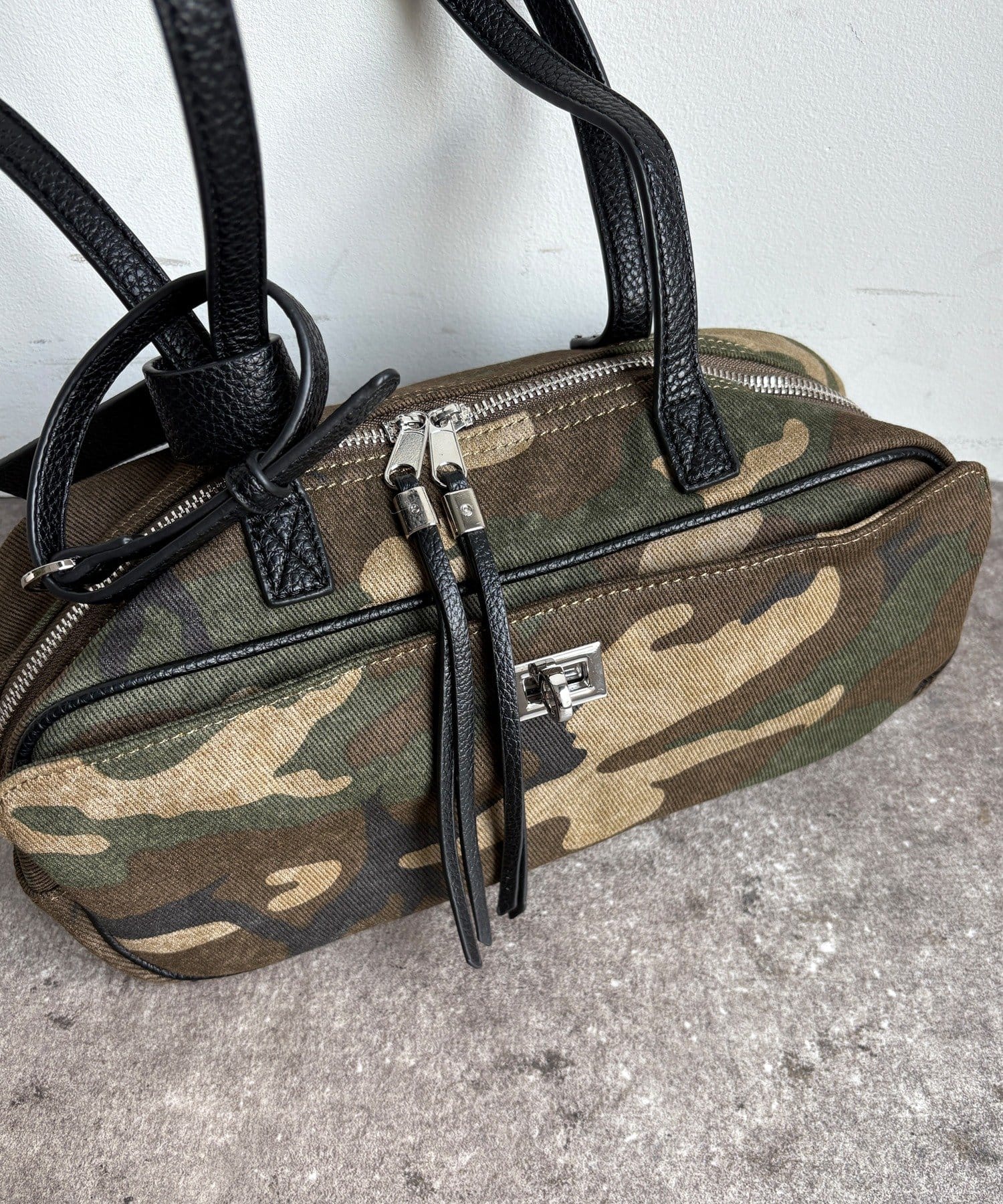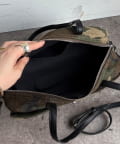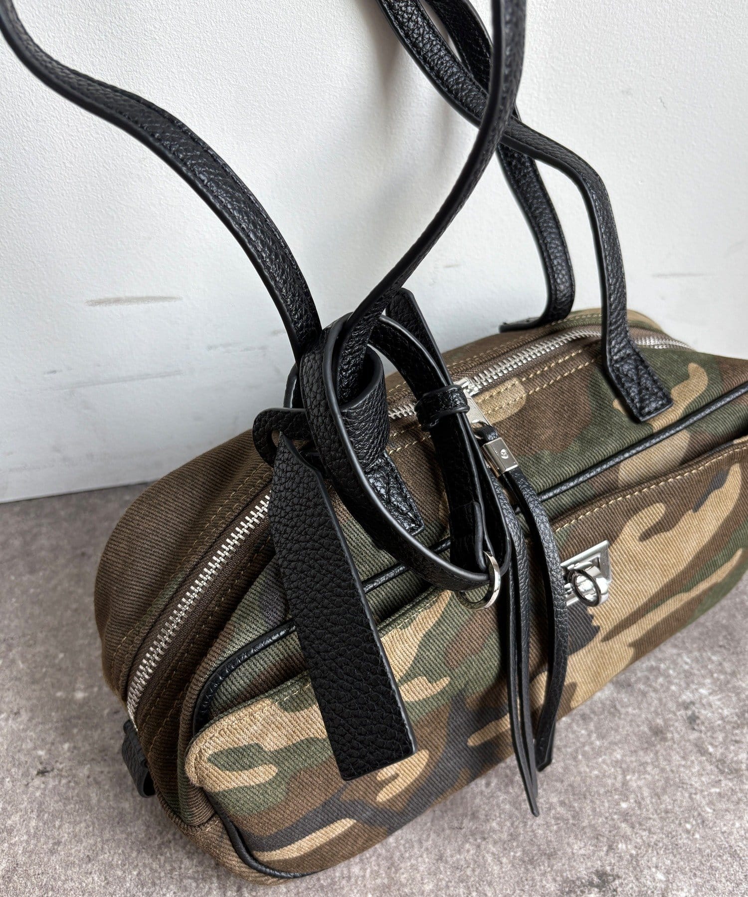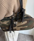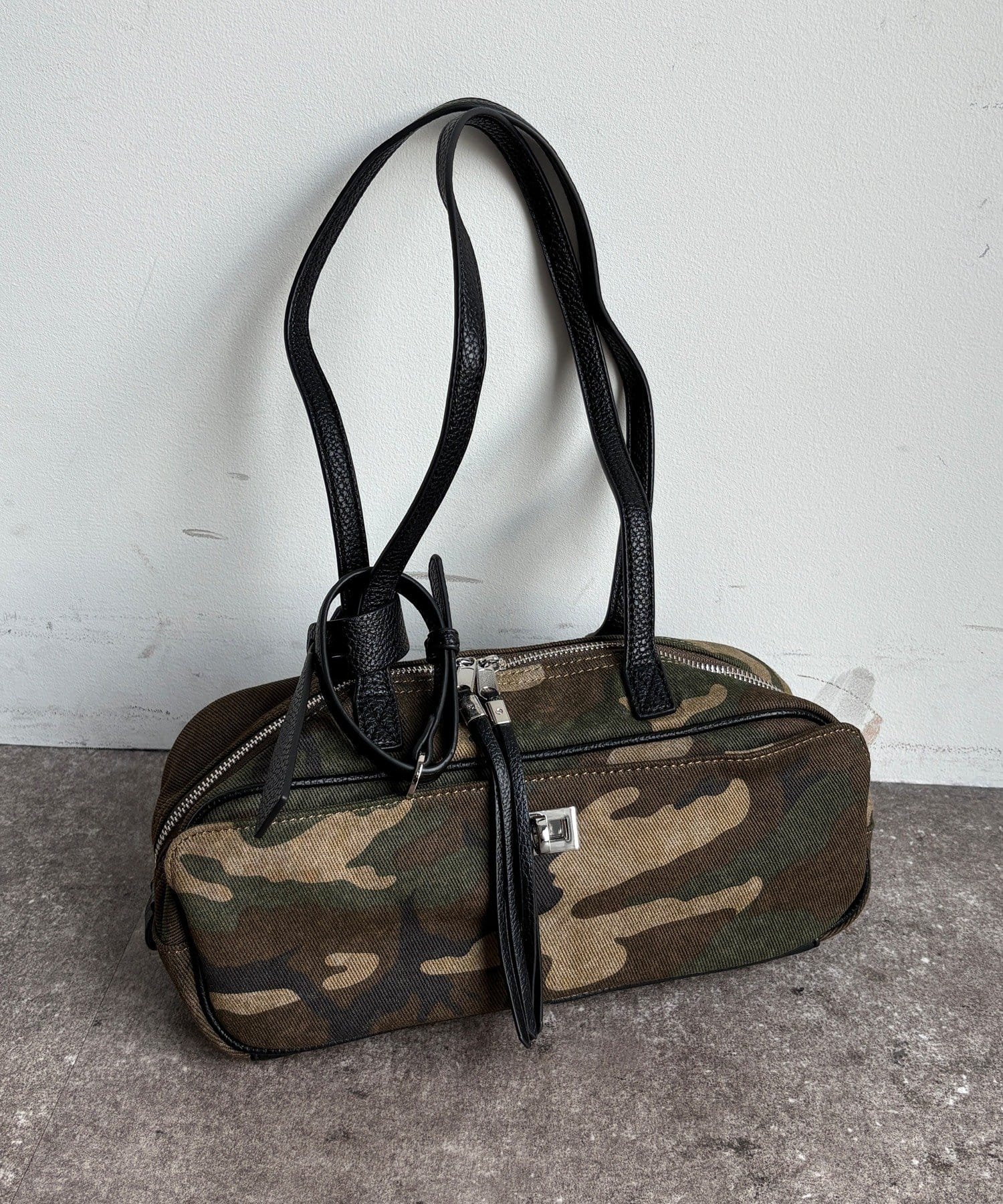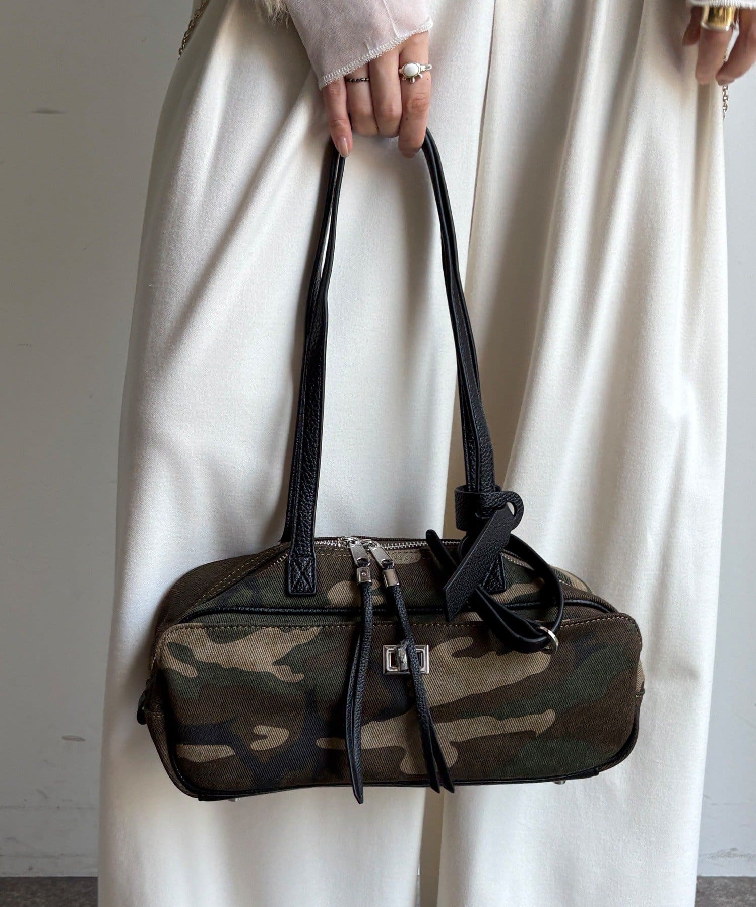程よくミリタリーテイストを取り入れた迷彩柄スクエアバッグ。