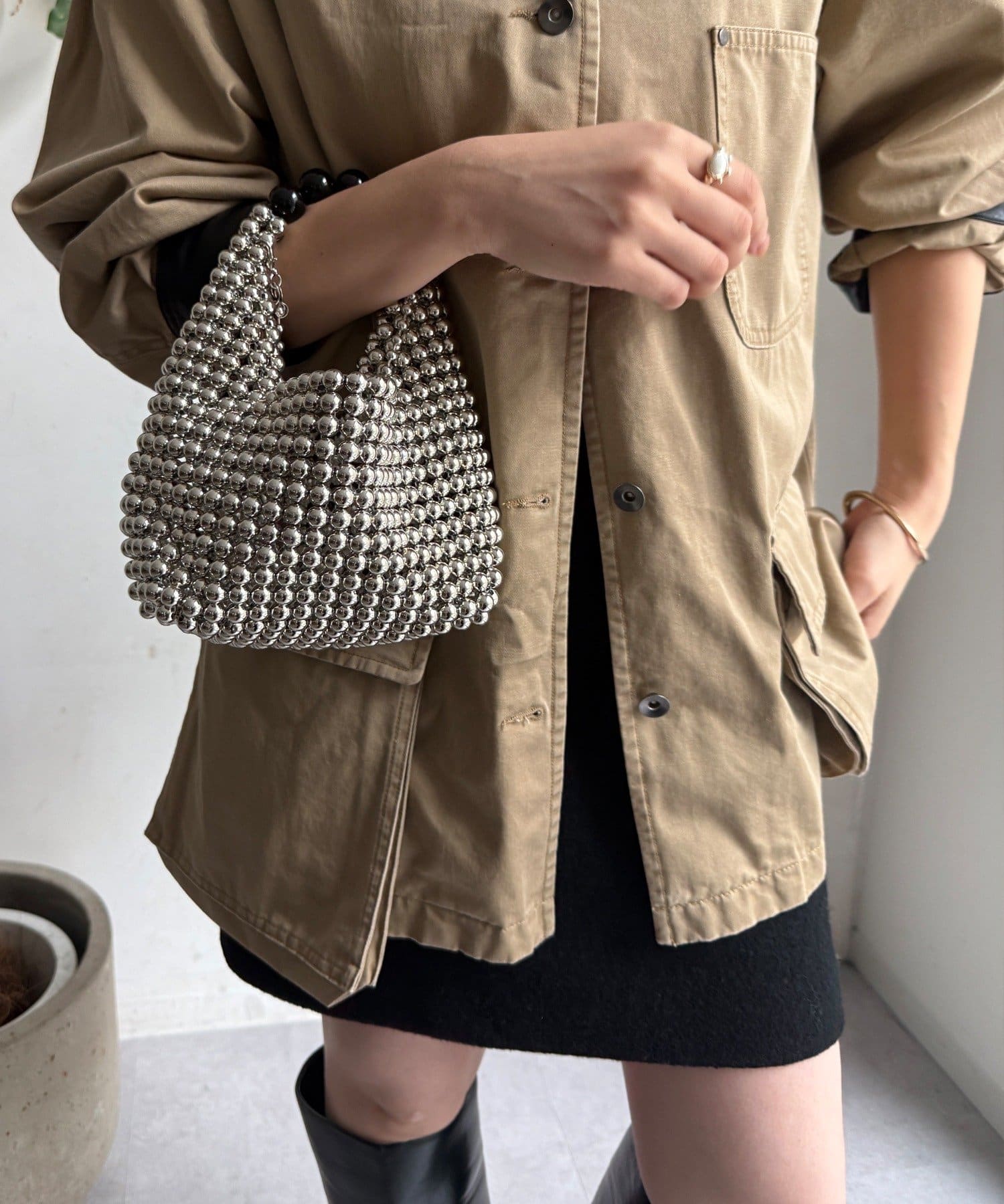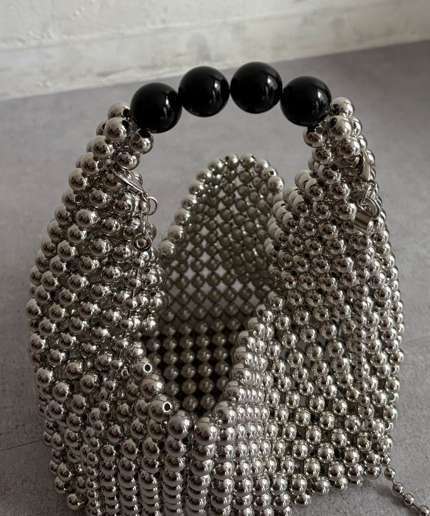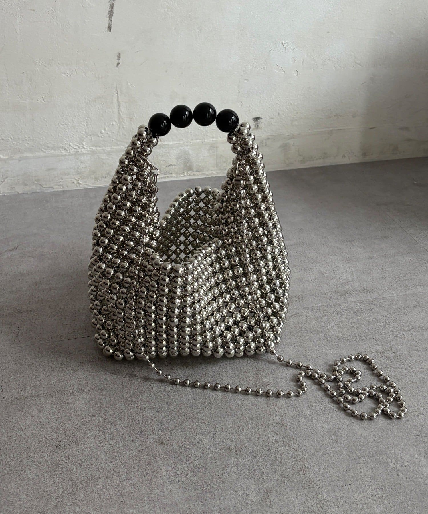 メタルビーズが上品な輝きを放ち、メタリックな質感と柔らかなフォルムが融合し、存在感を放ちます。