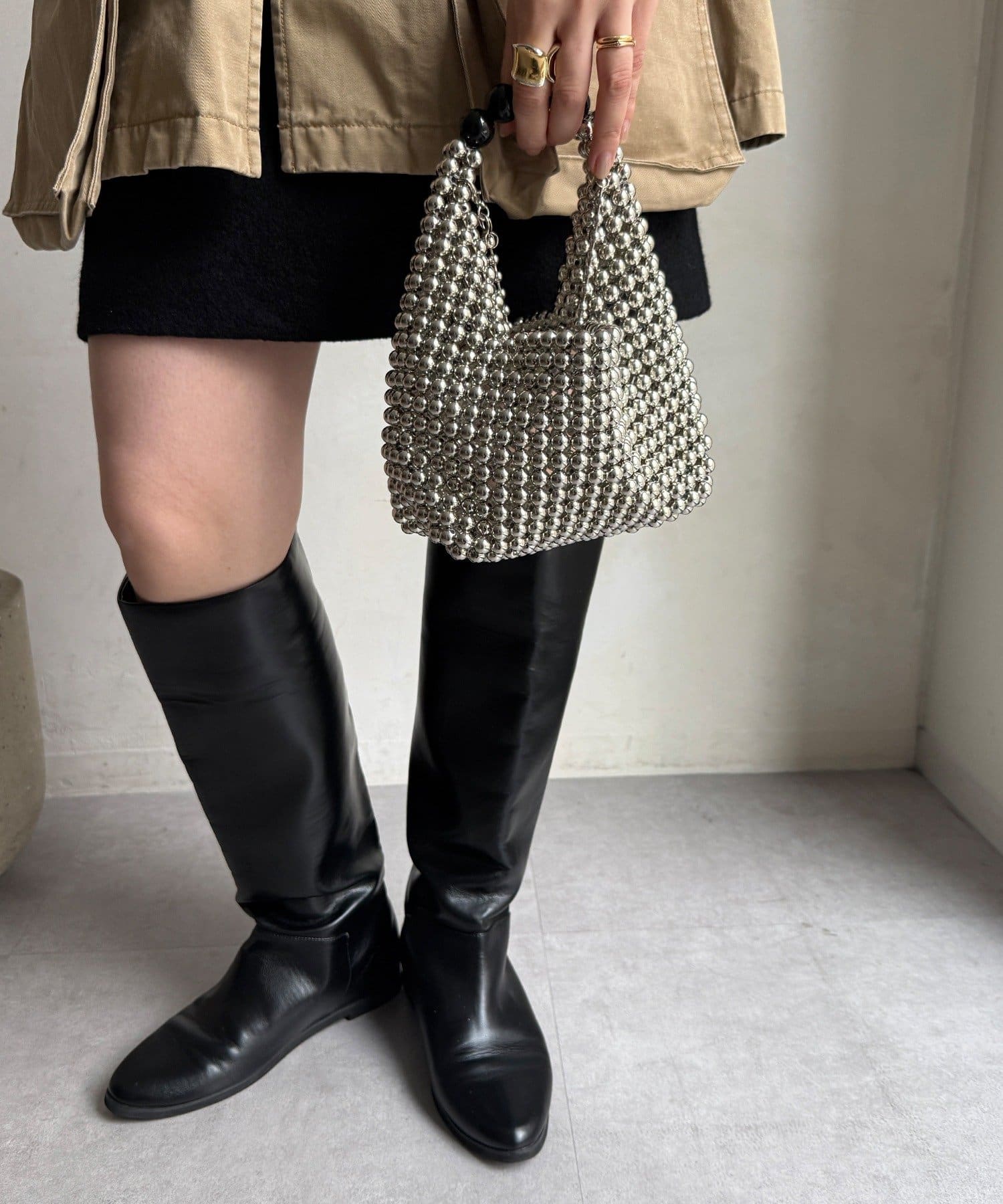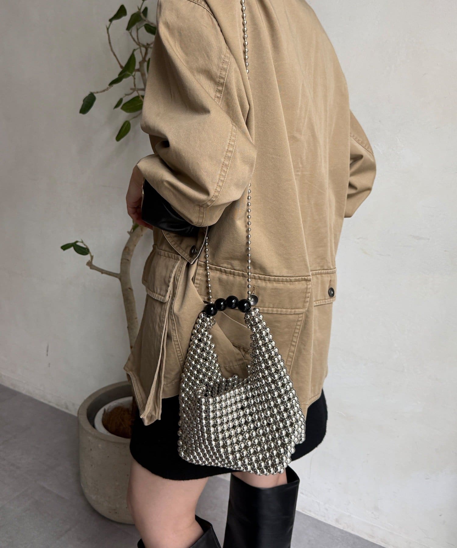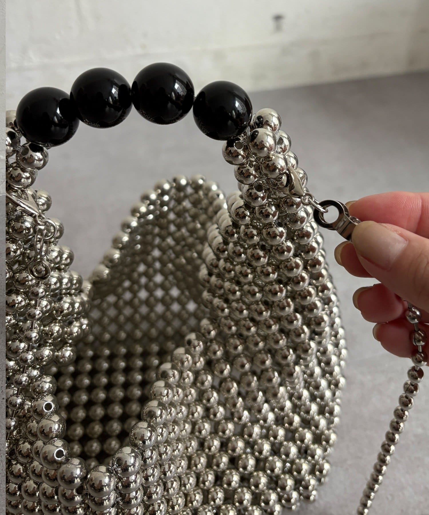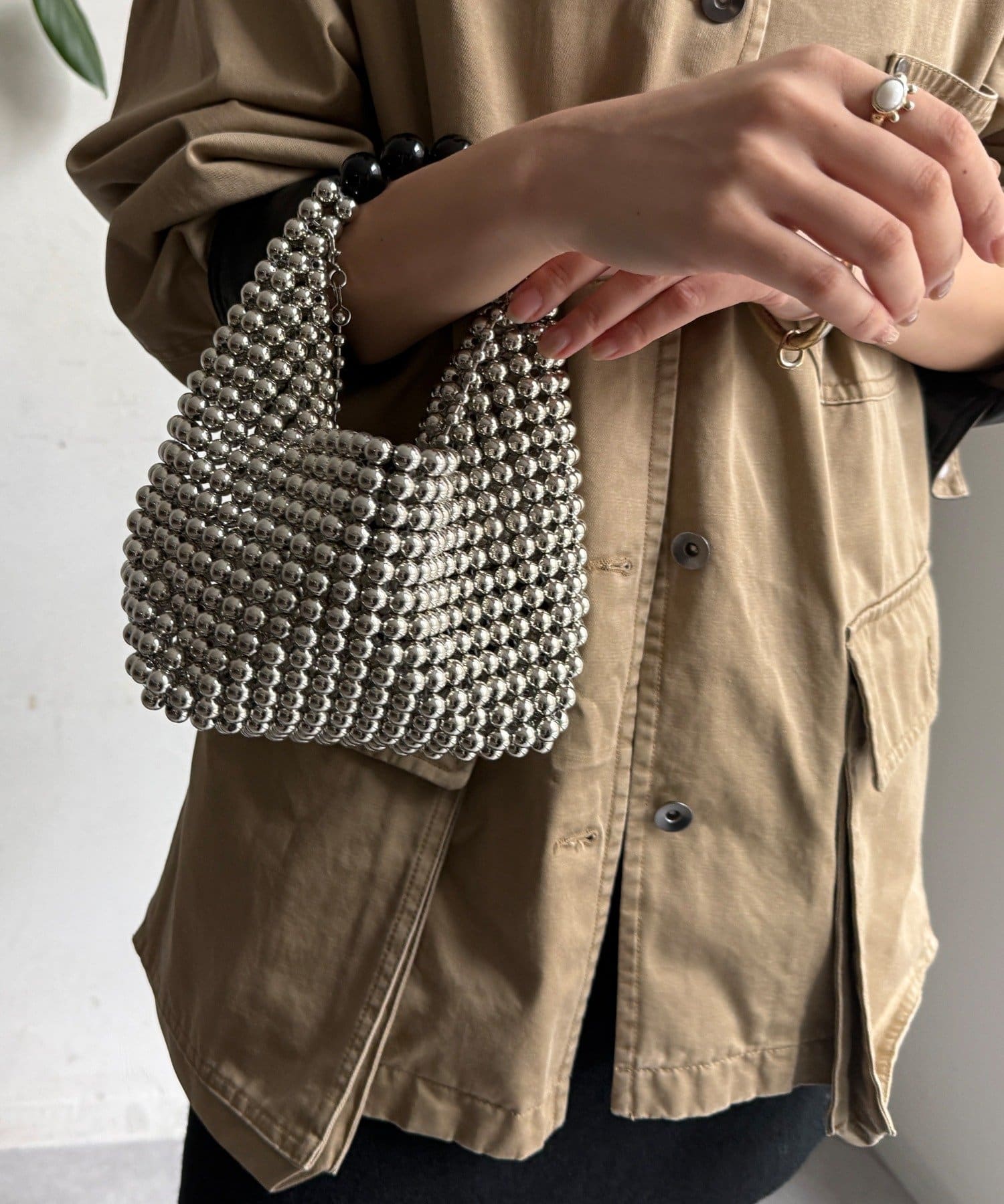 メタルビーズが上品な輝きを放ち、メタリックな質感と柔らかなフォルムが融合し、存在感を放ちます。