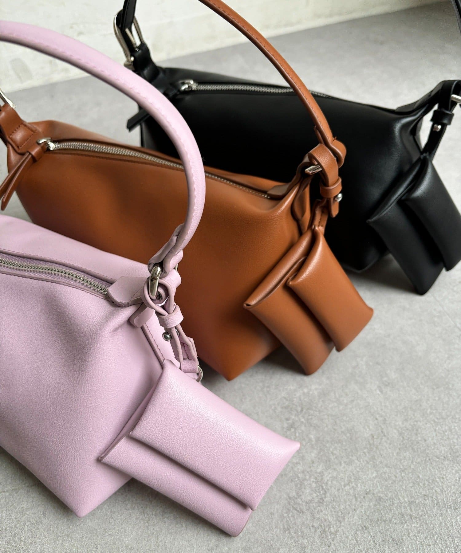 ミニポーチ付でリップや鍵など、すぐに取り出したい小物を入れるのに便利です!