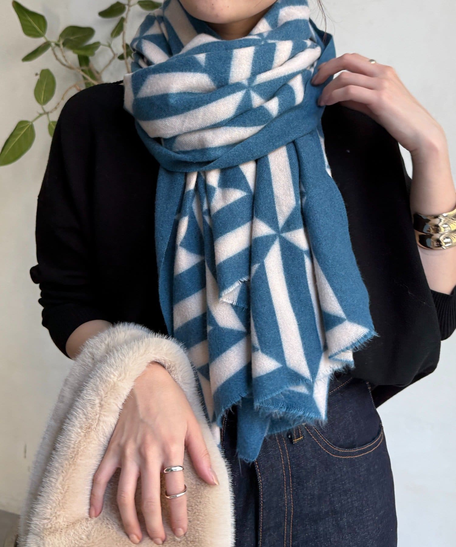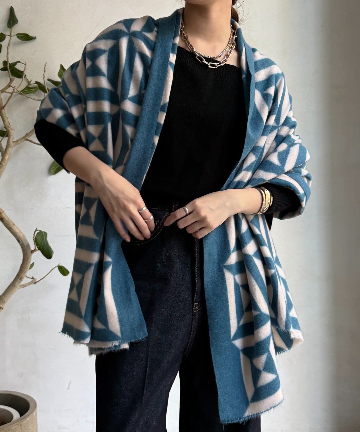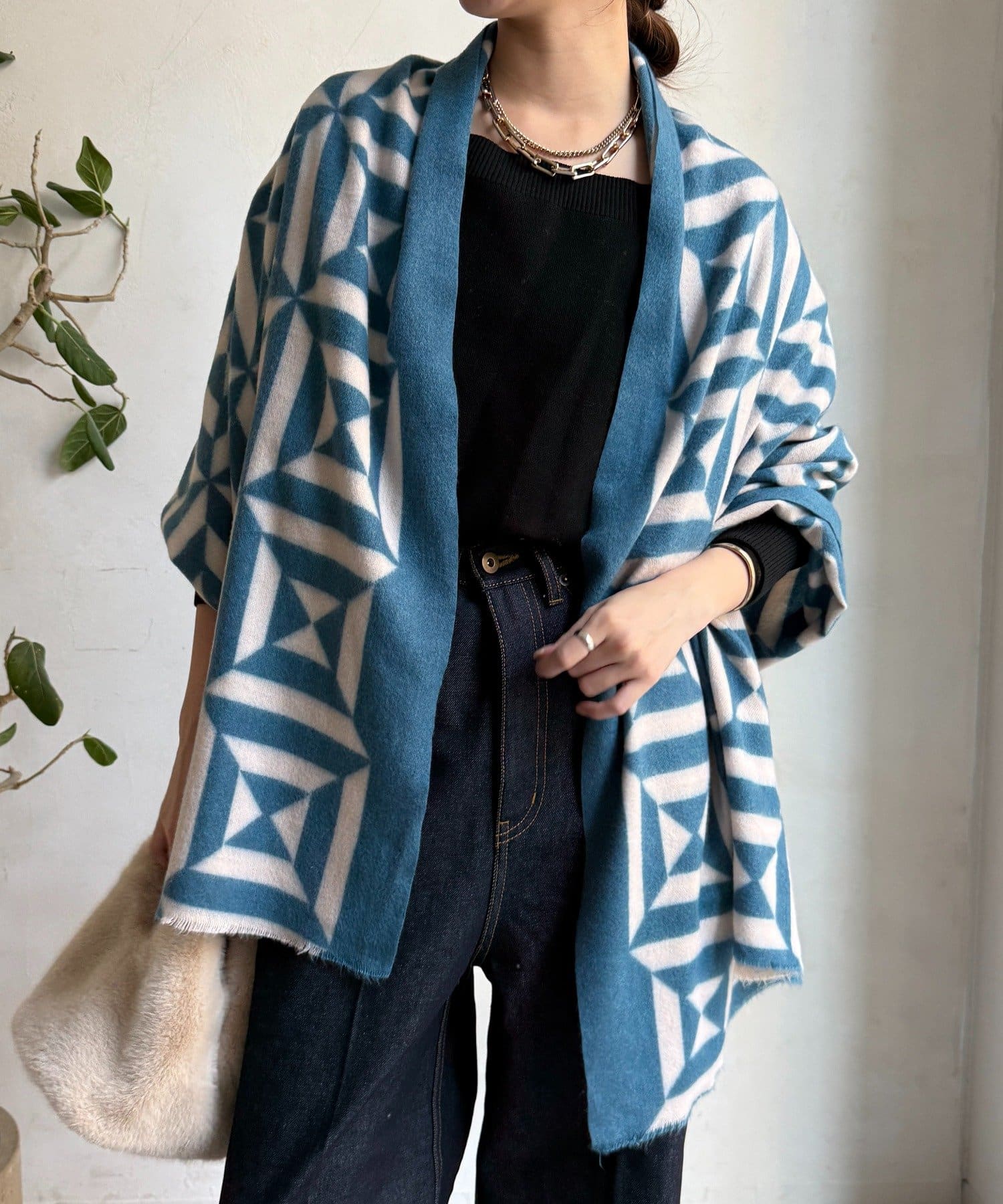 一枚で華やぐ、幾何学モダンストール