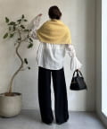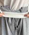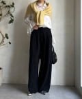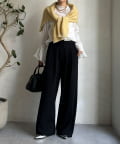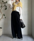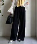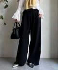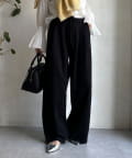 最大の特徴はレイヤード風にみえるダブルウエストデザイン。ウエスト部分の切り替えがシンプルなニットパンツにこなれたアクセントを加えています。