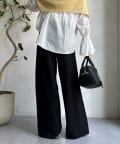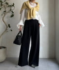 脚のラインを拾いにくいワイドなストレートシルエットとヒップ周りのすっきりとしたデザインが、リラックス感ありながらもだらしなく見えない、大人のバランスを実現。