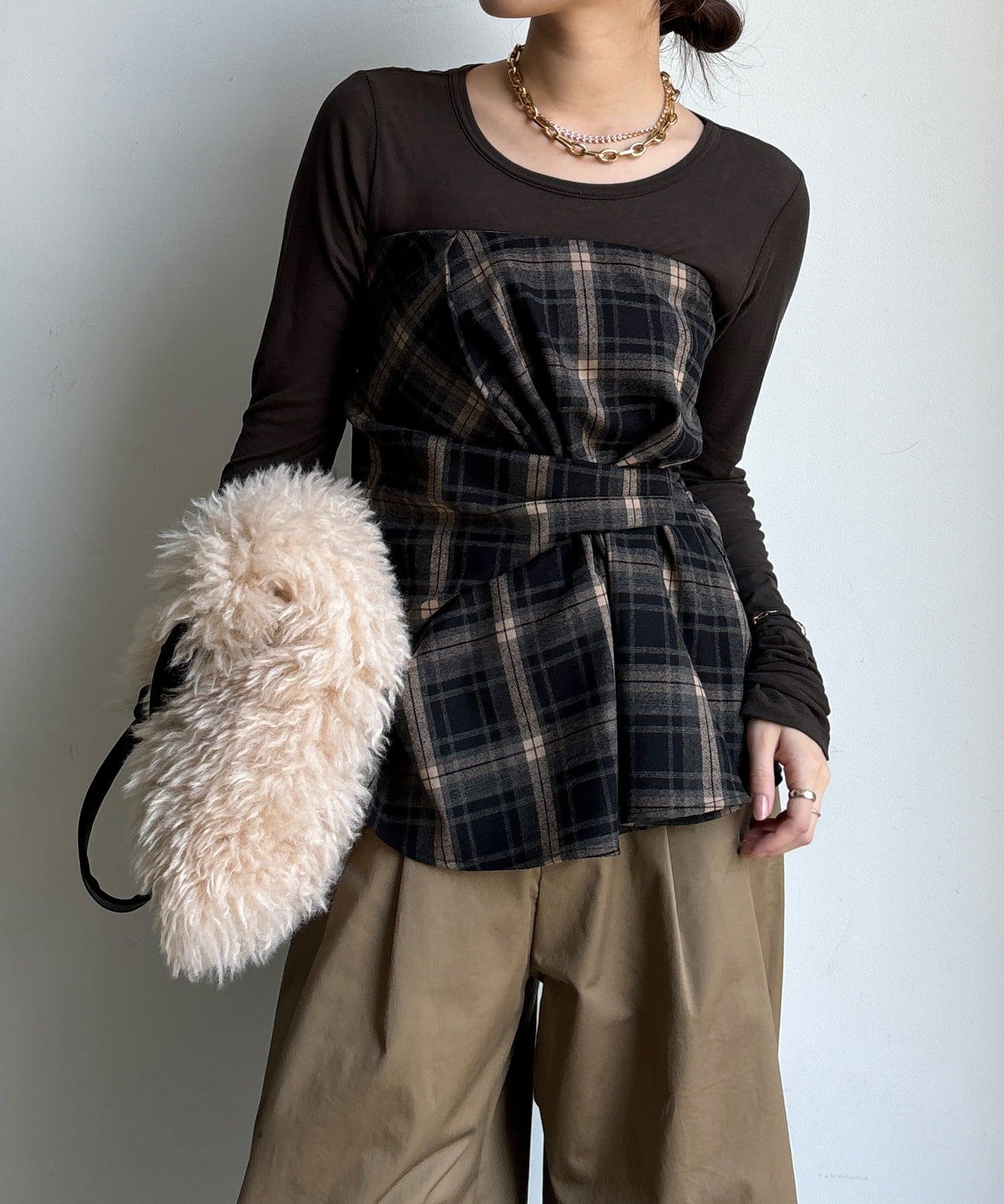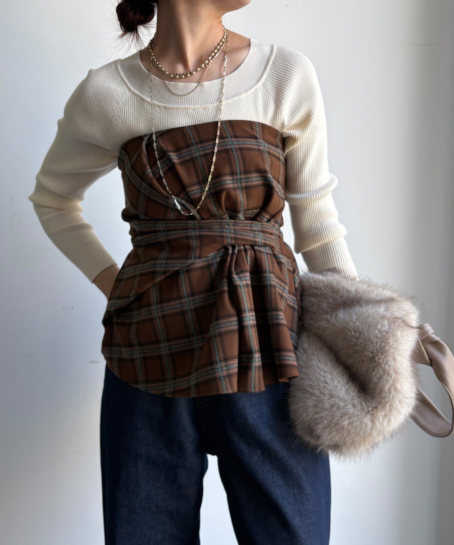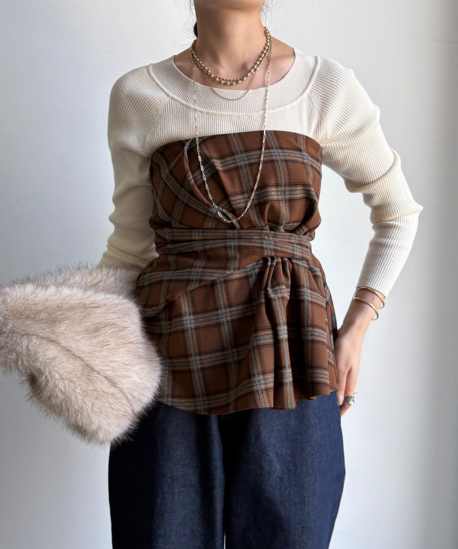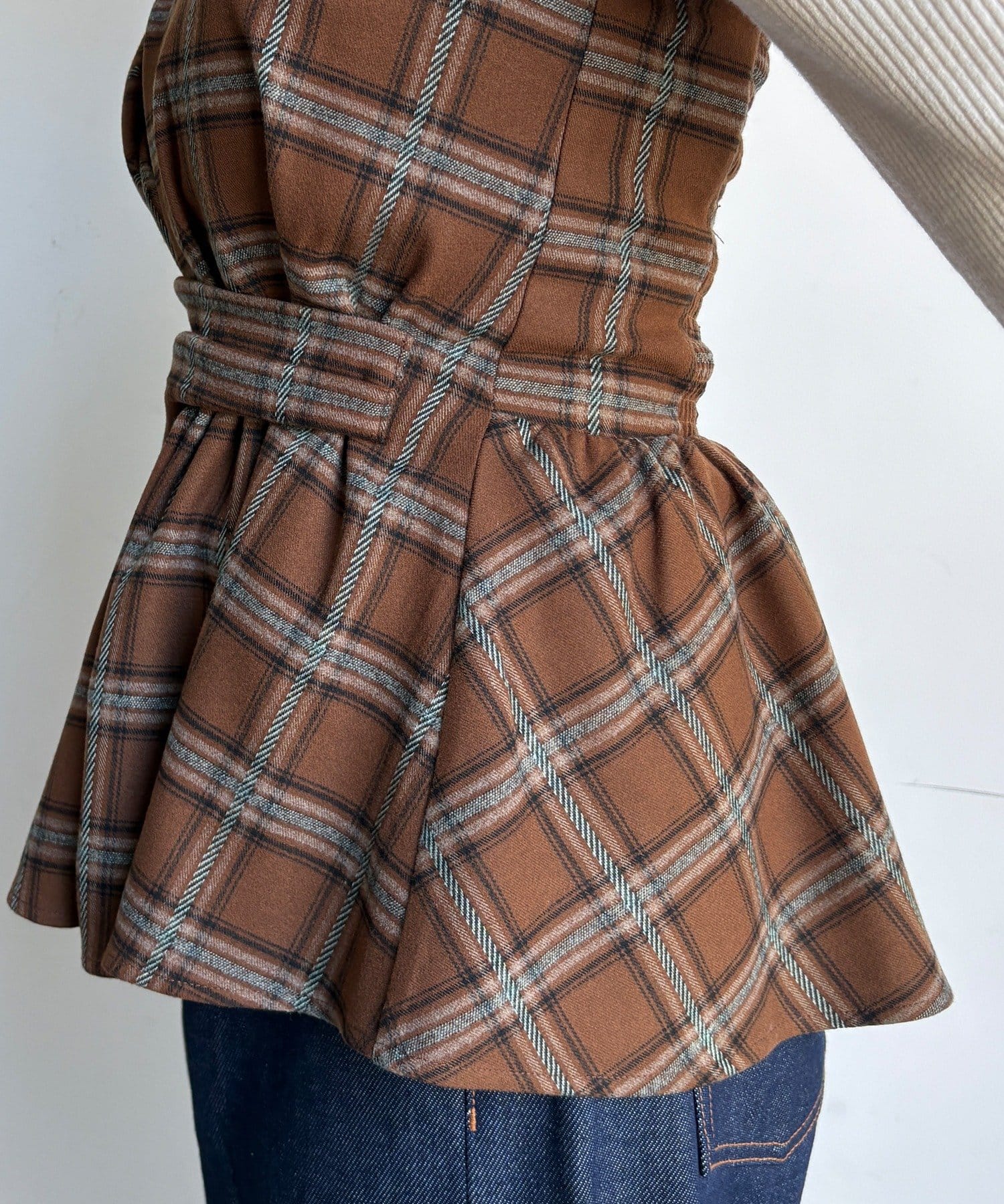 シーズンムード漂う起毛チェック柄が魅力のビスチェ。